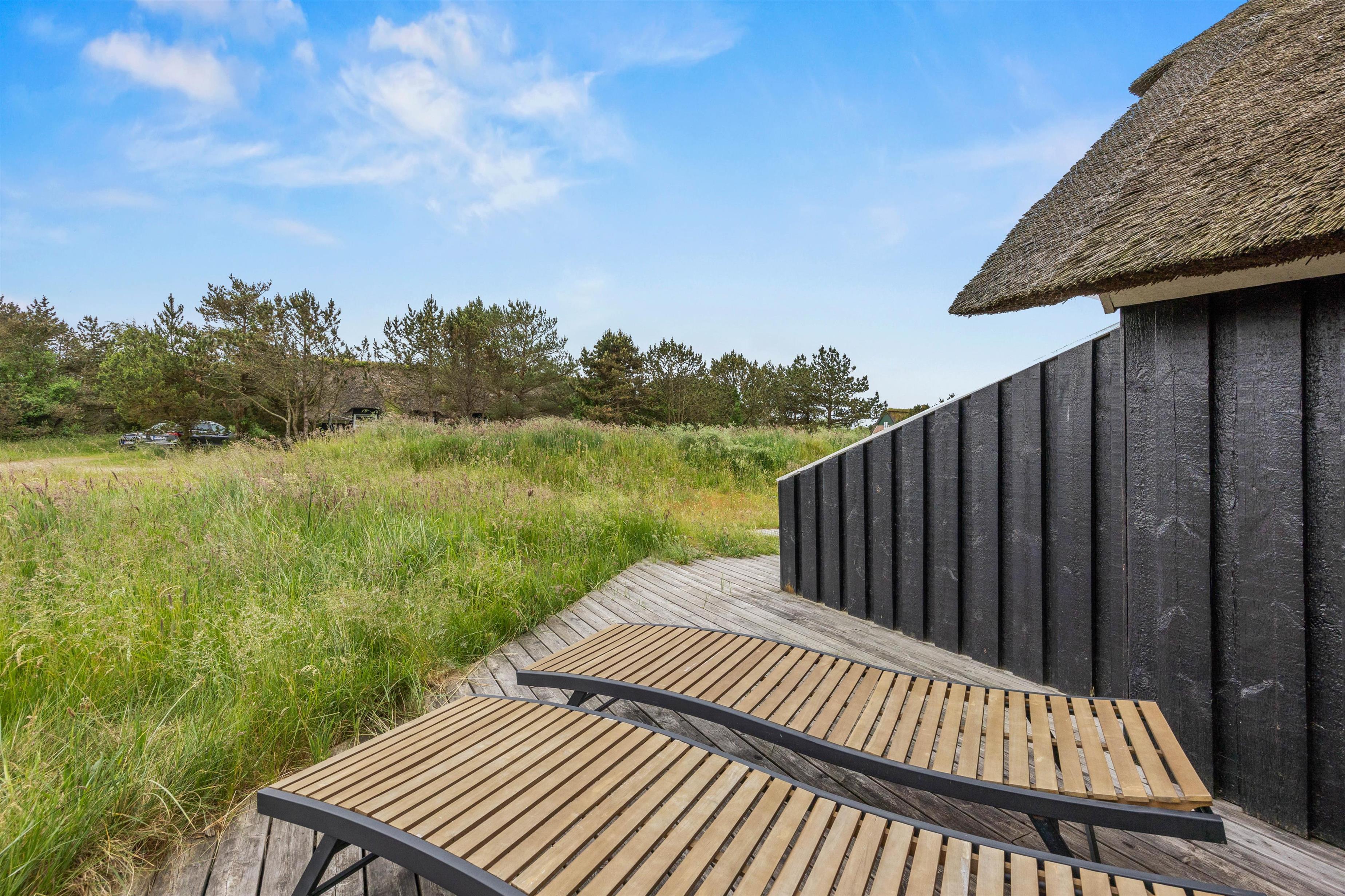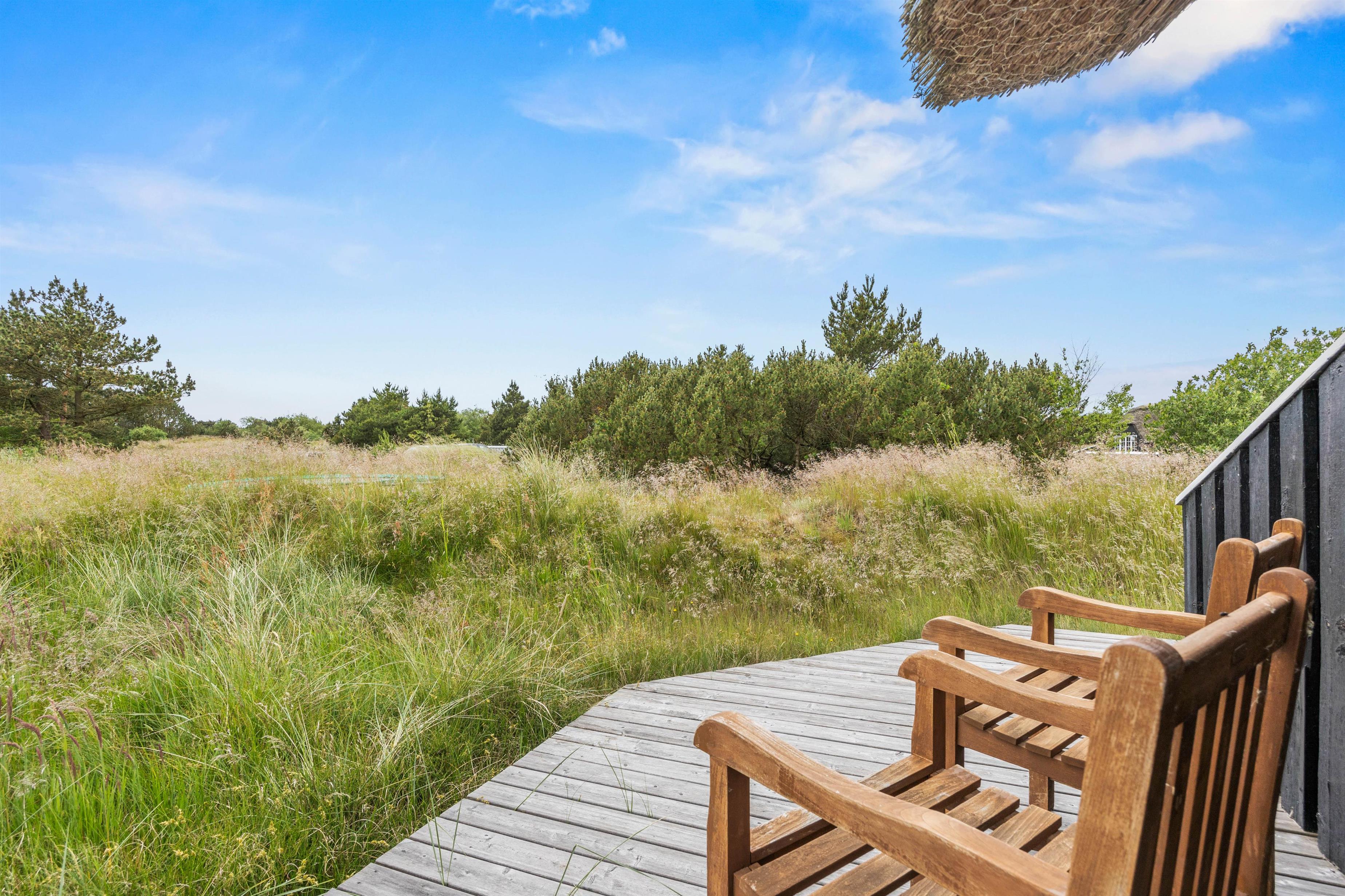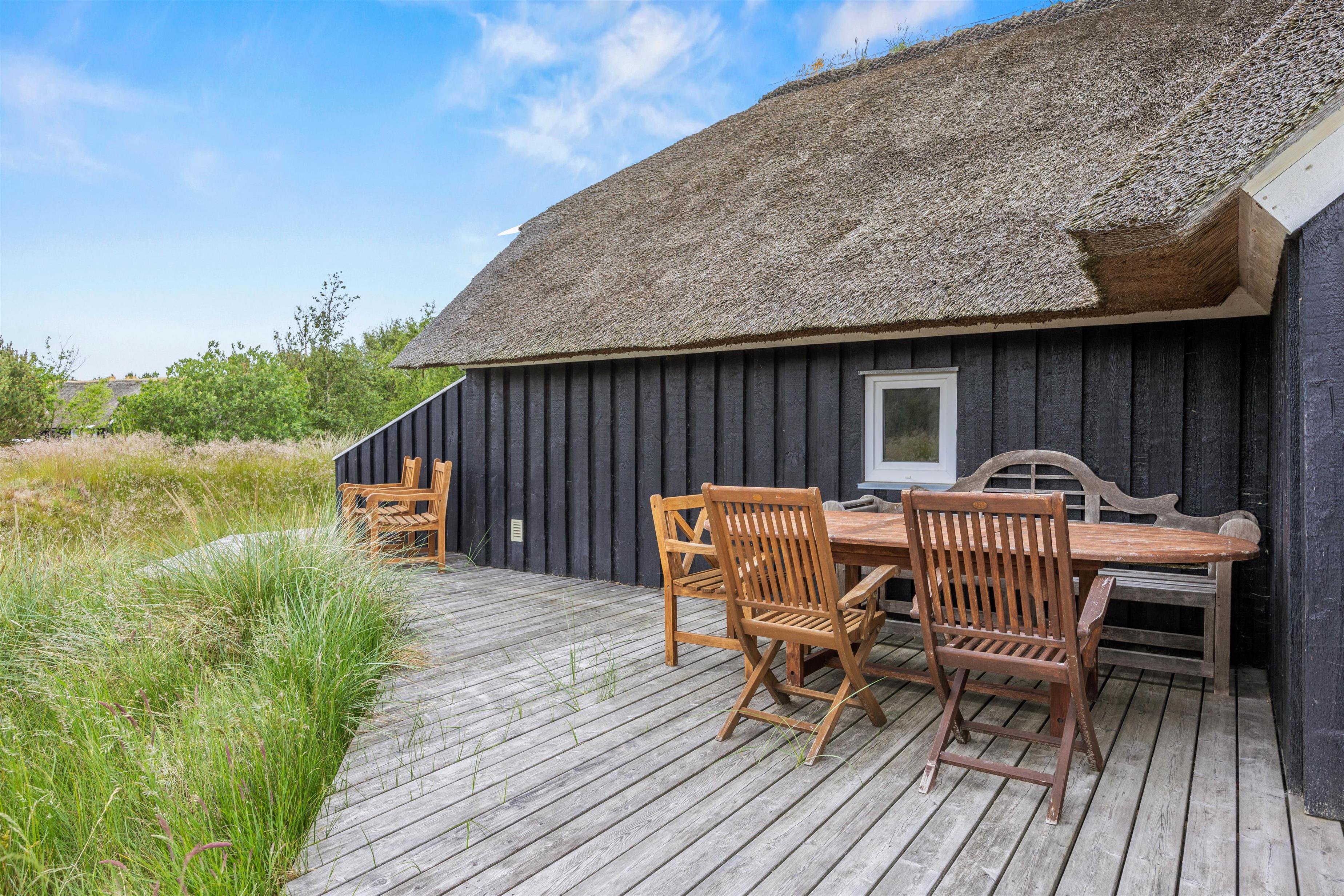 Udendørs finder I en sandkasse og en trampolin, som vil glæde børnene. Træterrassen ved feriehuset i Sønderho indbyder til afslappede timer i det fri. Her kan I hygge med at grille, nyde den friske luft og afslutte dagen med en god bog eller et glas vin. Det er det perfekte sted at opleve naturen tæt på.