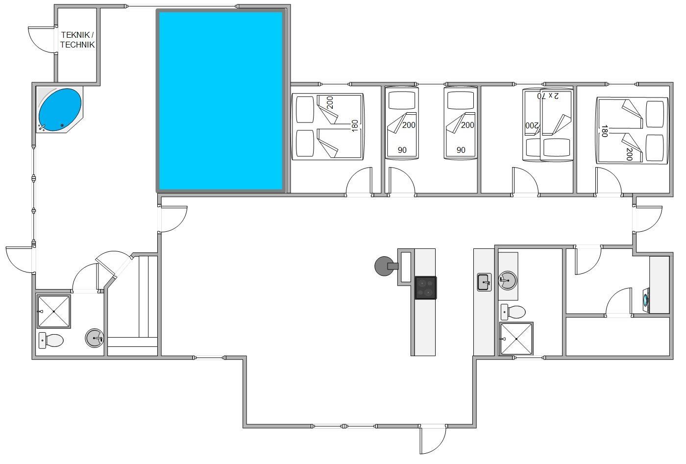 Højdepunkterne i dette feriehus er bestemt wellnessområdet. Her kan både store og små se frem til deres egen pool. Efter en oplevelsesrig dag kan I tage en dukkert i den private swimmingpool, som indbyder til afslappende svømmeture og sjov for hele familien.