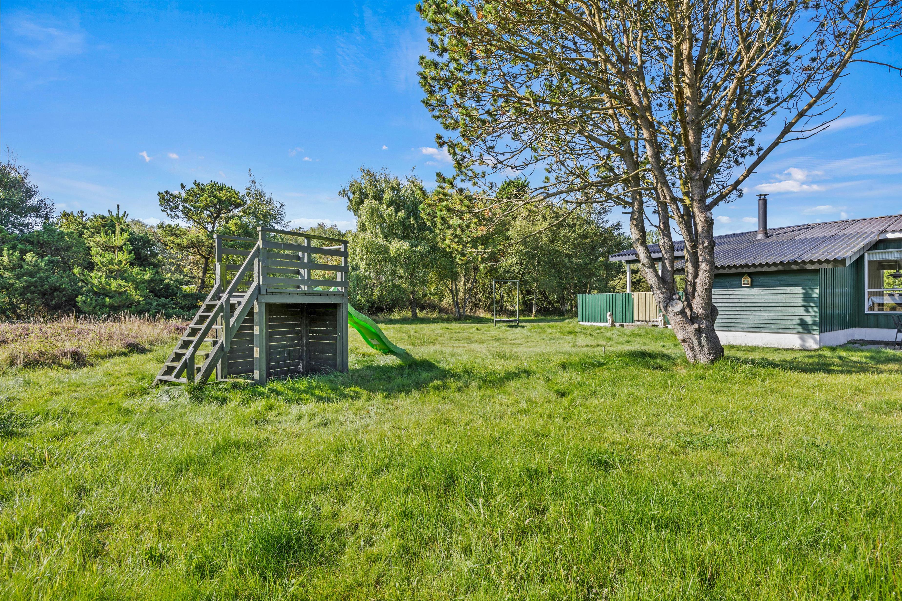 Fra terrassen har I kig til haven, hvor børnene og jeres hund rigtigt kan hygge sig – her er der nemlig både gynge og legetårn til de små, så de kan få brændt noget krudt af. Den store plænegrund er ligeledes ideel til en omgang boldspil eller blot leg med hunden.