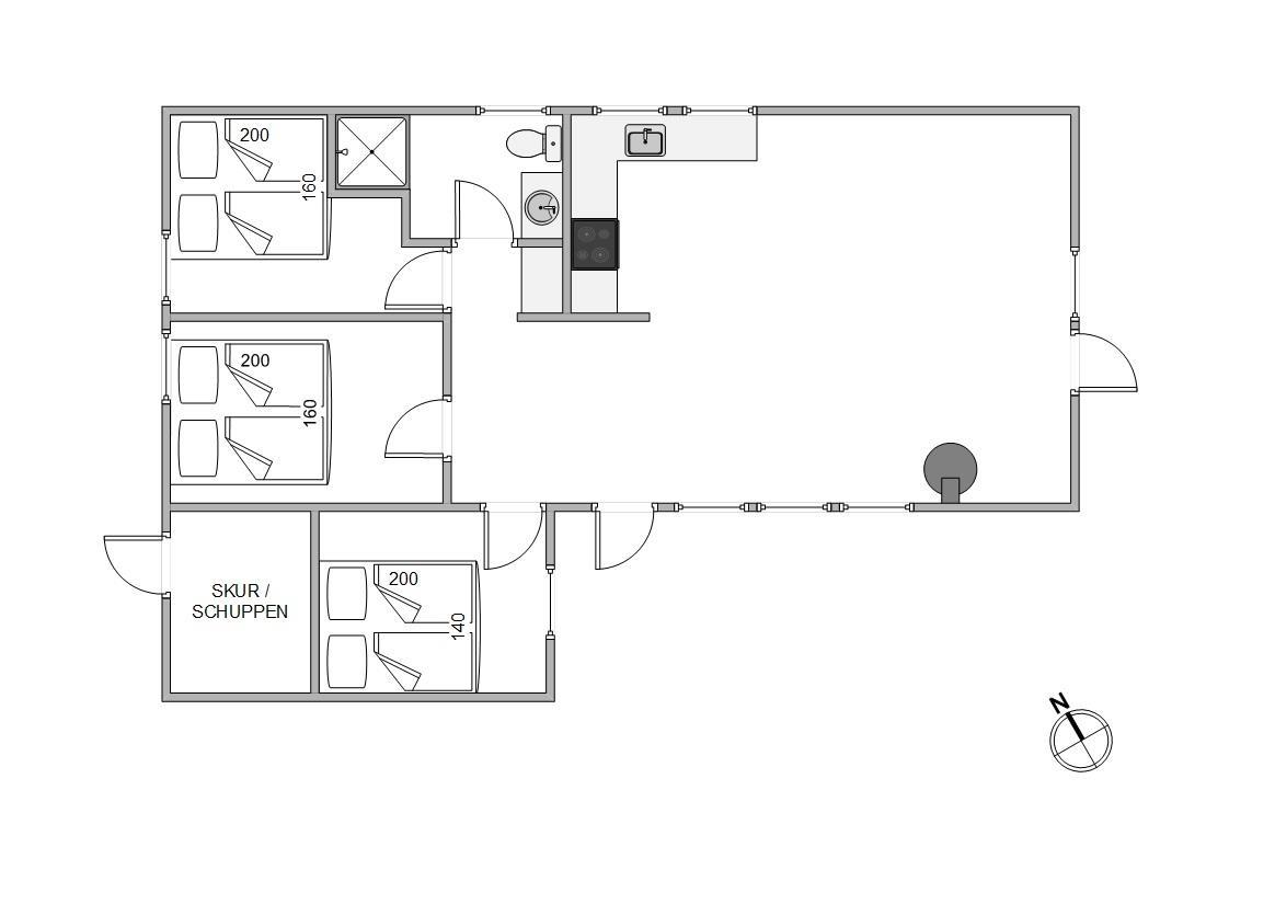 De 3 soverum er indrettet med henholdsvis to 160x200cm dobbeltsenge og en 120x200cm enkeltseng. Her kan I trække jer tilbage og samle fornyet energi til næste feriedag i de behagelige senge. Derudover indeholder feriehuset et moderne badeværelse med bruseniche og gulvvarme, så I ikke skal bekymre jer om kolde fødder i vintermånederne.