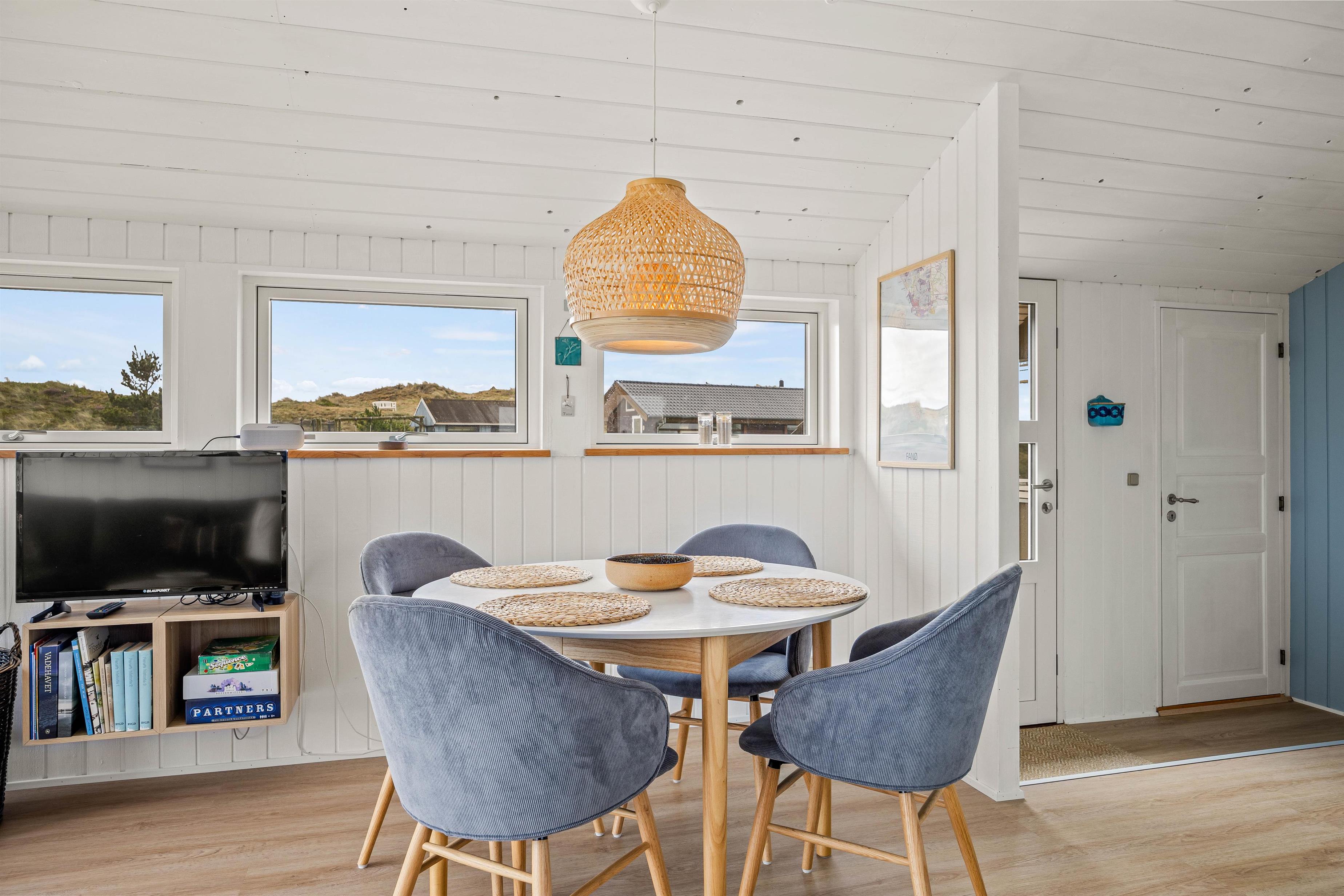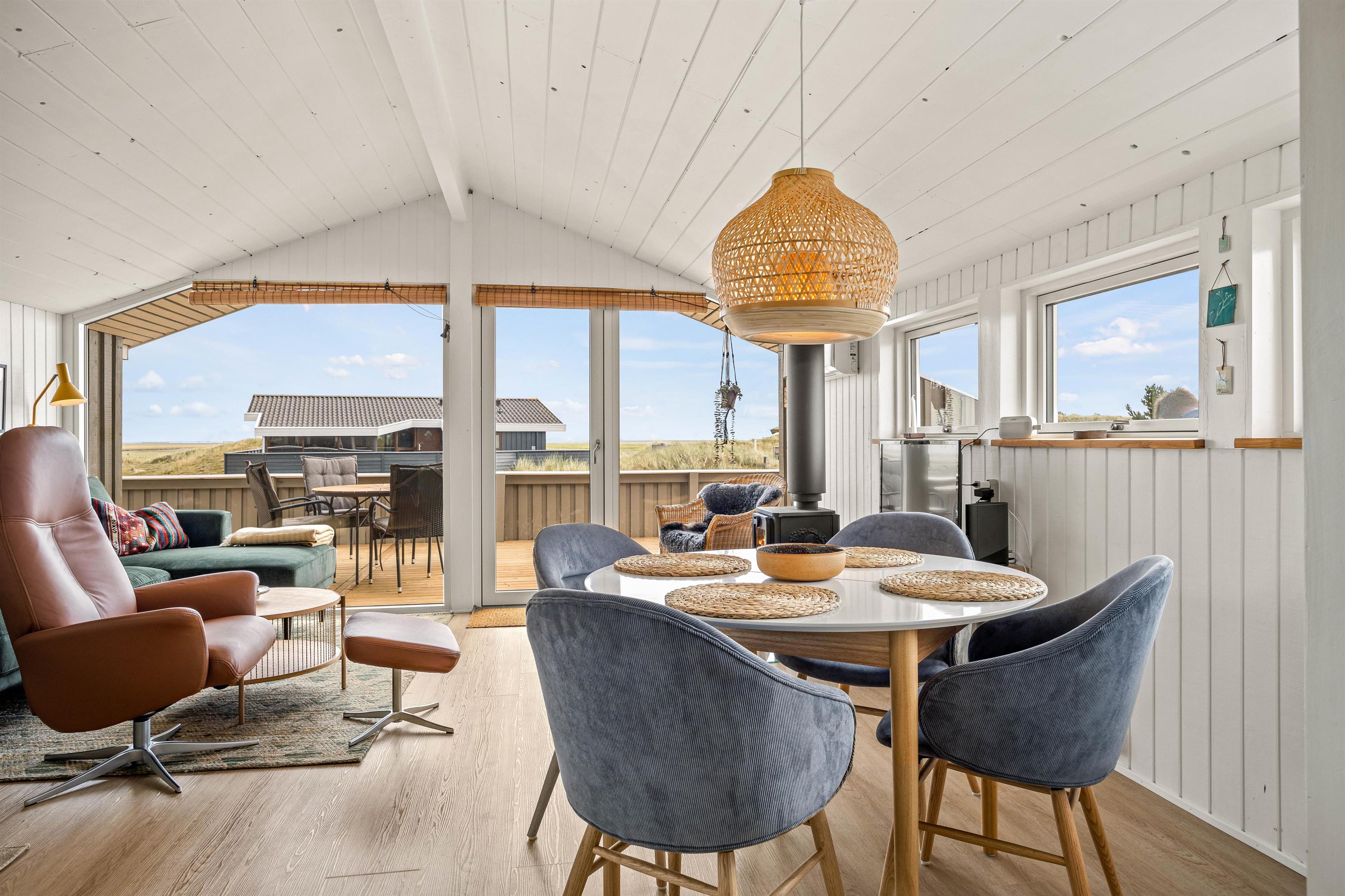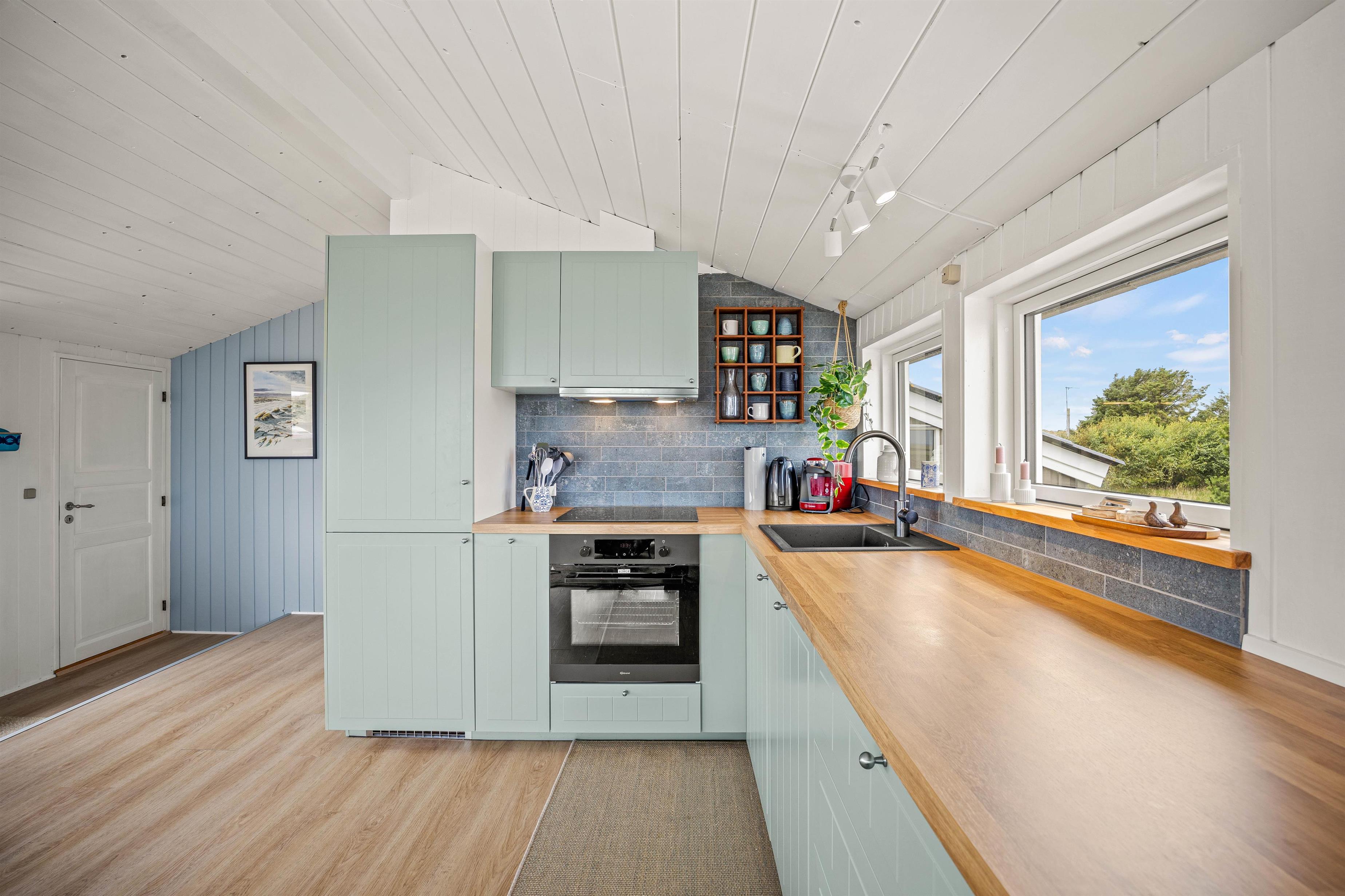 Feriehusets indretning emmer af hygge, og de nænsomt sammensatte farver giver et varmt og moderne udtryk, så I med det samme vil føle jer hjemme. Her kan I samles i det rummelige køkkenalrum til hyggelige stunder omkring spisebordet med et brætspil, madlavning i det velindrettede køkken med opvaskemaskine og induktionskomfur eller en hyggeaften i sofaen foran den knitrende brændeovn, med en god film der kan streames via chromecast.