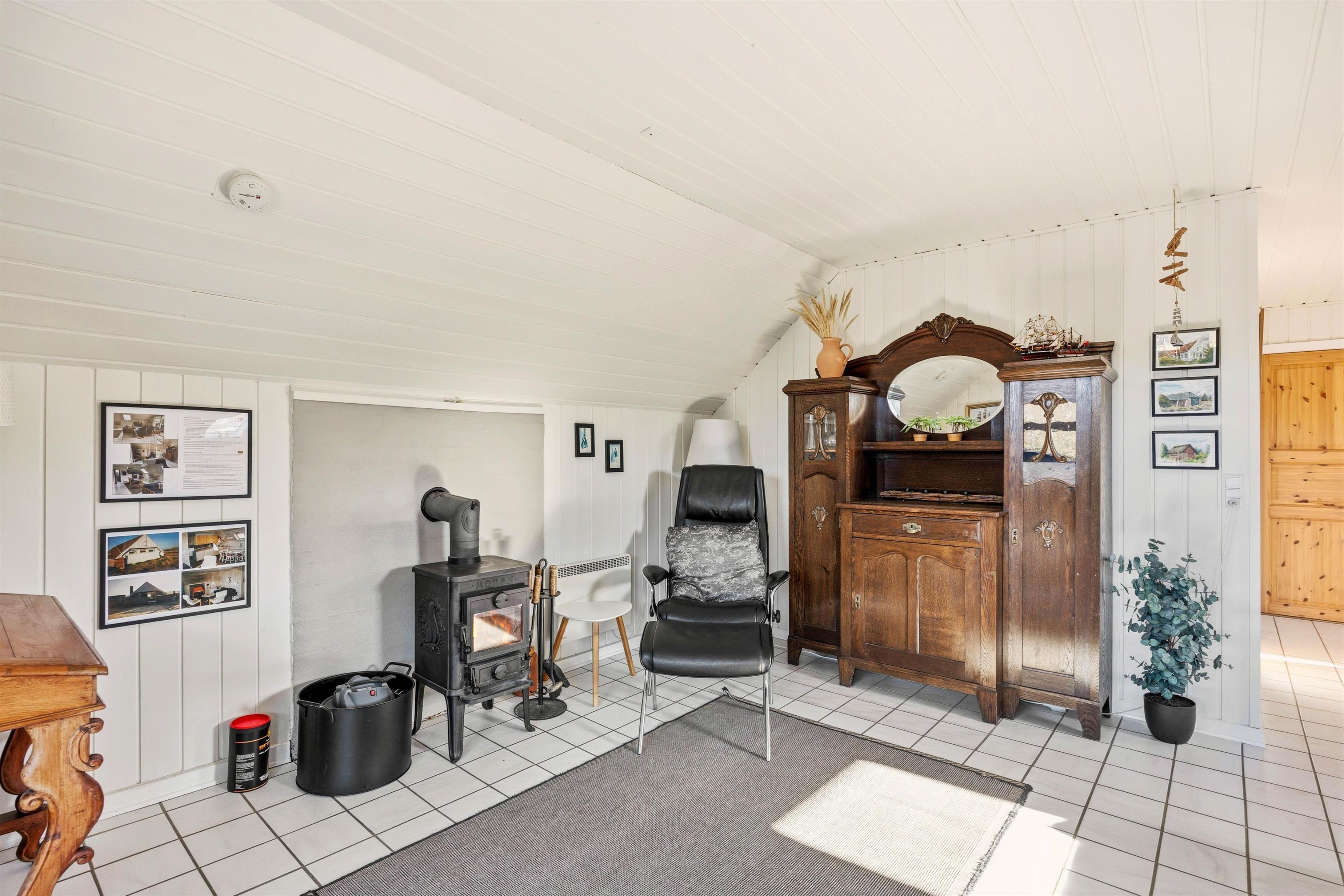 Her får I et sommerhus, der samler familien til hyggelige stunder sammen. Stue, spiseplads og det veludstyrede køkken med opvaskemaskine er nænsomt forenet, og danner de perfekte rammer om mange hyggelige aftener sammen foran brændeovnen. For en hurtig og energibesparende opvarmning af sommerhuset, råder I her også over en varmepumpe.