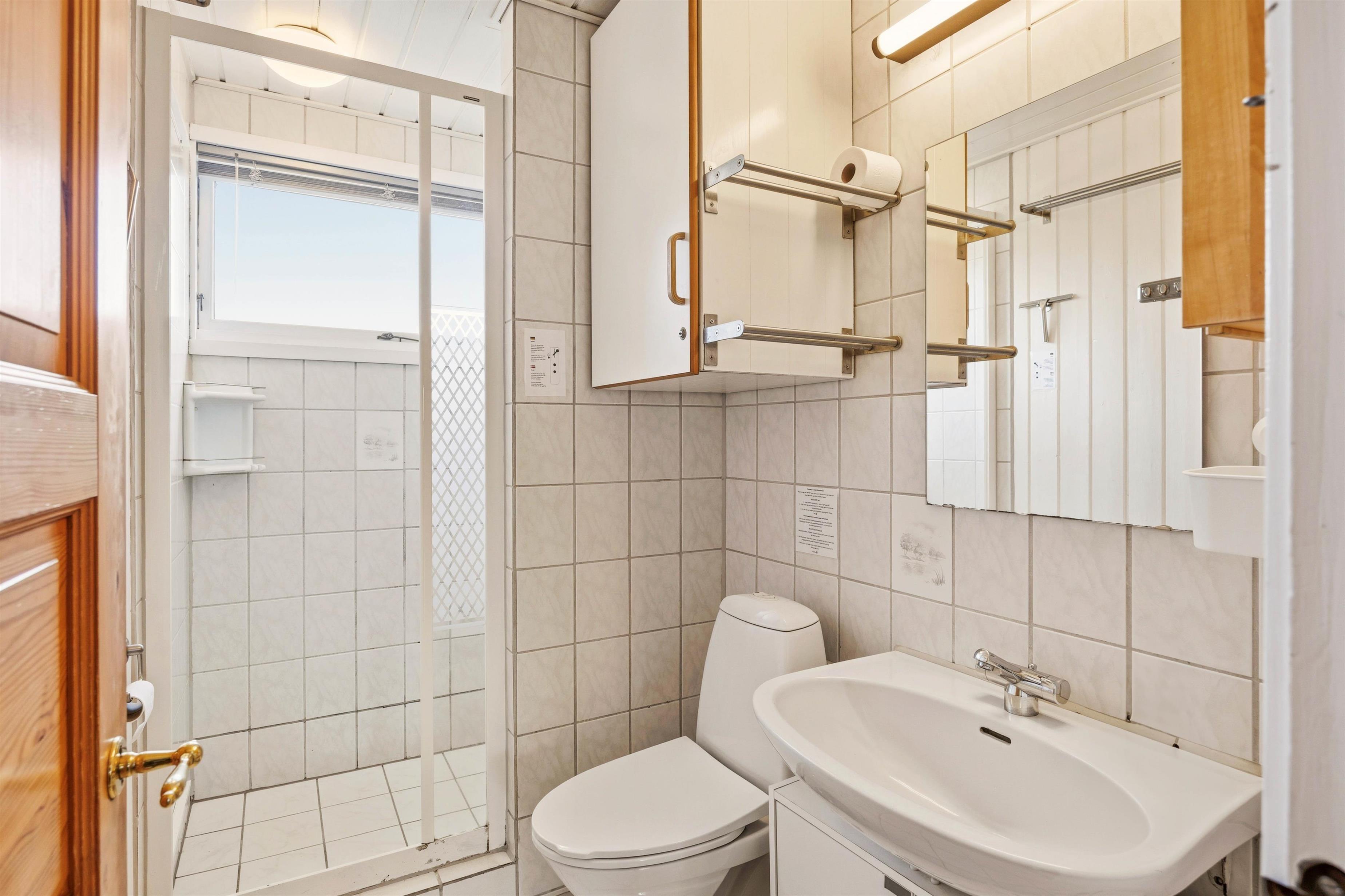 I får her 2 gode soveværelser, hvoraf et er med en ny 160x200cm dobbeltseng fra 2022 og det andet med 2 gange 80x200cm enkeltsenge. Sommerhuset har 1 badeværelse med bruseniche.