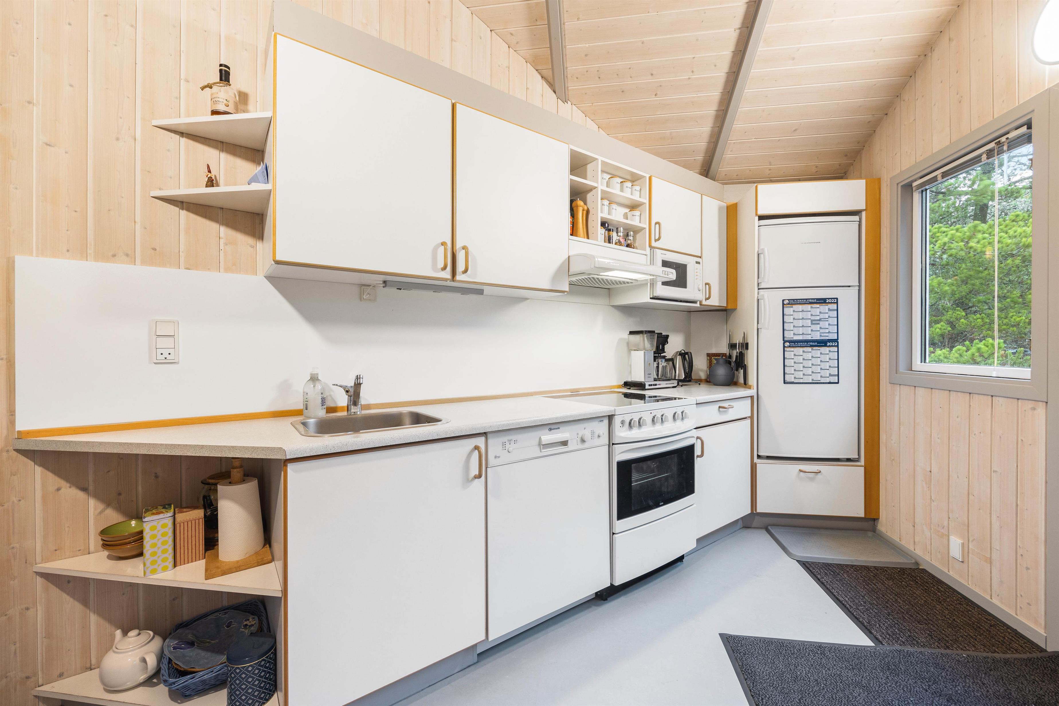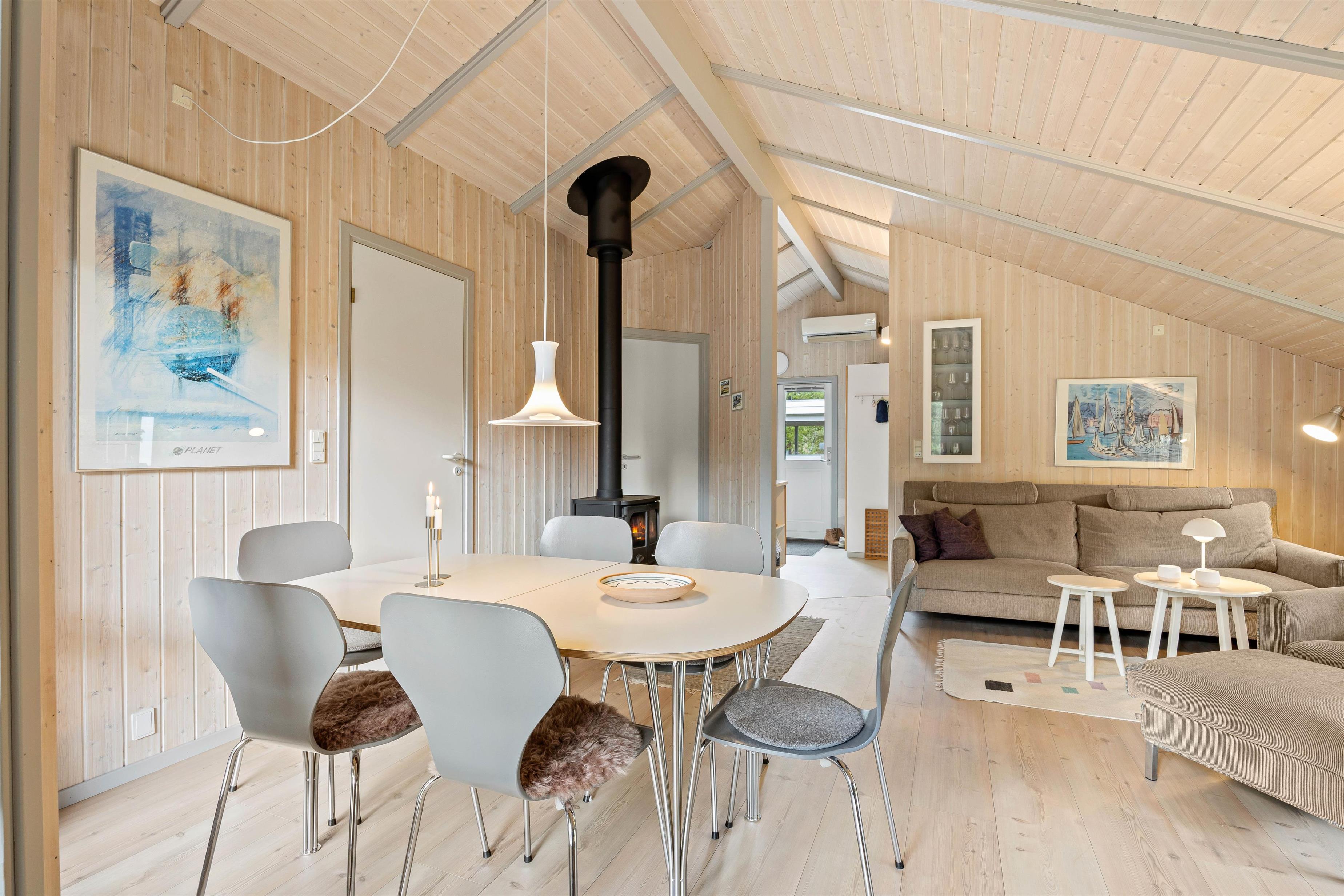 I køkken og alrummet kan I samles til spil ved sofabordet, læse en bog eller Chromcaste en god film, alt imens brændeovnens knitrende flammer fuldender stemningen. Køkkenet er praktisk indrettet med en opvaskemaskine, og feriehuset er udstyret med en energivenlig varmepumpe, der sikrer jeg er godt indeklima.