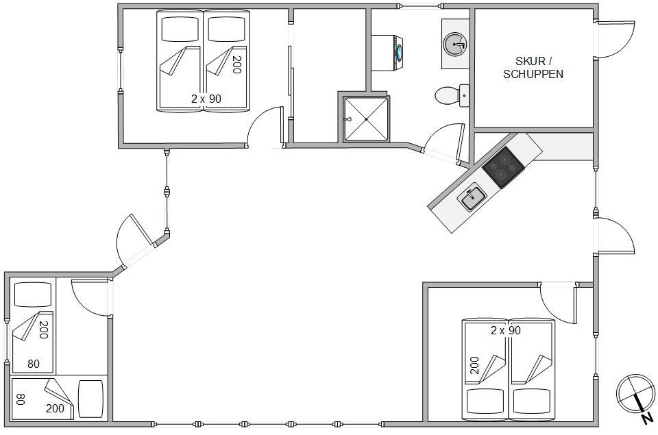Når feriedagen lakker mod enden, og I trænger til at hvile og samle ny energi til næste feriedag, kan I søge mod sommerhusets 3 soveværelser. På 2 af soveværelserne finder i dobbeltsenge med målene 180x200cm, og det tredje soveværelse har enkeltsenge, der måler 2x80x190cm. På badeværelset behøver I ikke fryse fødderne, for her er der gulvvarme.