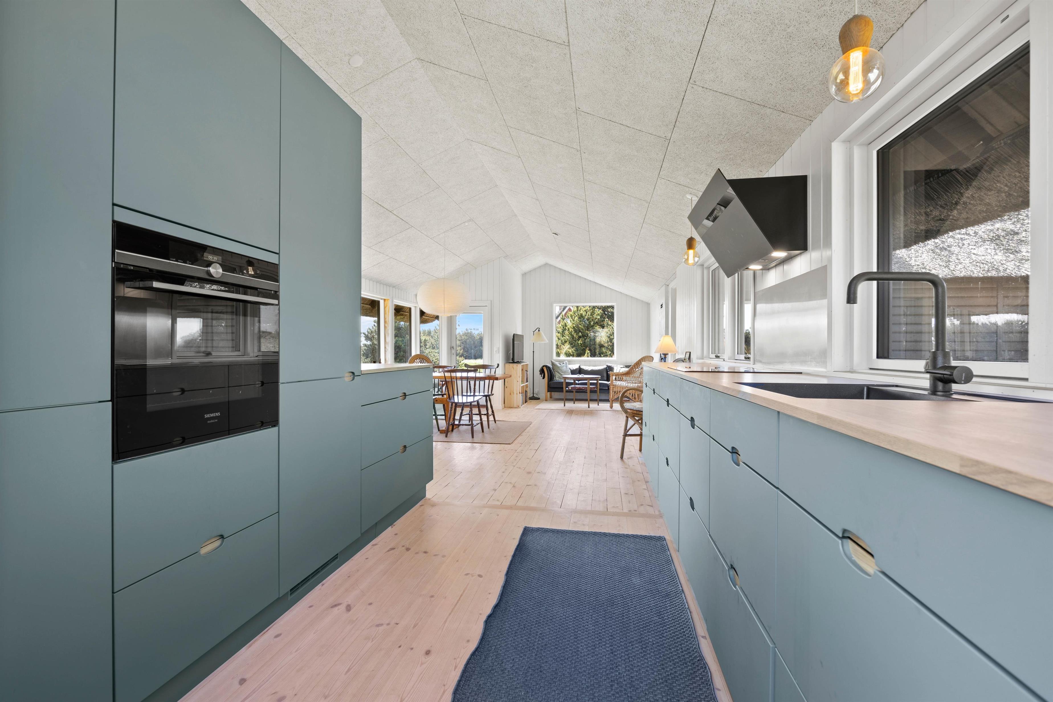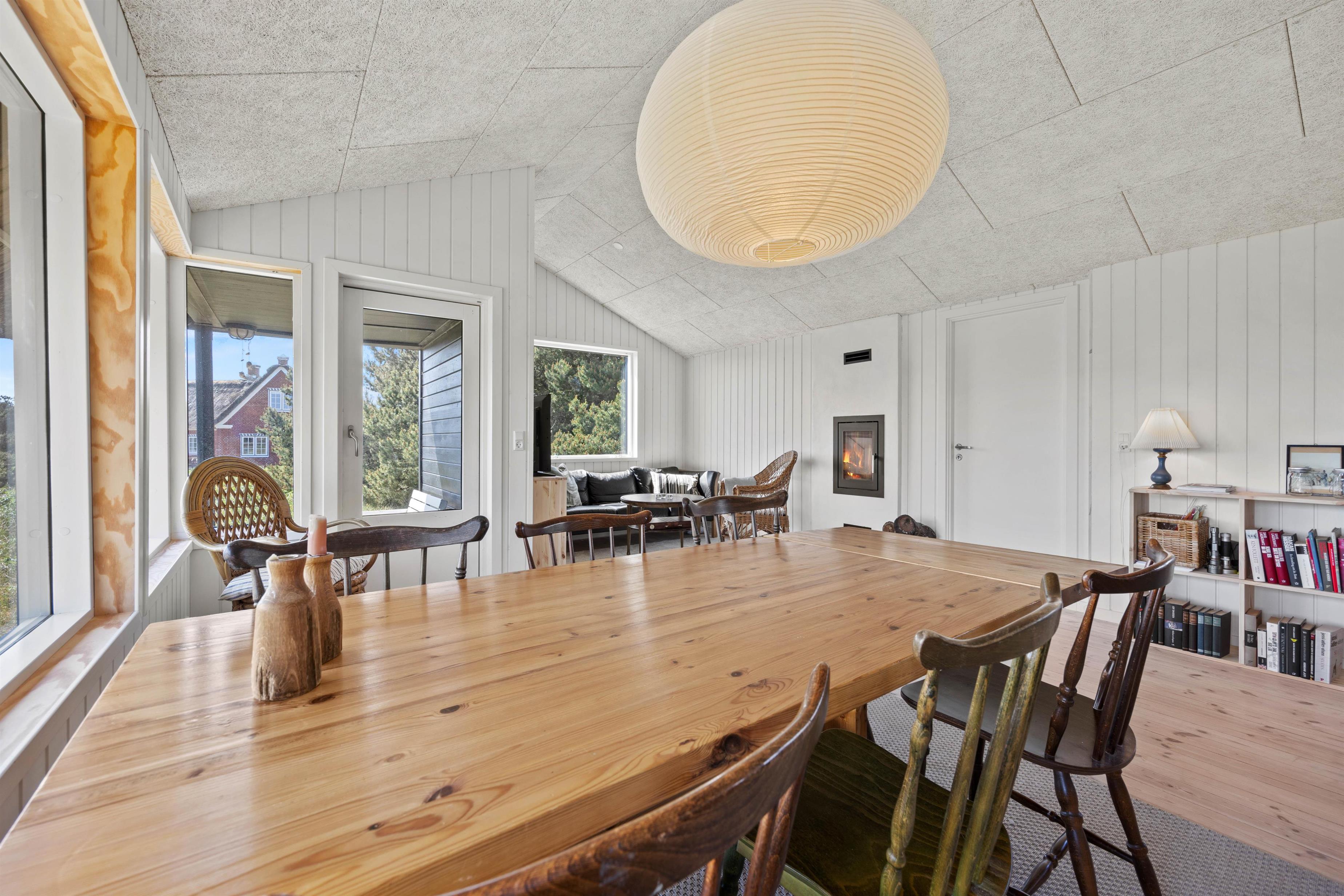 Det charmerende sommerhus er oprindeligt fra 1965, men blev i 2022 renoveret og fremstår nu rummeligt og lyst med et strejf af moderne i form af et farverigt køkken, der ligger i åben forbindelse til stue og spiseplads. Her er der rig plads til aktiviteter sammen eller hver for sig. Om I slapper af på sofaen foran brændeovnen med en god film, hygger jer omkring spisebordet med et brætspil eller laver mad i det veludstyrede køkken med opvaskemaskine, så er samværet her i fokus.