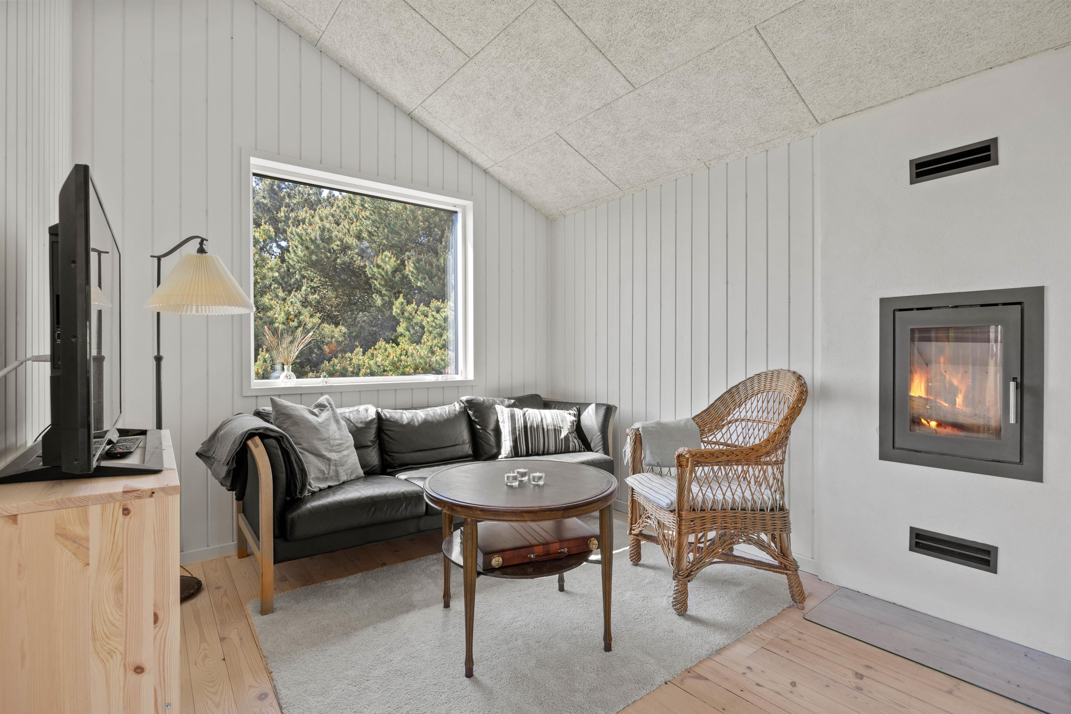 Sommerhuset er, udover brændeovnen, udstyret med en energisparende varmepumpe, der sørger for et godt indeklima og en effektiv opvarmning.