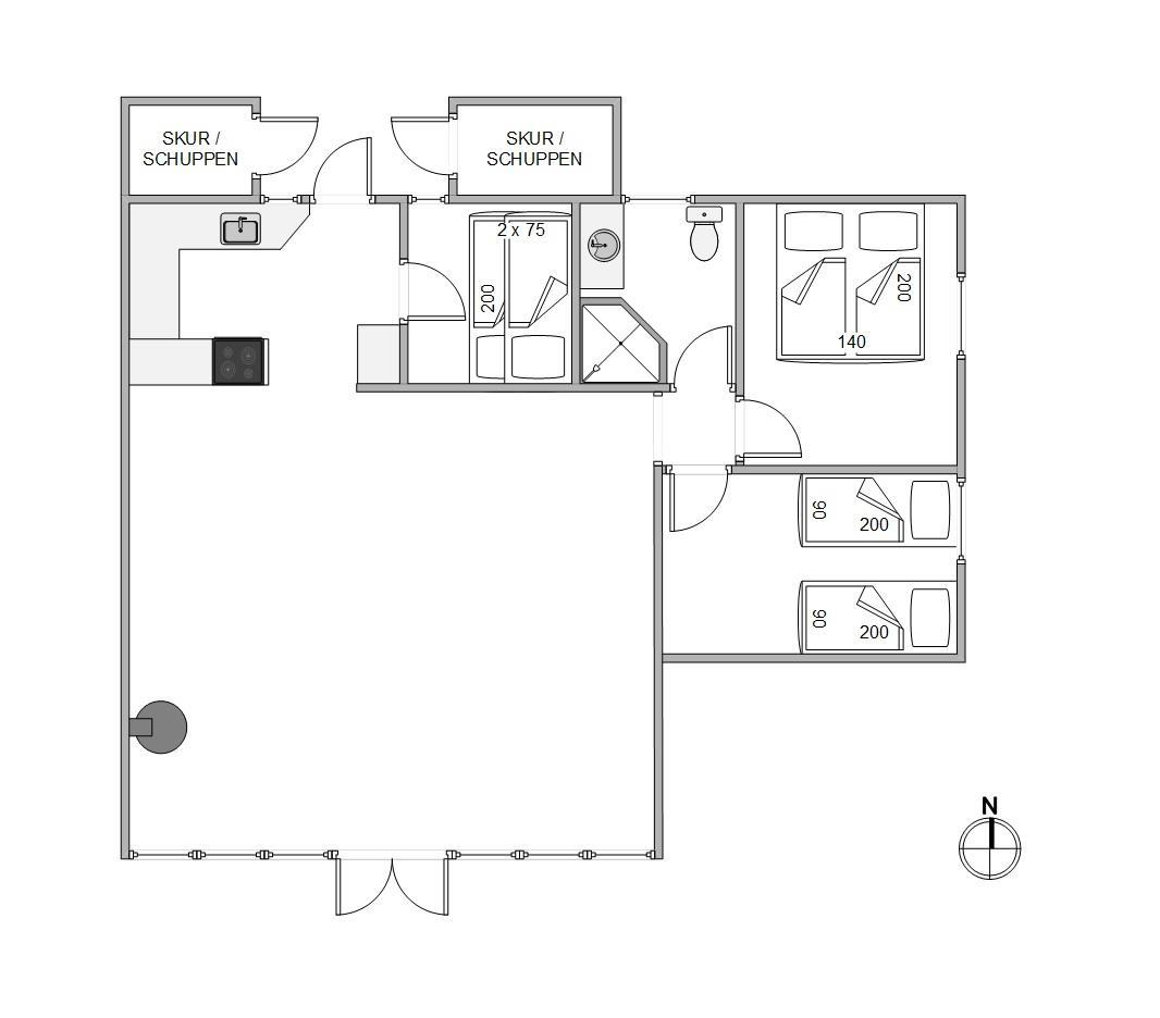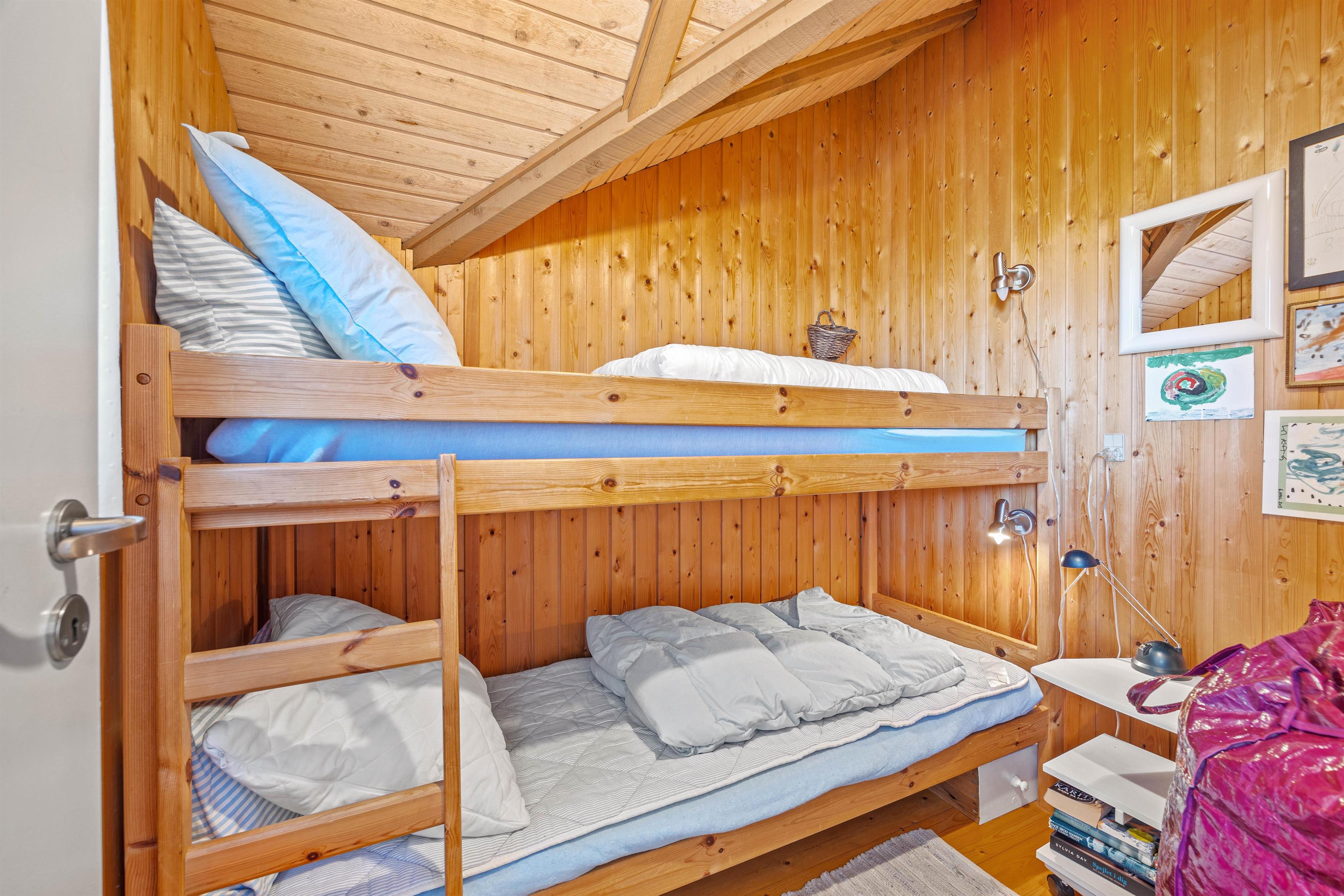 I dette 3-stjernet feriehus venter jer 3 skønne soverum, hvor det ene er med dobbelt seng, et andet med to enkeltsenge, og den sidste med en køjeseng – ideel til børnene. Foruden dette er der et fint, lyst badeværelse med gulvvarme, så der ingen fare er for kolde fødder i de kølige måneder. Feriehuset bliver opvarmet via en energisparende varmepumpe, der sørger for godt indeklima og en behagelig temperatur døgnet rundt.
