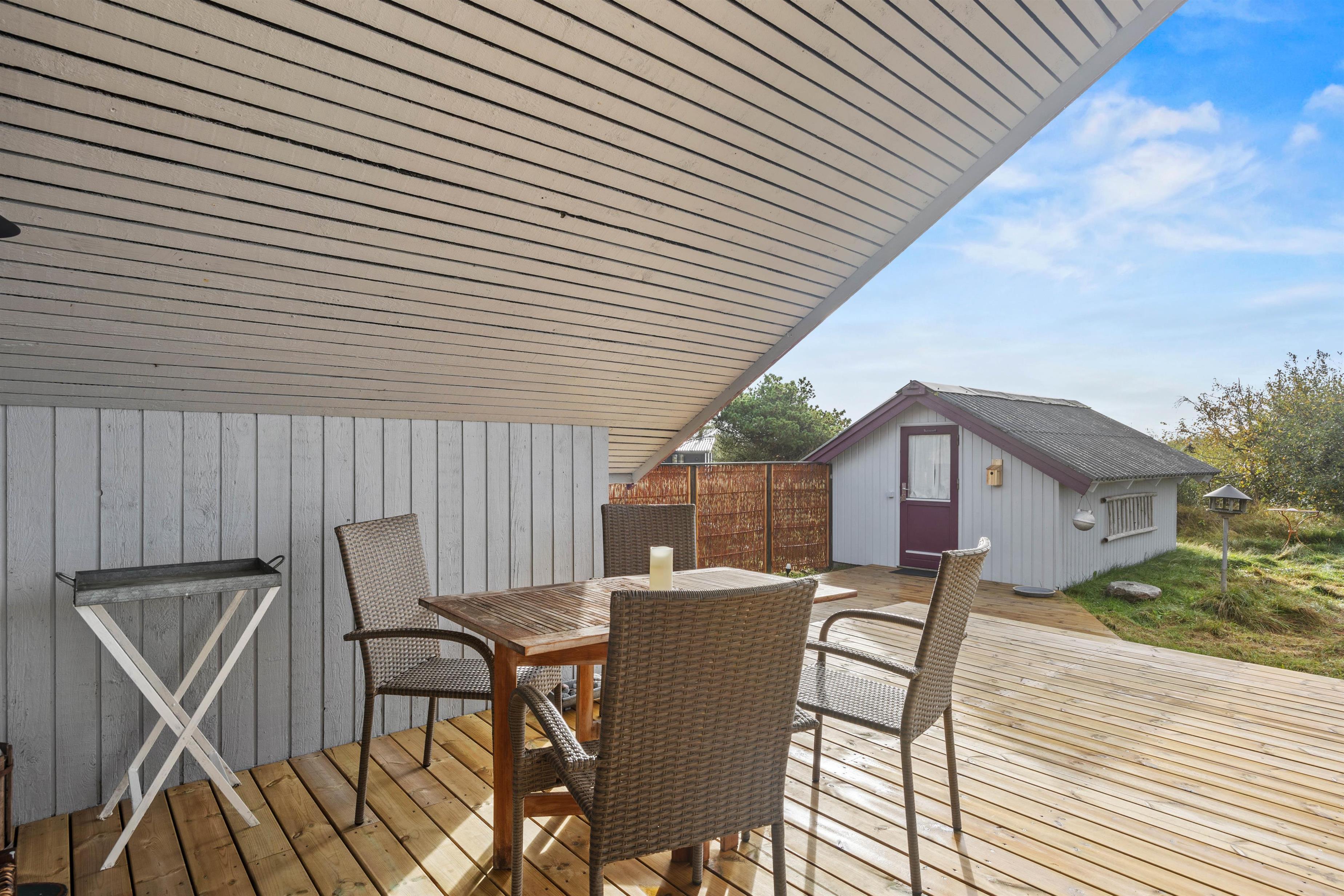 Omkring feriehuset Ved Bavnen 28 venter et stort udendørsområde, der indbyder til afslapning og nydelse. På den åbne træterrasse kan I slappe af i solen, mens den overdækkede terrasse tilbyder hyggelige kroge, uanset vejret. Her kan I starte dagen med en kop kaffe om morgenen, eller slutte af med et glas vin til aften.