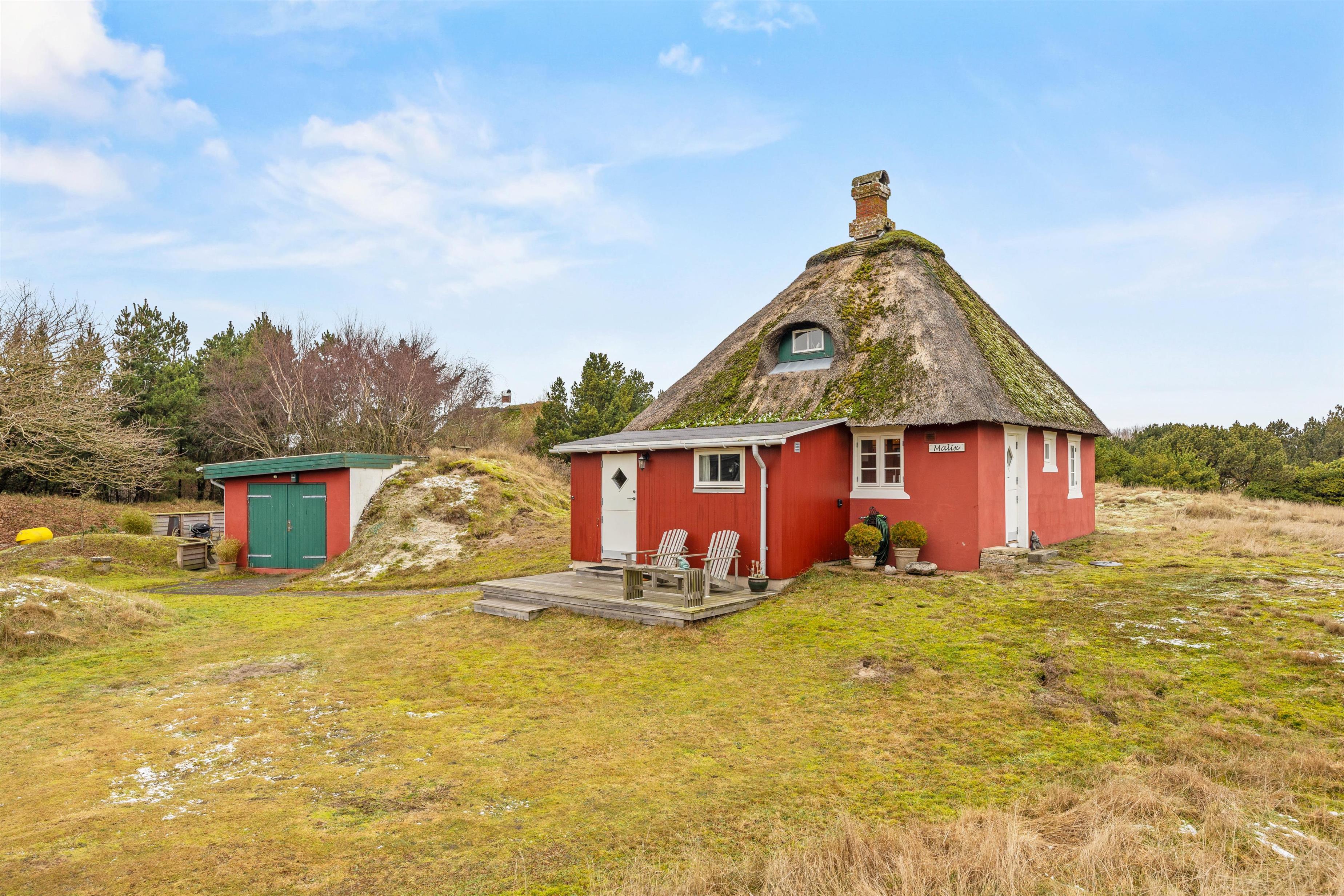Fanøhus beliggende på Sønderho Strandvej 16. Her finder I dette lille, indbydende sommerhus med stråtag på naturgrund på bare 72 m2. Feriehuset er bygget i 1931 og delikat renoveret i 2021. Her er ægte skandinavisk charme med moderne bekvemmeligheder, hvilket gør det til den perfekte oase for to personer, der søger en uforglemmelig ferieoplevelse. Her kan I nyde de smukke omgivelser med en afstand på blot 1500 meter til havet og 1000 meter til nærmeste indkøbsmuligheder. Huset er et såkaldt stakhus, som er et kvadratisk, stråtægt hus, hvoraf der kun er 4 i Sønderho.