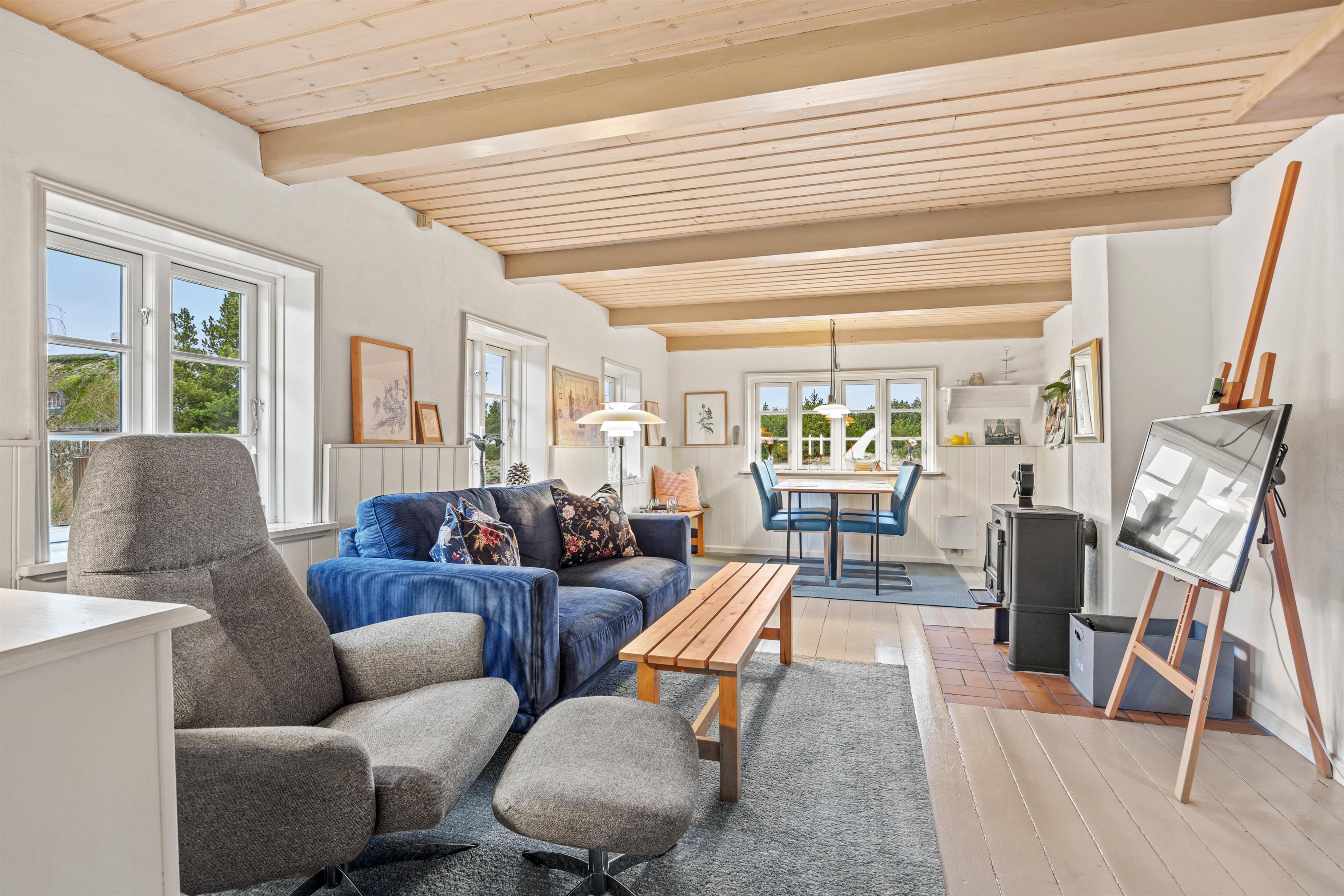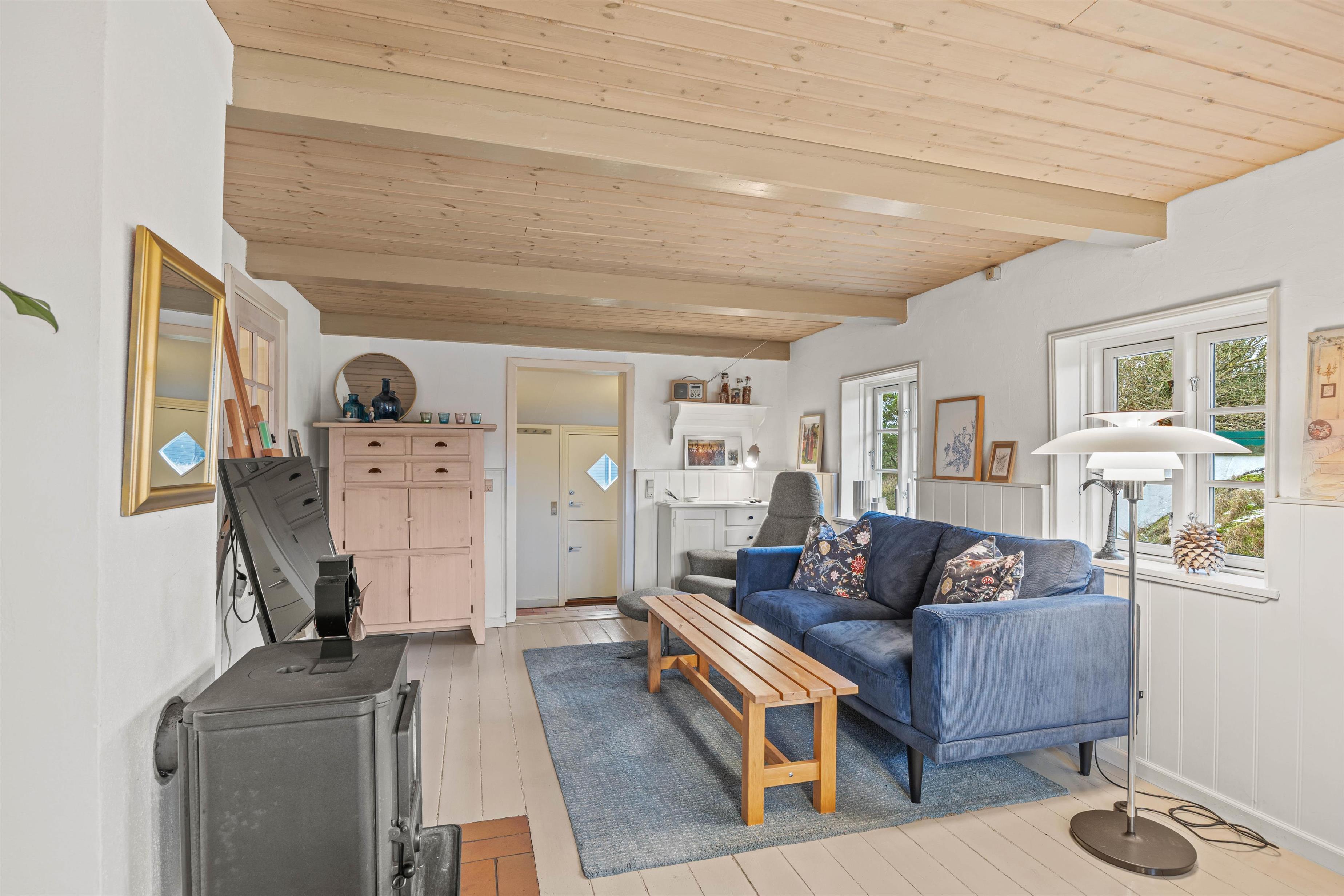 Må I invitere jeres bedste ven? Ja, 1 hund er meget velkommen her. Indendørs venter en lys og rummelig stue med trægulv og en varm og indbydende atmosfære. I kan læne jer tilbage i sofaen foran fladskærms-TV'et eller streame yndlingsserierne via Chromecast og nyde aftenerne ved den knitrende brændeovn. Der er en god lænestol med fint læse eller strikkelys og fra spisepladsen kikker i ud på naturen omkring feriehuset. Der er 1 soverum udstyret med en komfortabel dobbeltseng til en fredfuld nattesøvn.