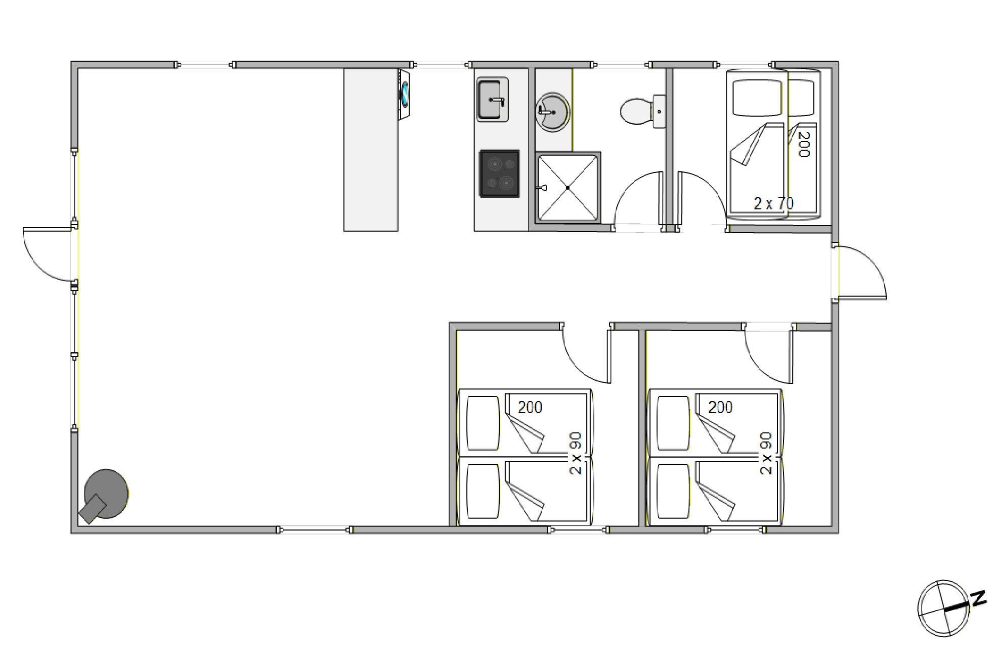 I stuen sætter brændeovnen prikken over i’et i feriestemningen på kølige aftener. Med en luft til luft varmepumpe er temperaturen i feriehuset altid tilpasset jeres behov. Køkkenet indeholder alt, hvad I behøver for at tilberede lækre hjemmelavede måltider, herunder opvaskemaskine. Badeværelset har gulvvarme, og de 3 soveværelser fordeler sengepladserne med 2 værelser med dobbeltseng og 1 værelse med køjeseng, som især tiltaler børnene.