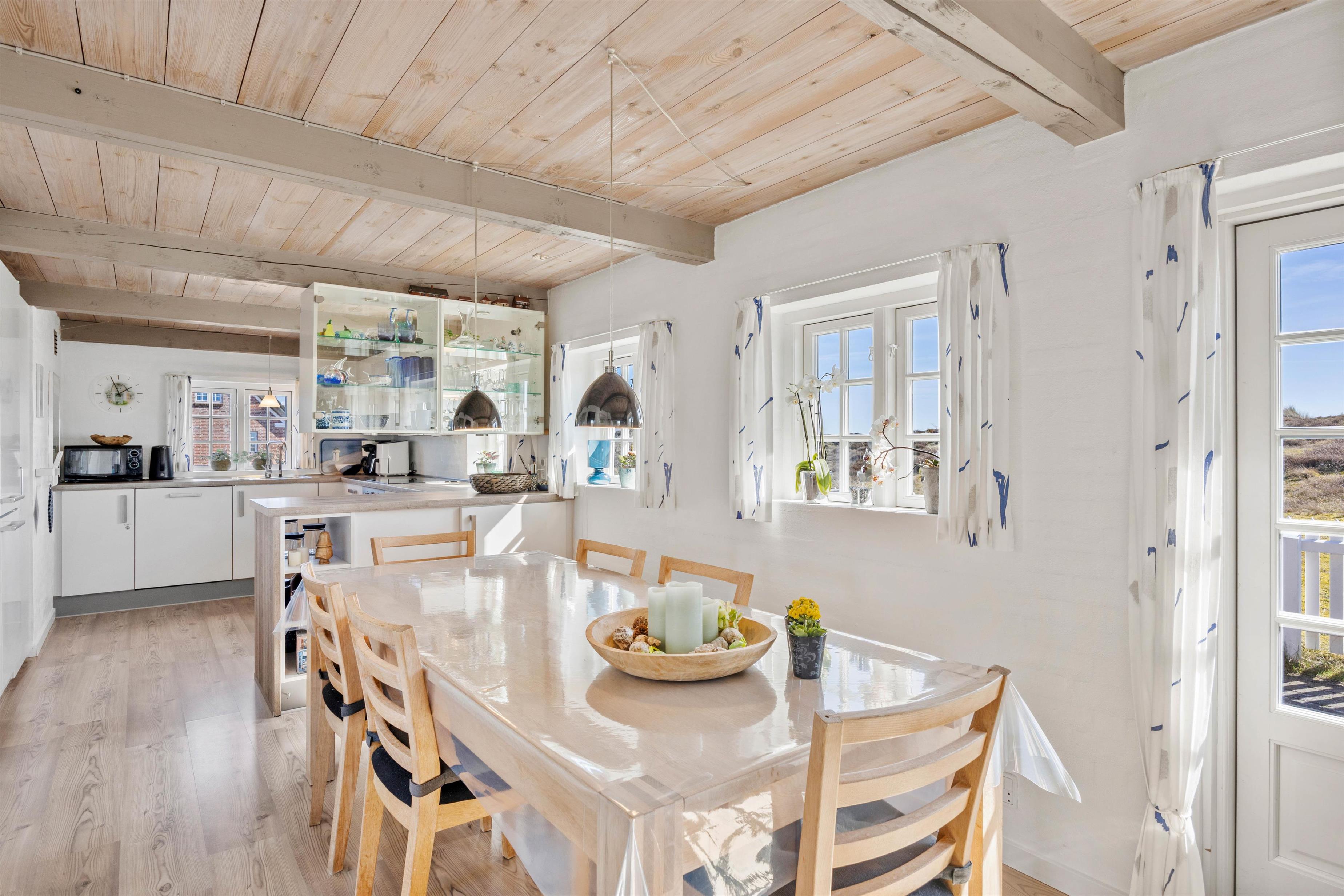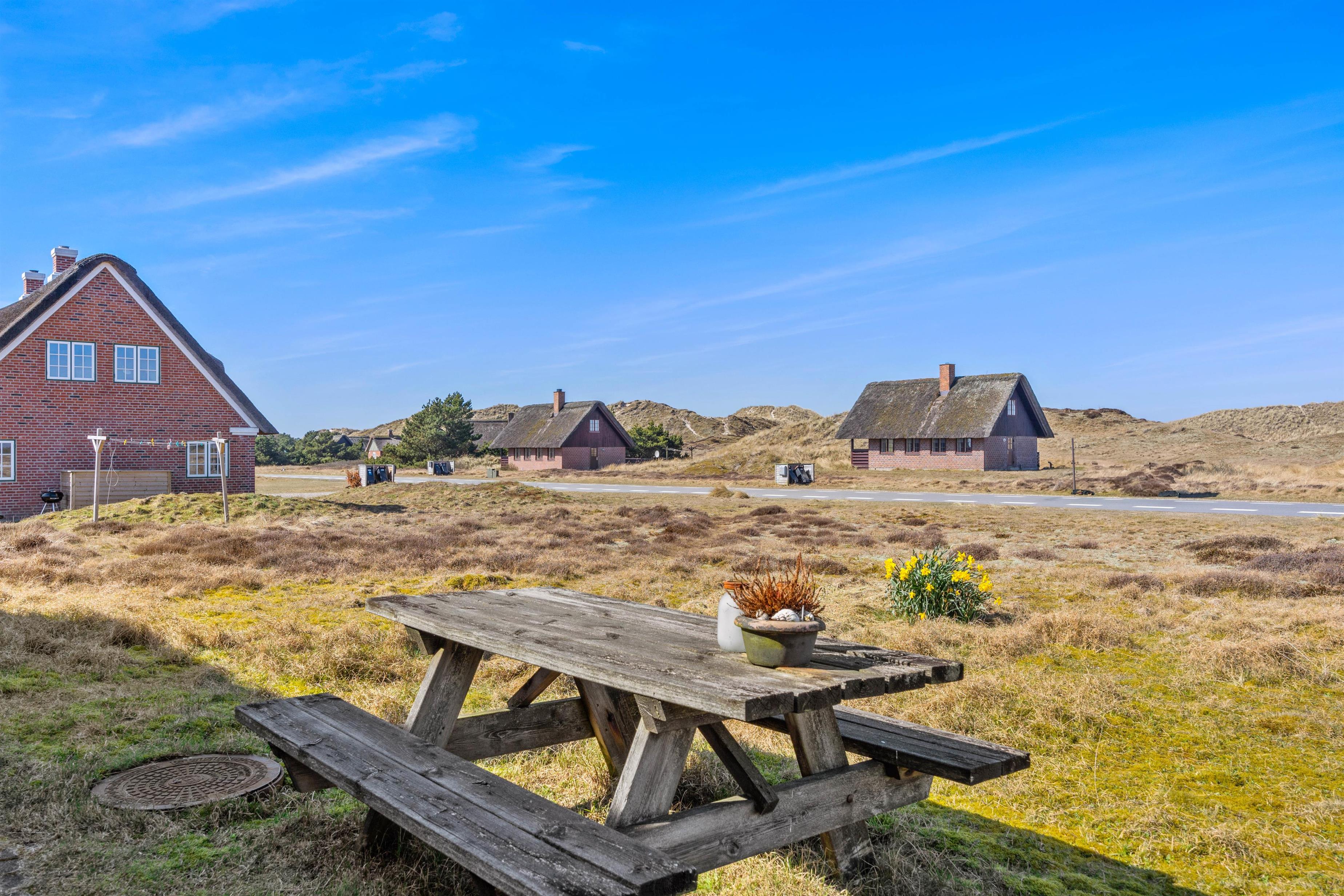 Den lukkede terrasse giver dig mulighed for at tilbringe tiden udendørs. Små børn og eventuelt hund kan trygt opholde sig på den lukkede terrasse, mens I nyder solen. Udsigten over det omkringliggende klitlandskab er vidunderlig. For ejere af elbil er der også en opladningsmulighed ved feriehuset.