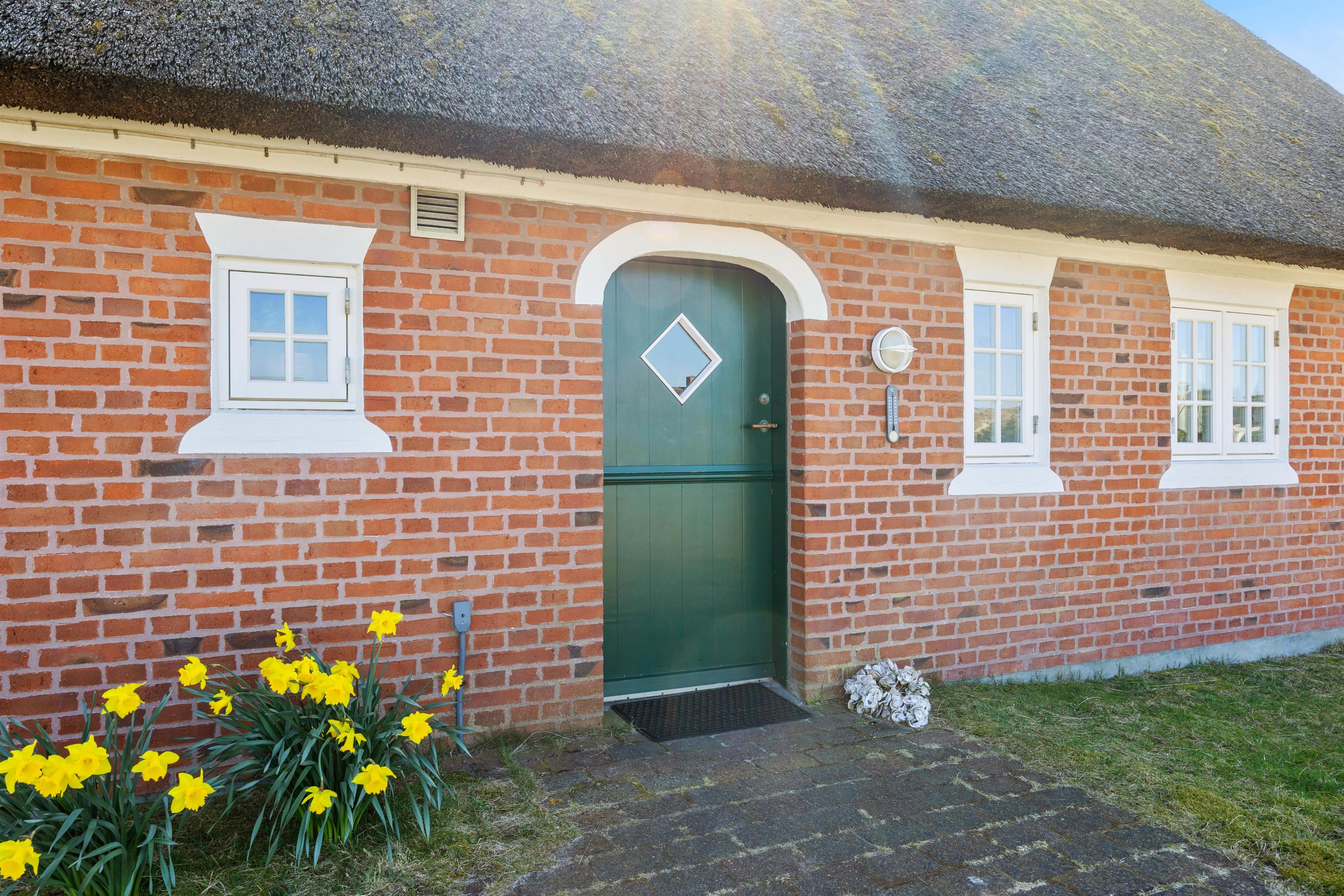 Det hyggelige feriehus er efter klassisk Fanø-tradition bygget i sten og strå. I opholdsstuen kan du nyde hyggelige aftener foran tv'et - med ild i brændeovnen vil feriestemningen straks brede sig. Den energibesparende varmepumpe sikrer et godt og lunt indeklima i hverdagen.