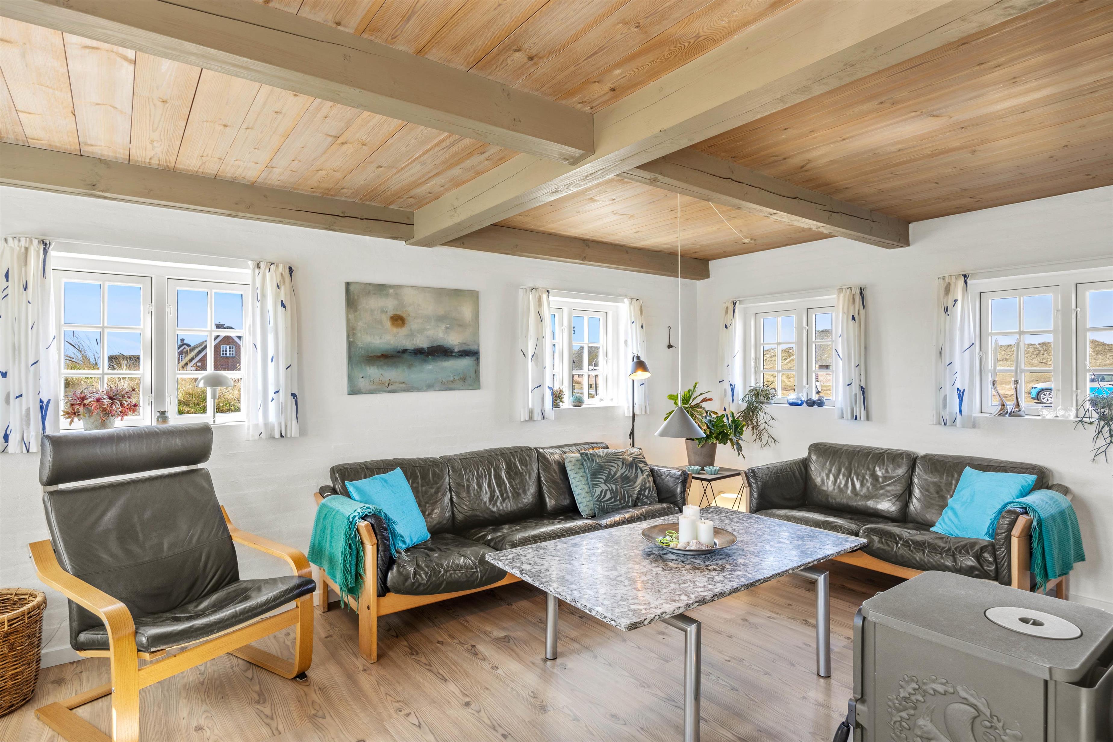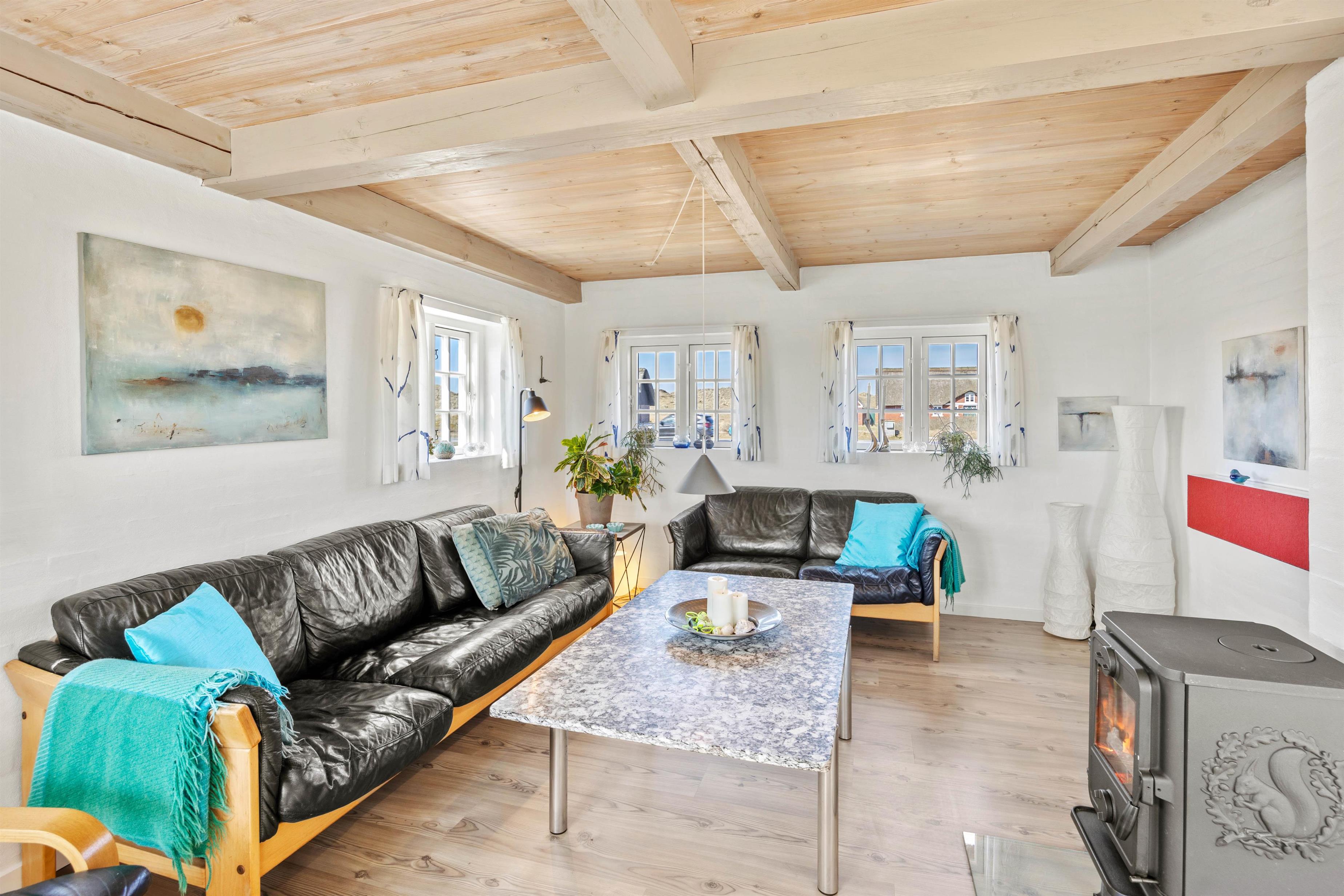 Kun et stenkast fra stranden kan du have uforglemmelige feriedage ved Vesterhavet. Efter en lang dag på stranden venter den hyggelige varme i feriehuset – med ild i brændeovnen eller varme på saunaen, hvor du kan få musklerne varmet godt igennem.