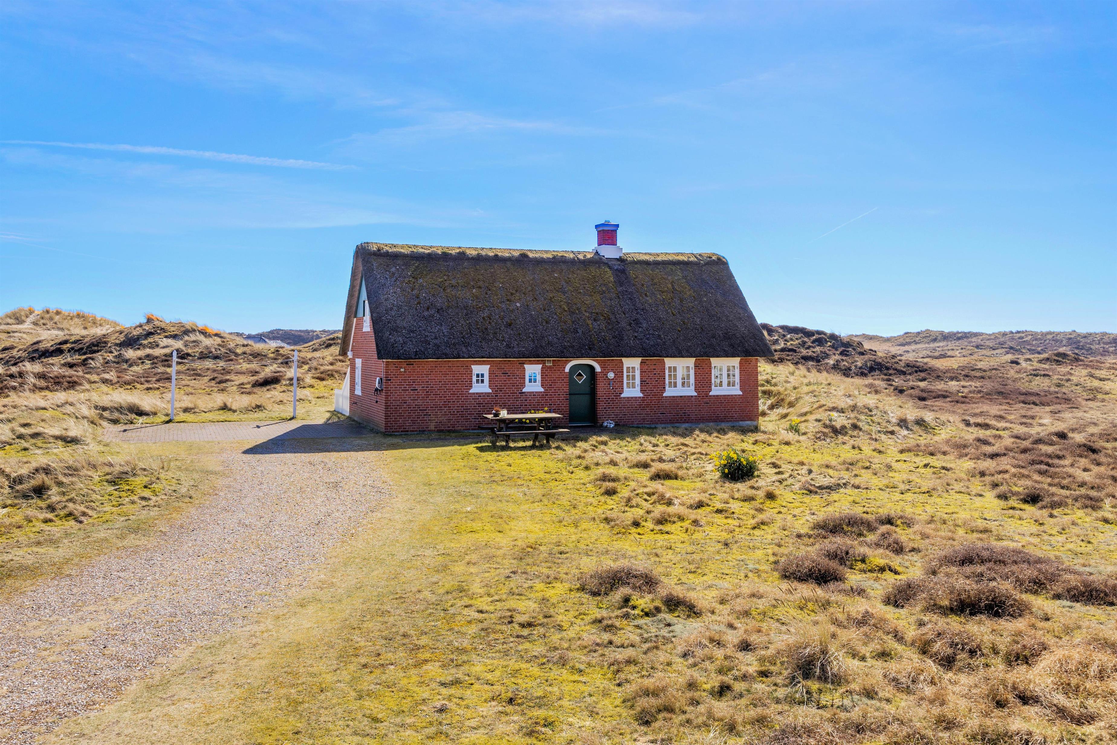 Velkommen til Sønderho Strandvej 60 på smukke Fanø. Det charmerende stråtækte hus på 95 kvadratmeter har plads til op til 4 gæster, og hunden er også velkommen.