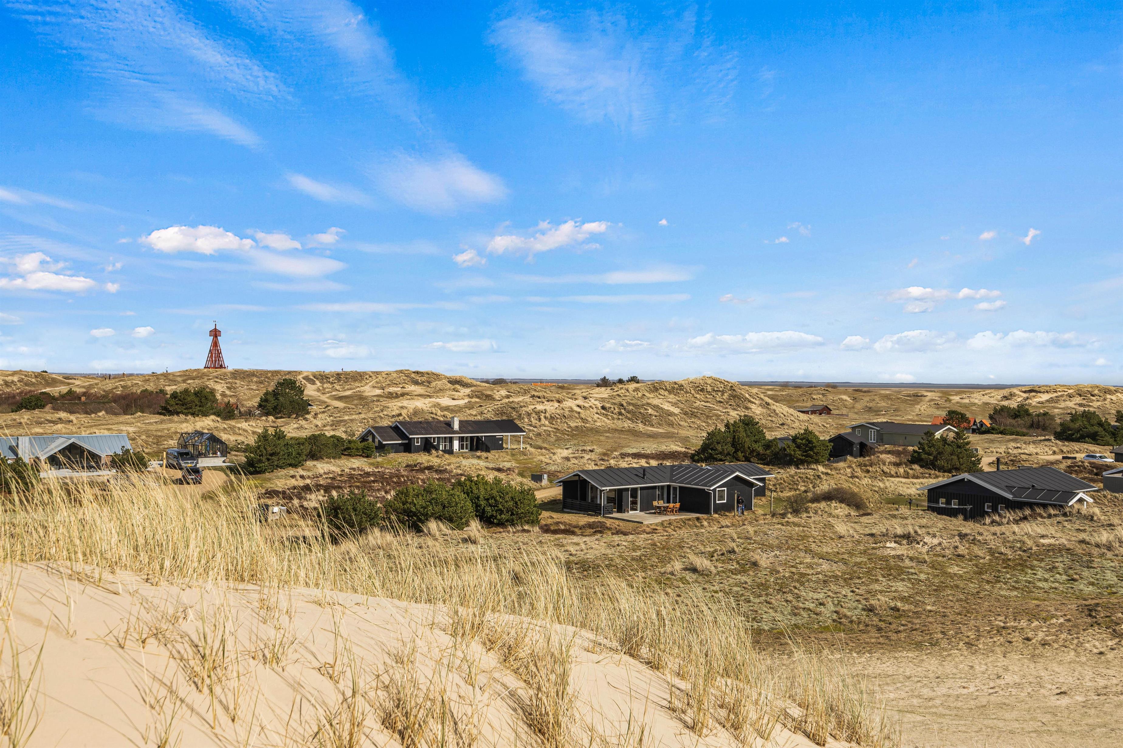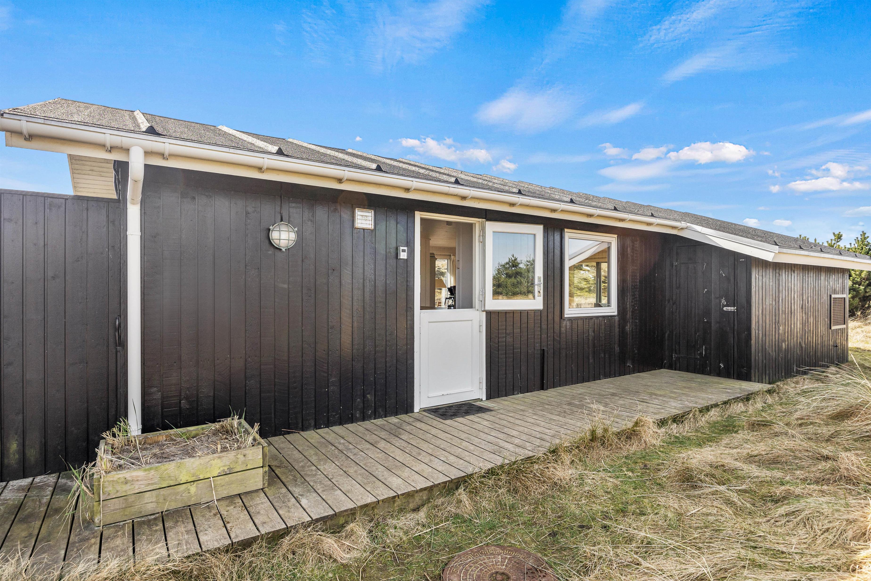 Terrassen omkring sommerhuset har både en åben, en afskærmet og en overdækket del, så I kan rykke rundt efter vejrforholdene. Tag plads i de komfortable havemøbler og slap af i solen, eller med en god bog. Nyd naturoplevelsen, som er lige ved døren på den pragtfulde naturgrund. Tænd op i grillen til aften, og nyd et lækkert grillmåltid sammen, imens skyggerne bliver lange. Bagefter kan I nå en tur til stranden, hvor I kan opleve solnedgangen i Vesterhavet. Det er altid en oplevelse – uanset vejret.