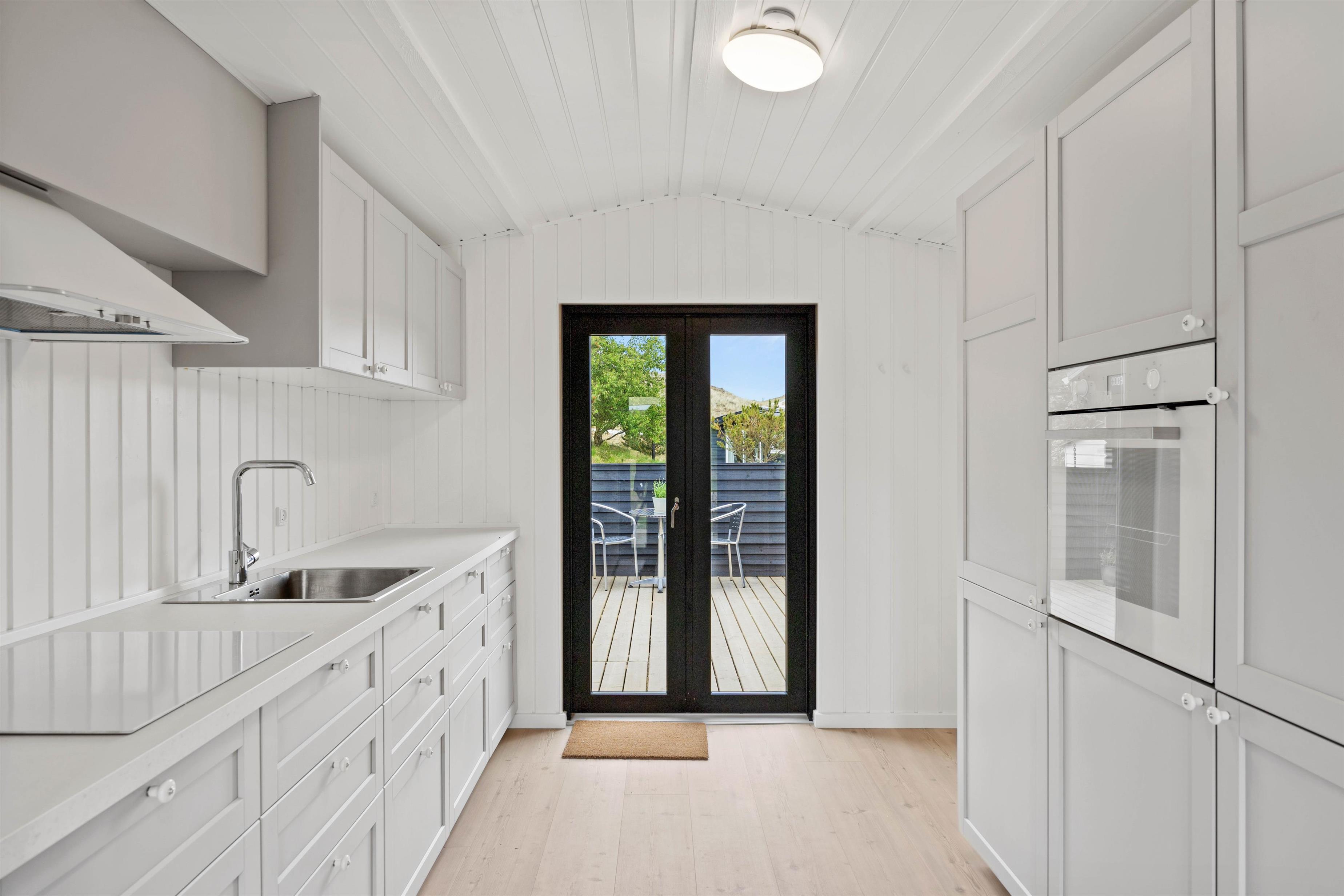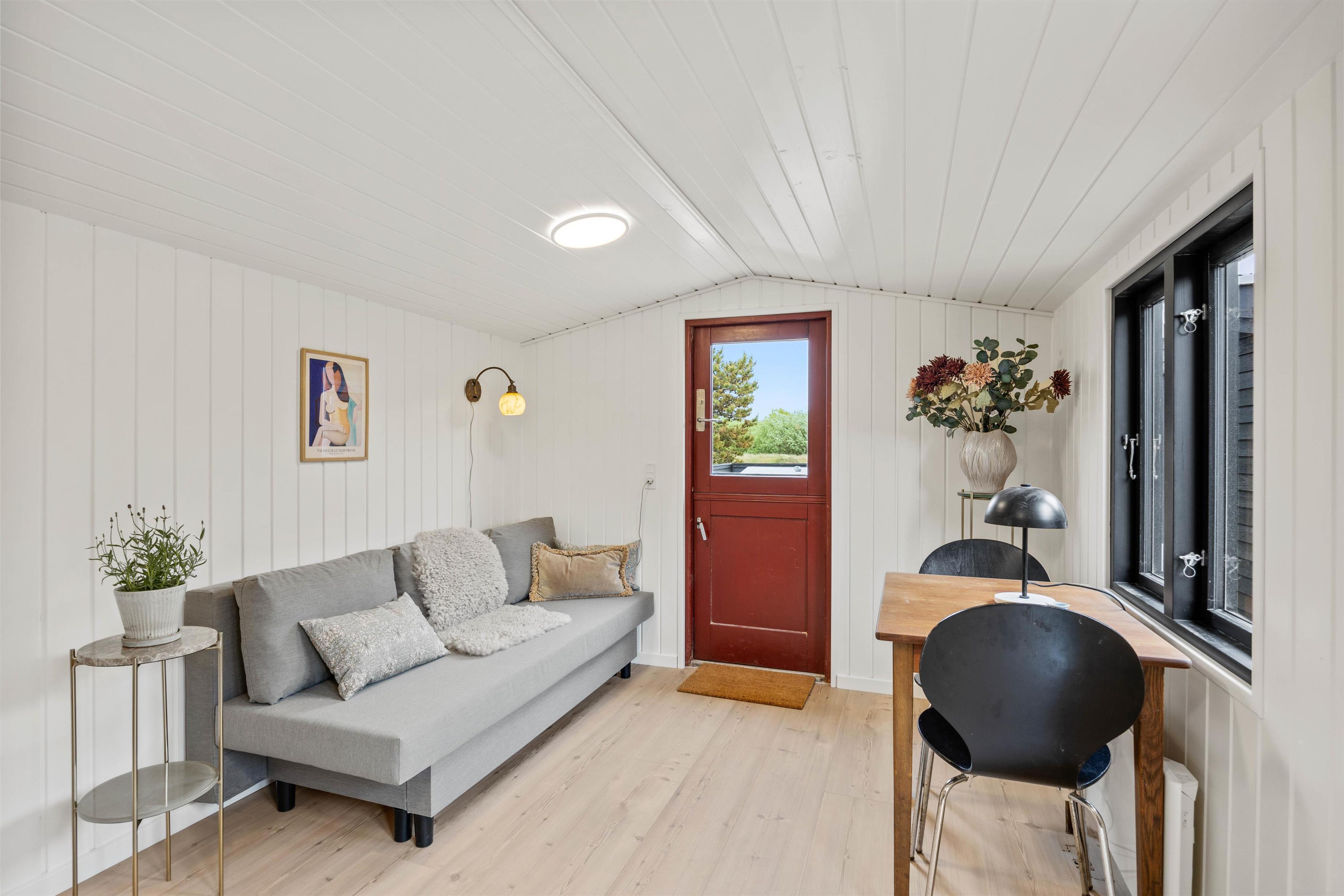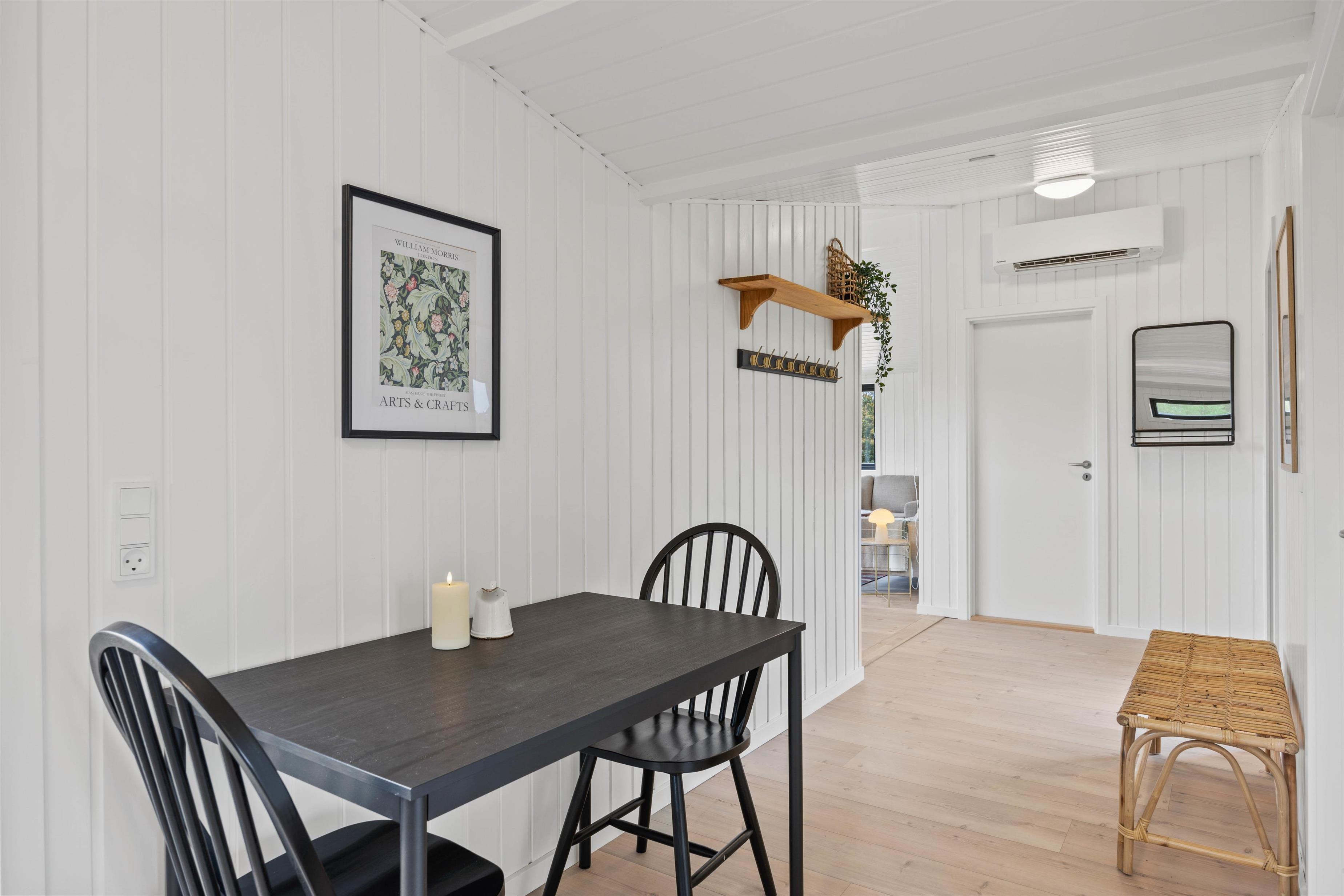 Sommerhusets indretning er gennemtænkt og funktionel, så I får det bedste ud af pladsen. I stuen kan I samles omkring den hyggelige brændeovn, og den energivenlige varmepumpe sørger for et behageligt indeklima året rundt. Det moderne køkken gør det let at tilberede måltider i ferien og rummer naturligvis også en opvaskemaskine, så opvasken hurtigt er klaret.