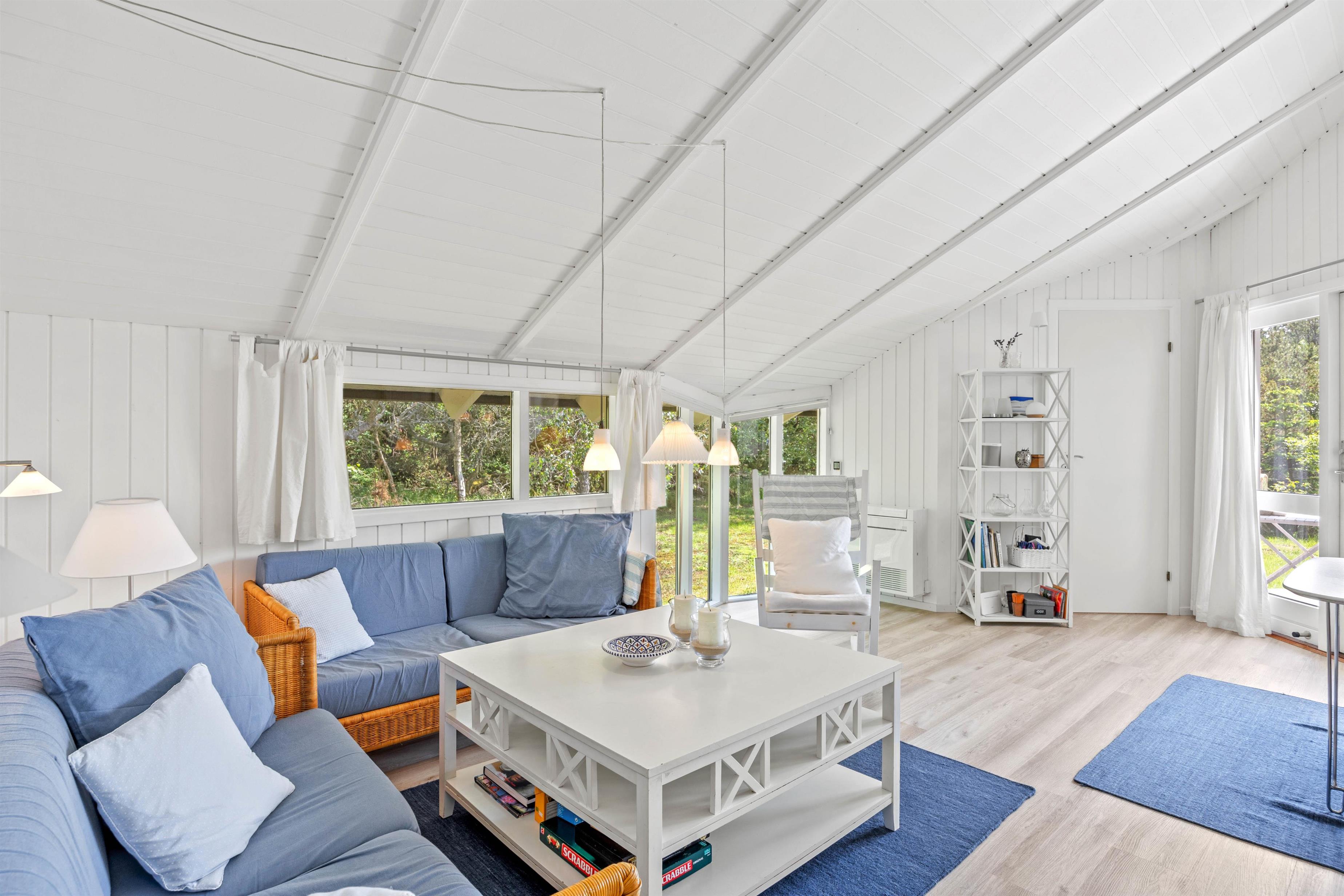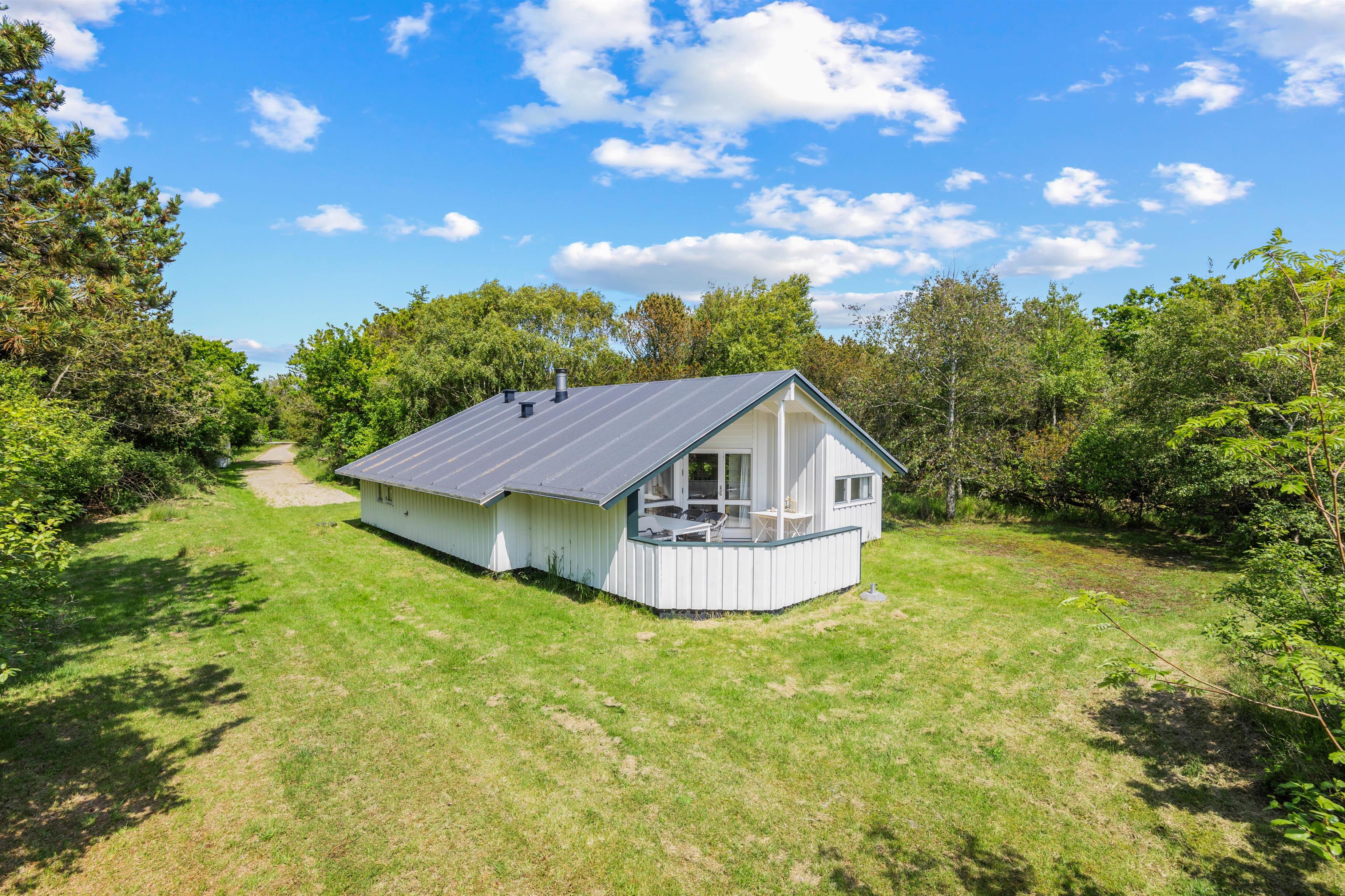 Sommerhuset ligger på en stor naturgrund på 2.343 m² og byder på skønne rammer til afslapning i det fri. På den overdækkede terrasse kan I slå jer ned i havemøblerne og nyde det vestjyske klima – uanset om det er med morgenkaffen, aftensmad fra grillen eller en stille stund i godt selskab. Her er der plads til at være sammen, trække sig tilbage og lade feriedagene finde deres eget rolige tempo.