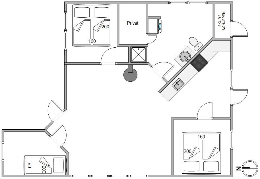 Sommerhuset rummer 68 m² og er indrettet, så I får mest muligt ud af pladsen. Med 2 dobbeltsenge og 1 enkeltseng fordelt på 3 værelser er der god plads til alle 5 gæster.