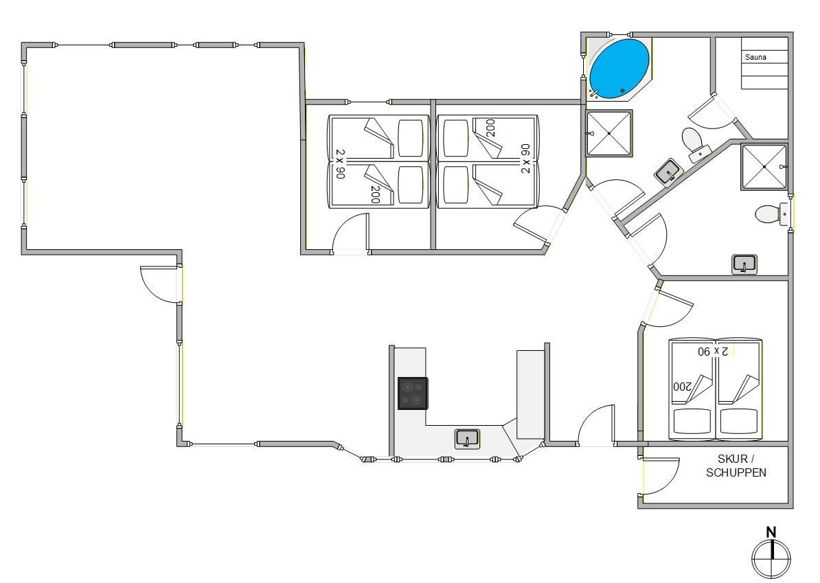 En lys og rummelig stue byder jer velkommen og indbyder til hygge og med 3 velindrettede soverum har sommerhuset plads til op til 6 personer, gør det ideelt til familier eller en gruppe venner, der søger en mindeværdig ferie. Feriehusets 2 badeværelser er udstyret med gulvvarme, der sikrer ekstra komfort på de køligere dage - det ene badeværelse byder desuden på en tømmespa, hvor du kan læne dig tilbage og lade kroppen og tankerne hvile for en stund. Feriehuset har også sauna.