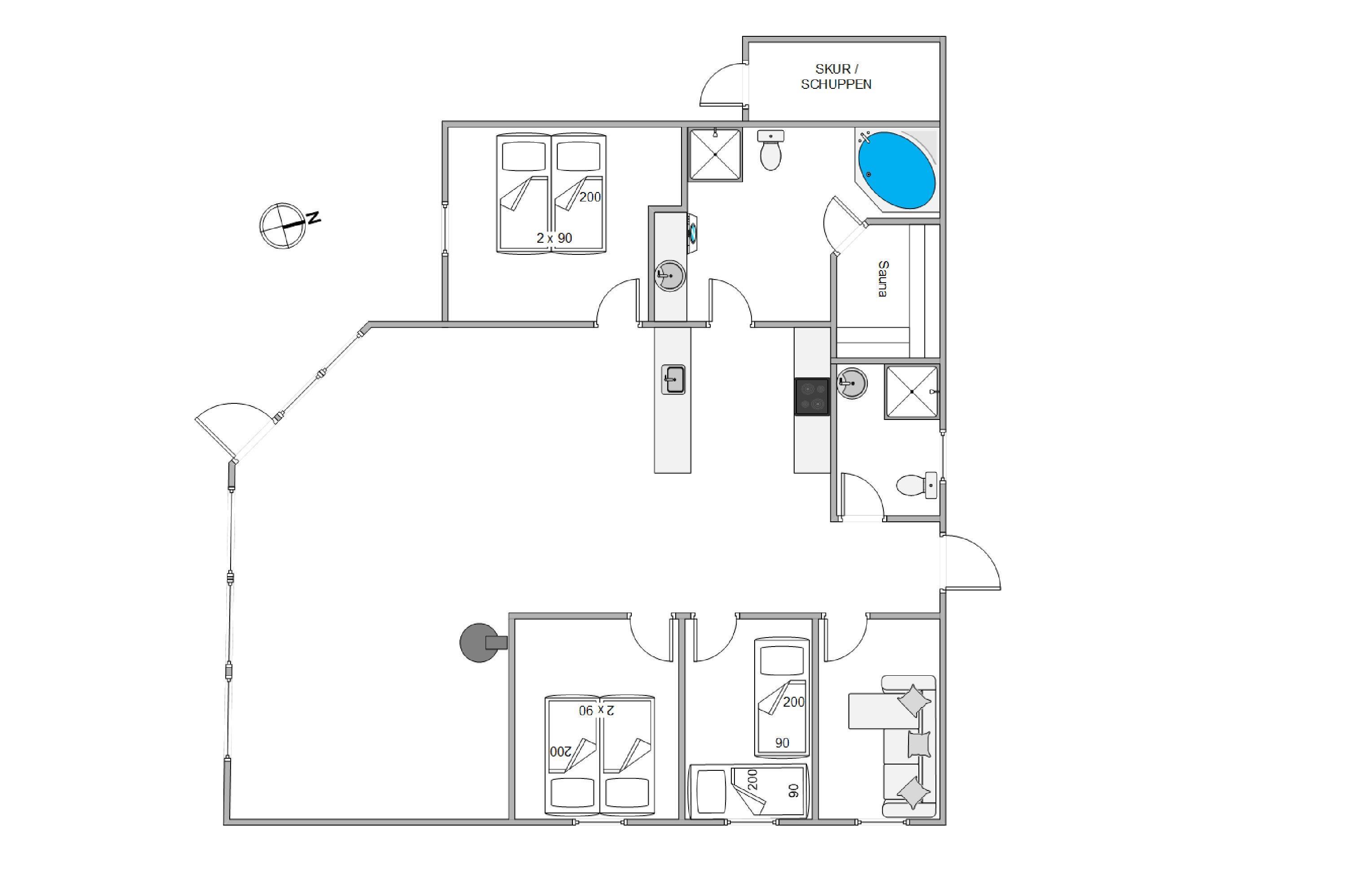 Sommerhuset er med 4 dejlige værelser, hvor de 3 værelser alle har 2 behagelige sengepladser. Det fjerde værelse er udstyret med et ekstra TV med Playstation 3. Værelset kan både bruges som gamer-rum, arbejdsværelse eller til ekstra soveværelse (sovesofa 140 cm). Sommerhuset har desuden 2 rummelige badeværelser, hvor det ene er udstyret med spa og sauna.