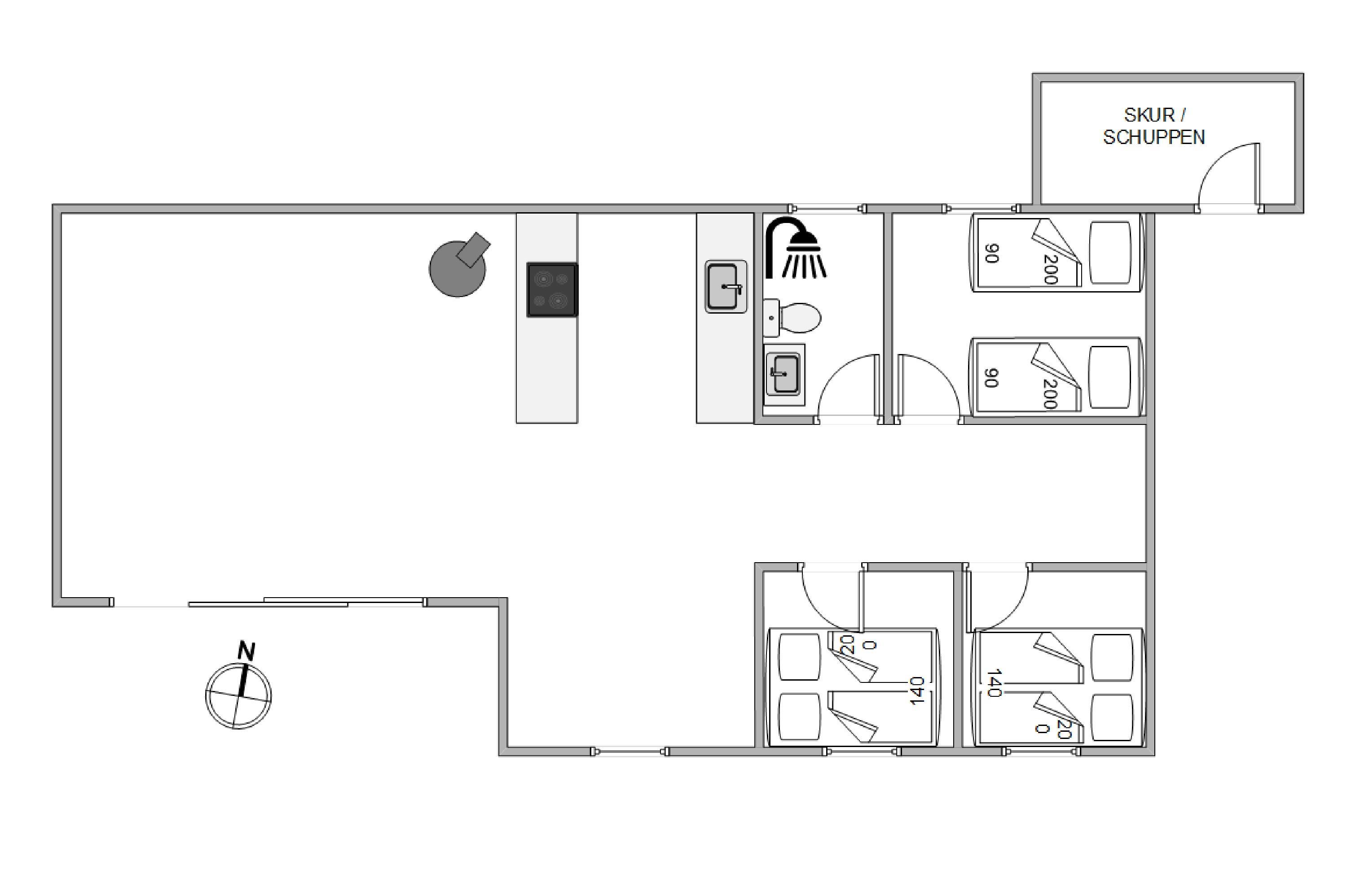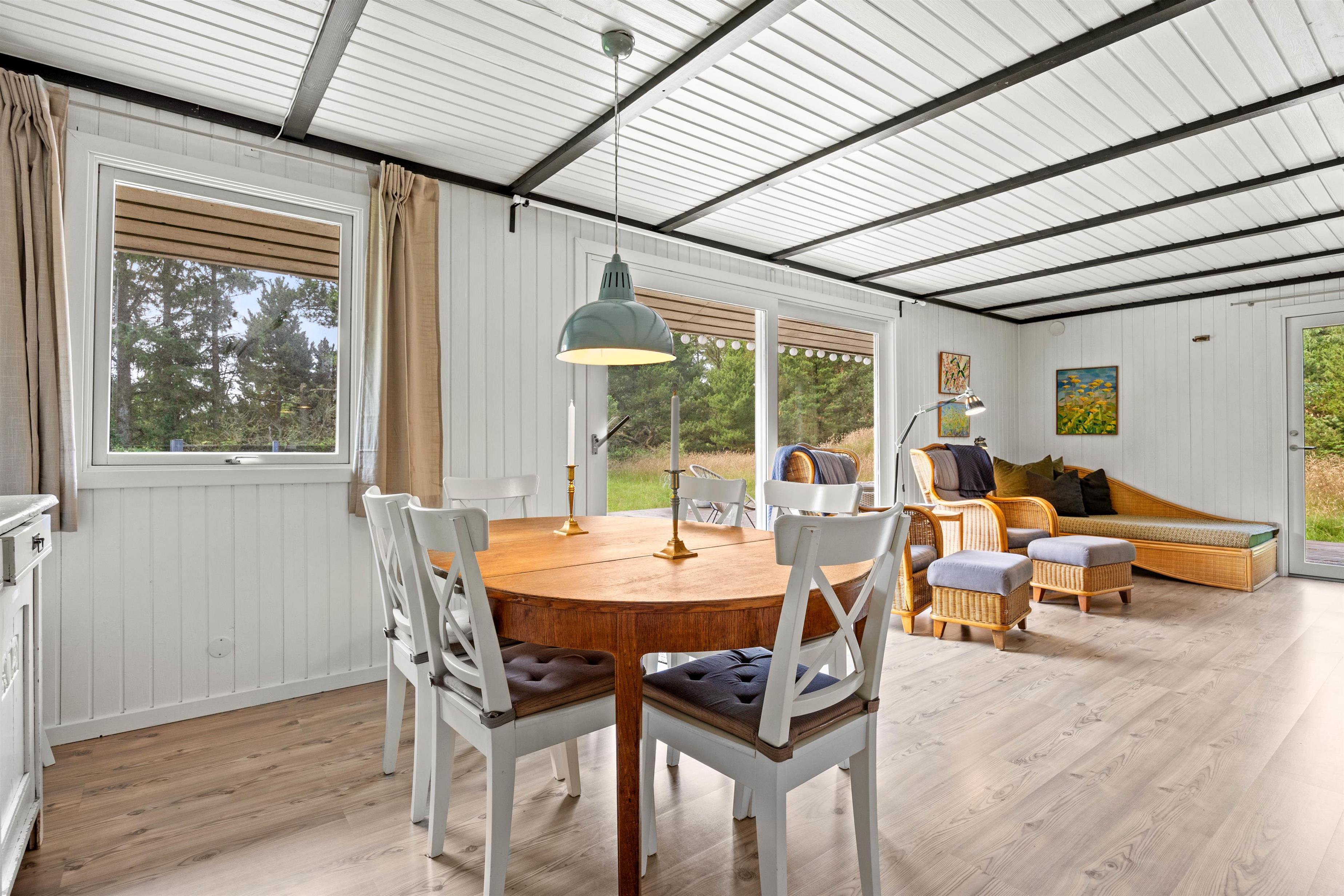 Sommerhuset på Nymarken 5 er renoveret i 2024, og feriestemningen mærker I straks i den lyse og moderne indretning. I opholdsområdet sørger brændeovnen for behagelig varme på kølige aftener. I kan slappe af i sofaen, trække jer tilbage med en god bog eller arrangere en filmaften. Køkkenet indeholder alt, hvad I behøver for at forkæle hinanden med lækre hjemmelavede måltider, blandt andet mikroovn og opvaskemaskine. Den omkostnings- og energibesparende varmepumpe sørger for behagelige temperaturer i sommerhuset.