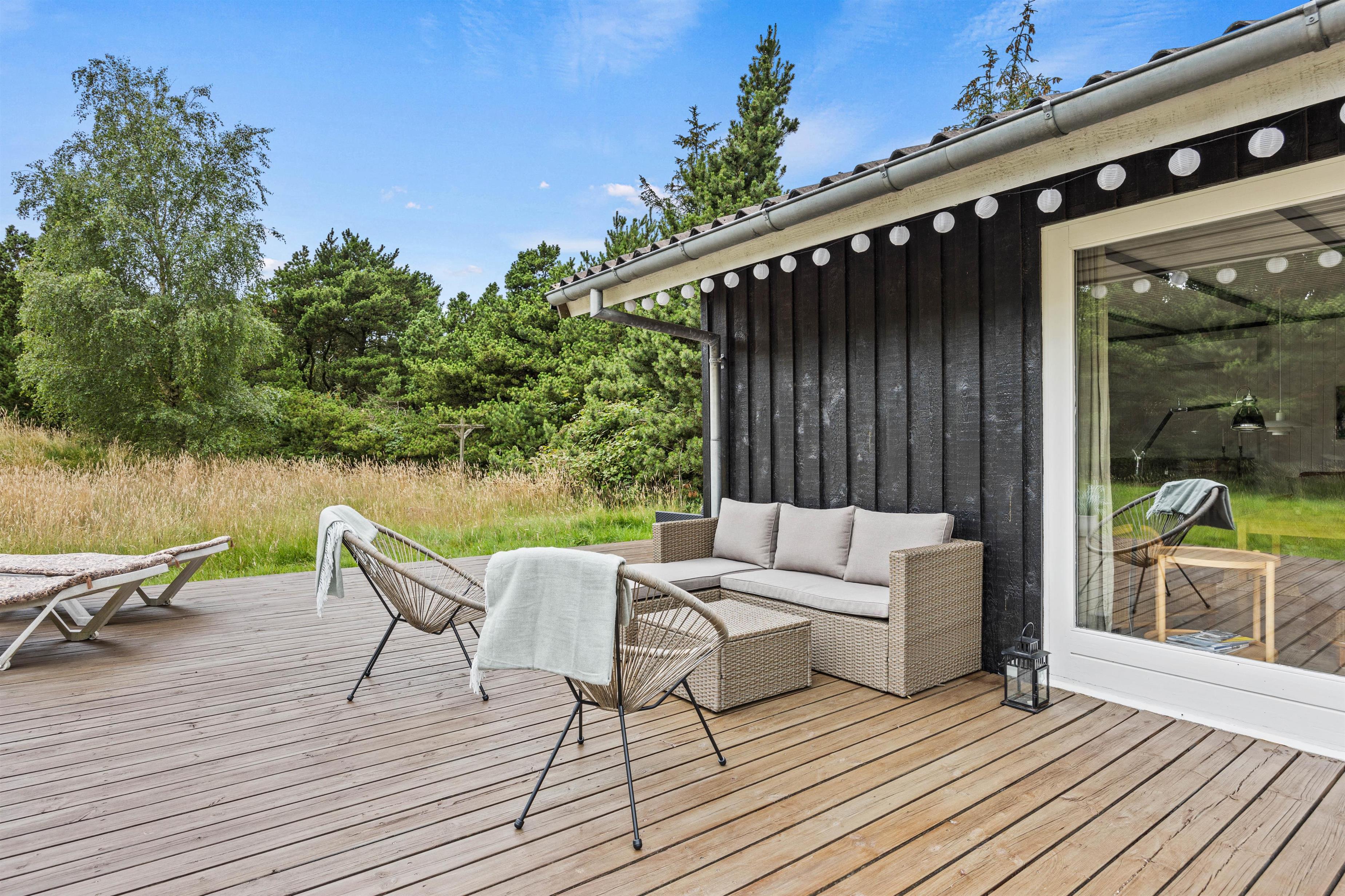 Den godt 2500 kvm store naturgrund med plæne omgiver sommerhuset og giver jer masser af muligheder for ophold i det fri. På den åbne terrasse kan I solbade i de komfortable liggestole eller trække jer tilbage i havemøblerne. Tænd op i grillen til aften og nyd et lækkert grillmåltid sammen, imens skyggerne bliver lange.