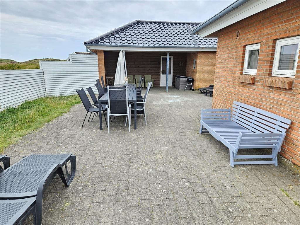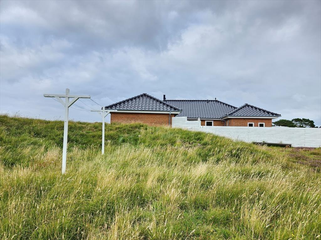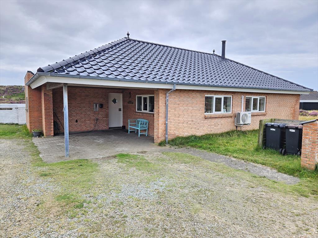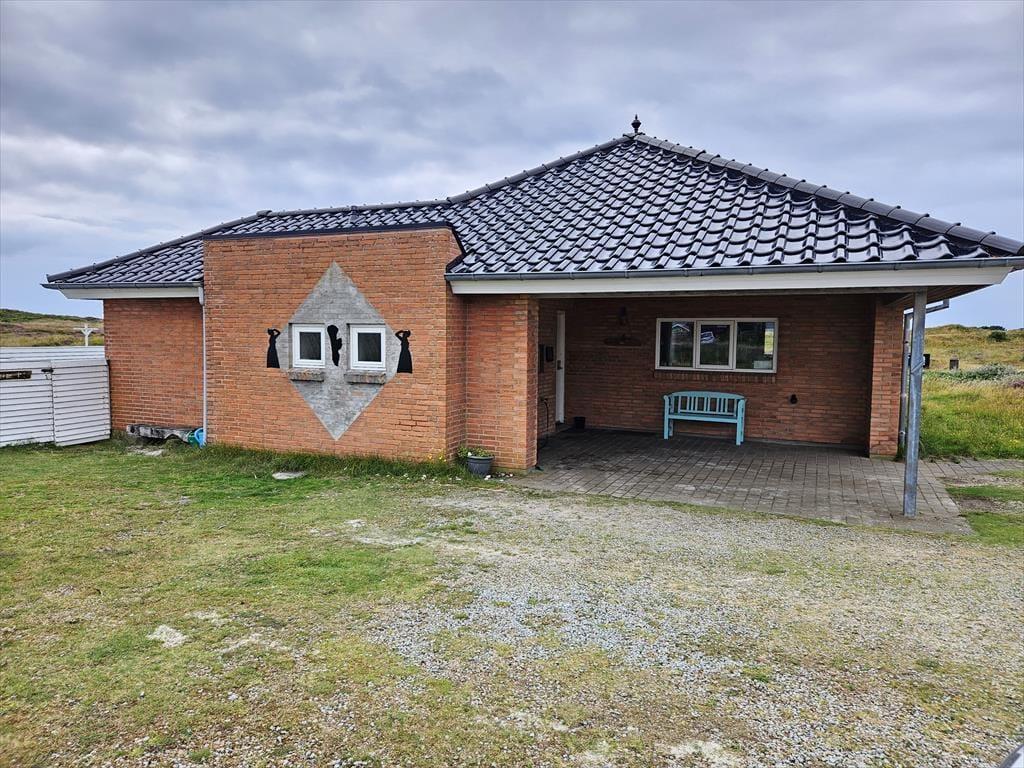 På husets nordøstlige side er der carport med mulighed for at oplade elbil, mens en stor, lukket terrasse breder sig mod syd. Størstedelen af terrassen er åben, så I kan slikke sol og spise frokost under åben himmel, men hvis I vil finde skygge under overdækningen, er der også mulighed for det. Med sine 2500 m2 er klitgrunden dejligt stor, og den smelter smukt sammen med det omgivende landskab.