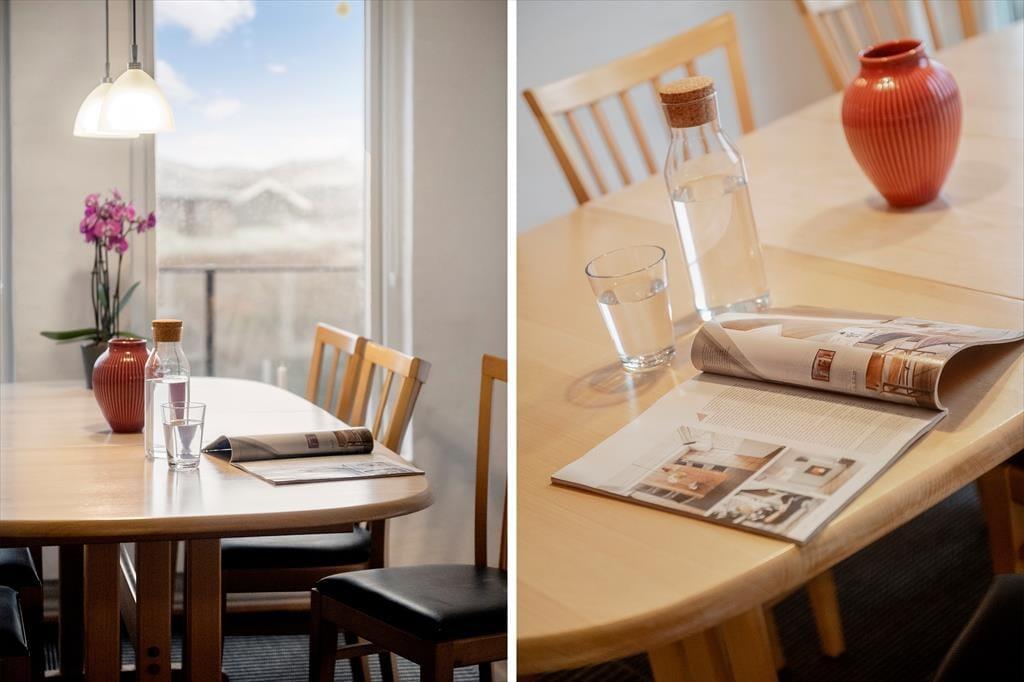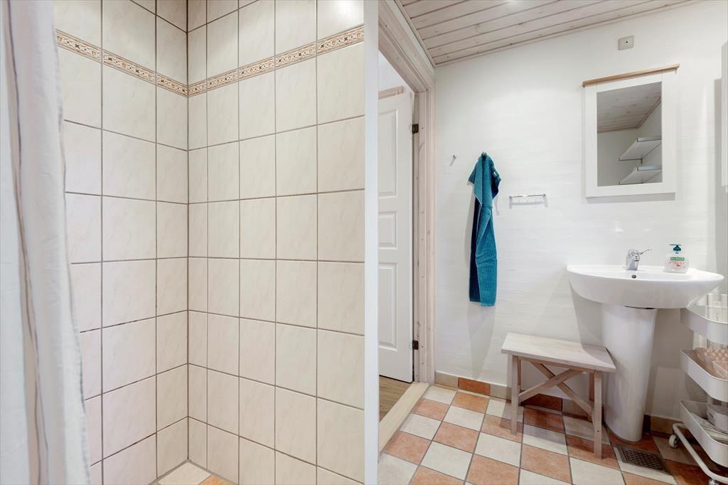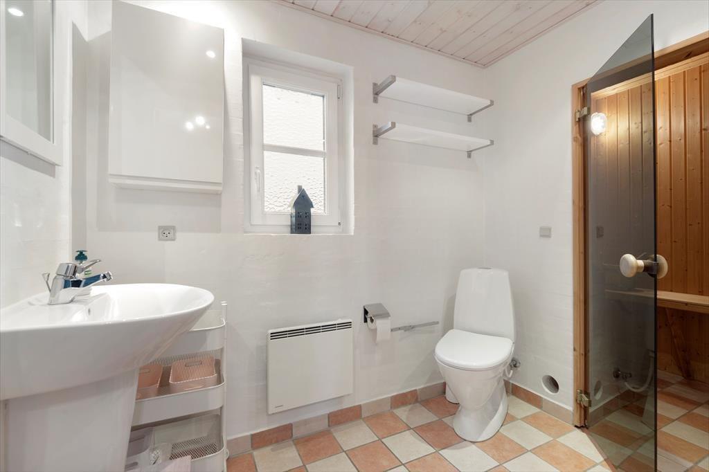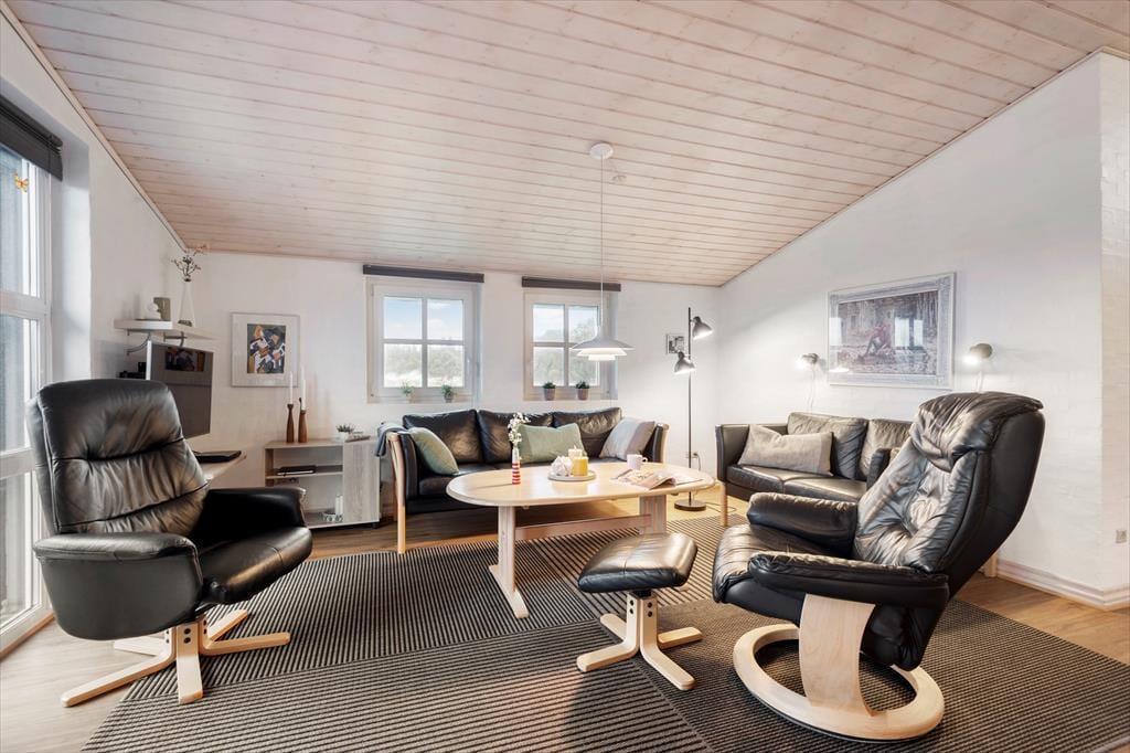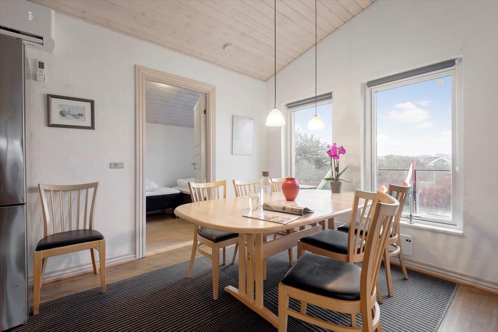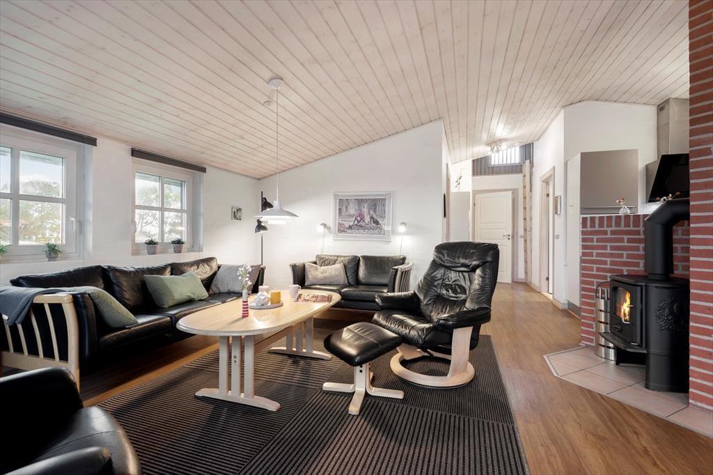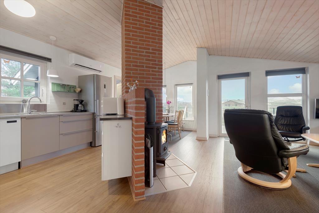 De fantastiske naturomgivelser er selvfølgelig en tungtvejende grund til at vælge sommerhuset som base for ferien – men det spiller også en rolle, at huset har en lys og indbydende atmosfære såvel som en velfungerende planløsning til seks personer. Der er tre gode soveværelser og et badeværelse med bruser og sauna inden døre, og måske især børnene vil blive glade for den hyggelige hems. Hvis du kan lide at lave mad, fungerer det åbne køkken som en skøn arbejdsstation, når du vil bage boller til morgenmaden eller gøre noget ekstra ud af aftensmaden. Spisebordet er placeret lige ved vinduerne, så lysindfaldet og udsigten pynter også på måltidet. Hvis det er køligt udenfor, kan du endda tænde op i brændeovnen for at sprede ekstra varme og hyggestemning i rummet.
