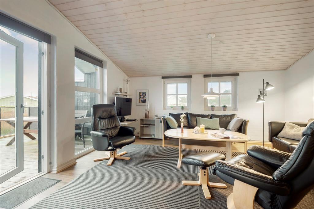 På sommerhusets to dejlige træterrasser får du rig mulighed for at nyde den friske luft og det gode vejr i rolige omgivelser. Terrassen mod sydøst er det oplagte valg først på dagen, og hvis du virkelig vil tage Sønderhos naturskønne landskab ind, skal du sætte dig i en god havestol på den sydvestvendte terrasse. Her er udsigten over klitterne nemlig allerskønnest. På græsplænen har familien plads til leg og boldspil, og med gyngestativ og sandkasse er der underholdning til de yngste, når de voksne drømmer om lige at drikke en kop kaffe til, inden det er tid til at tage på udflugt.