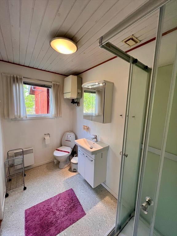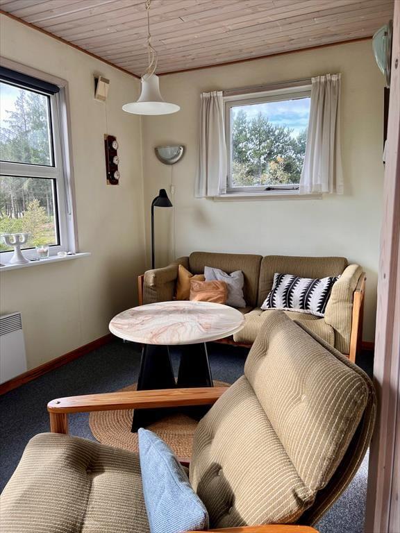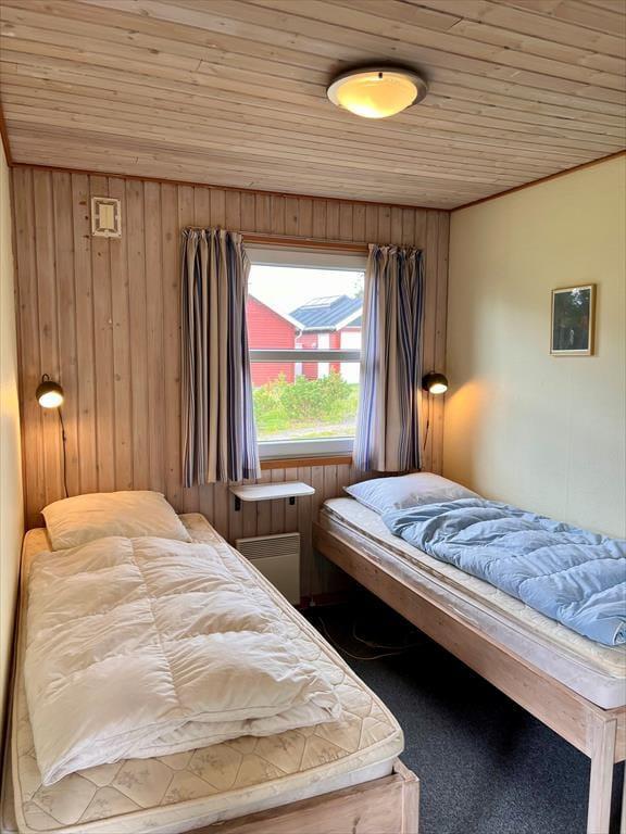 Det rødmalede sommerhus har ligget i det naturskønne landskab siden 1963 og bærer præg af sin tid med en indretning og møbler af ældre dato. Her er ikke tale om et moderne feriehus, men om et enkelt hjem med personlighed og den særlige stemning, som kun et ældre hus kan have. Køkkenet giver jer de nødvendige rammer til feriemåltiderne, og i stuen kan I samles omkring spisebordet eller slappe af i sofahjørnet med en god bog. På kølige dage kan I tænde op i brændeovnen, der hurtigt spreder varme og hygge. Huset rummer desuden et badeværelse samt tre soveværelser, som danner en praktisk base for afslappende feriedage.