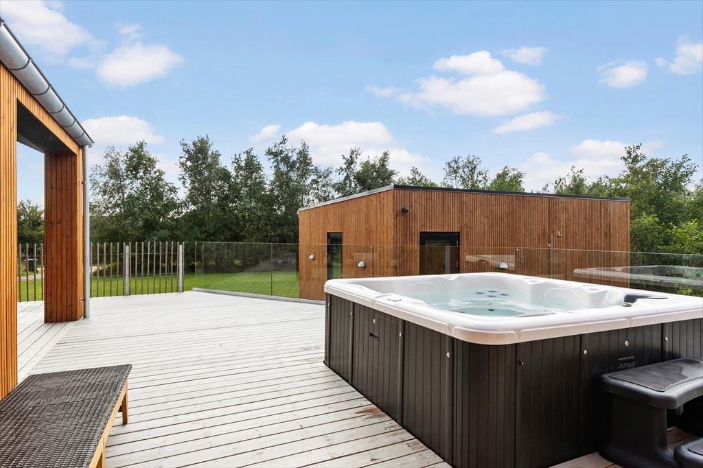 Udendørsarealet indbyder til både afslapning og leg. Den generøse, ugenerede grund tilbyder både åbne plæner til leg og terrasser, hvor du kan slappe af med en god bog, mens du lytter til fuglesangen og mærker vinden i træerne. Her er der plads til hele familien, og hvis du har børn med, vil de elske at løbe rundt på græsset og lege. Nyd de lange sommeraftener på terrassen, hvor du kan tænde op i grillen og nyde lækre måltider under den klare aftenhimmel. For en ekstra forkælelse kan du nyde udespaet, som giver mulighed for skønne afslapningsstunder under åben himmel. Med den fantastiske beliggenhed er det ikke langt til Sønderstrand, hvor du kan nyde livet ved havet, bygge sandslotte eller blot gå lange ture langs vandet. Udenfor finder du også en udebruser, der giver dig mulighed for at skylle sand og salt af efter en dag ved stranden.