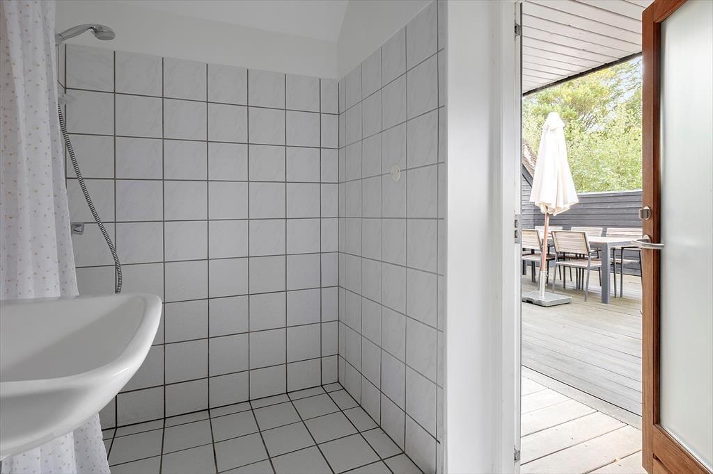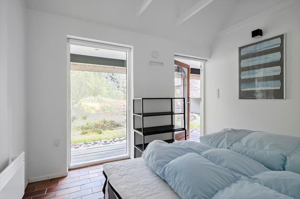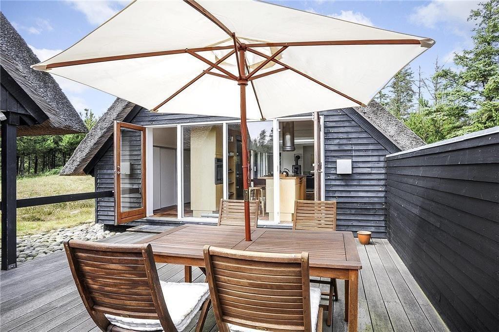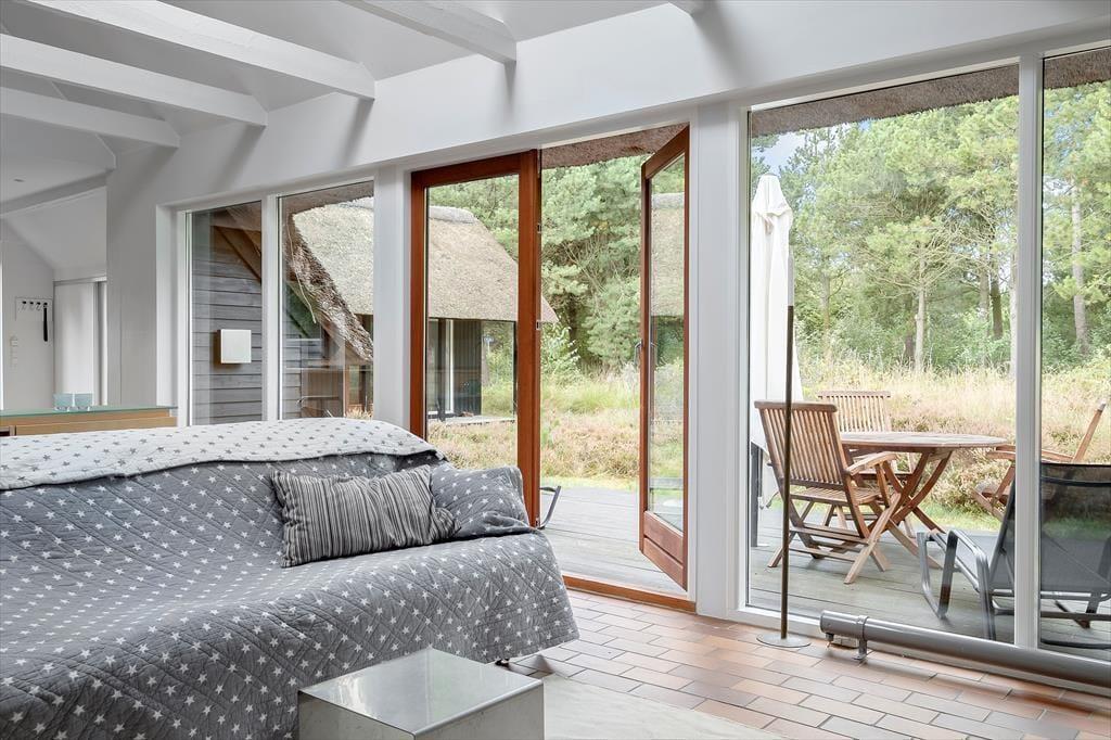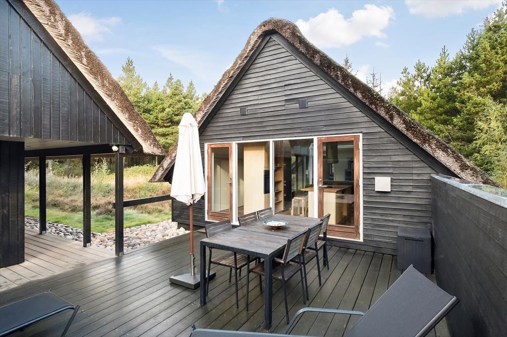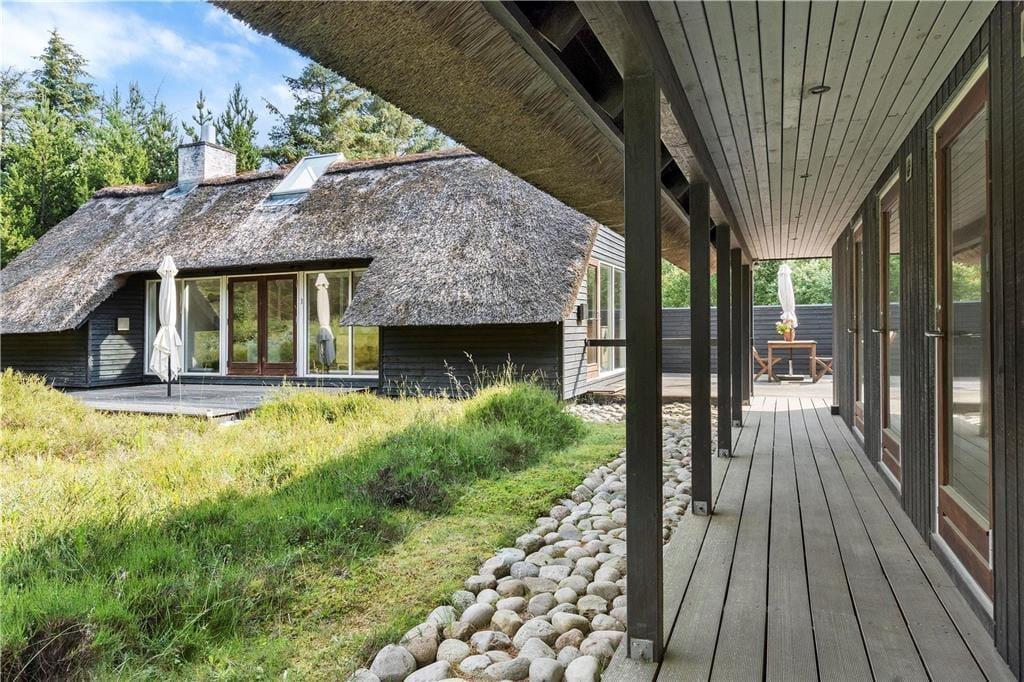 På den 2533 m² store naturgrund kan I se frem til at slappe af og nyde ferielivet i fulde drag. Mellem hovedhuset og annekset ligger en sydøstvendt træterrasse, der afskærmes af plankeværk, så det er en fredfyldt og ugeneret oase. Fra hovedhuset kan I også træde direkte ud på en vestvendt træterrasse, og det er det helt rette sted at slå sig ned, når I vil nyde det kønne syn af grundens lyng, krogede fyrretræer og anden fritvoksende beplantning.