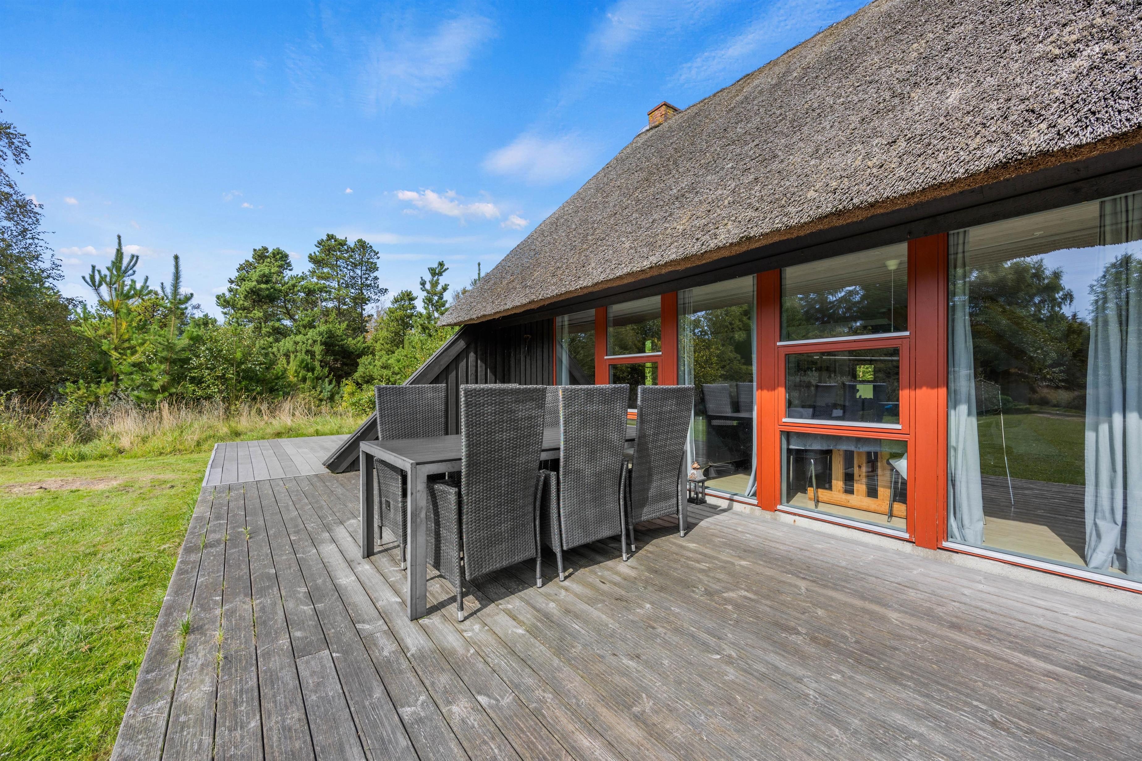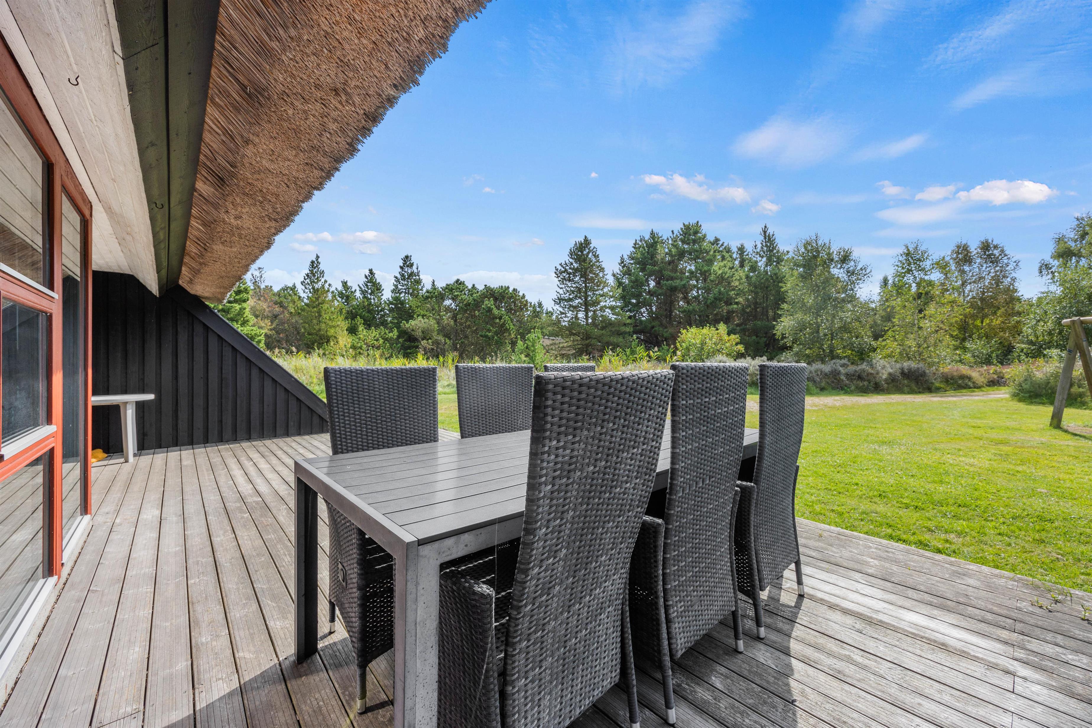 På sommerhusets terrasse står havemøbler og liggestole klar til jer, så I kan nyde eftermiddagskaffen, mens børnene brænder energi af med en masse leg. Til aften kan I på bedste vis slutte af med et lækkert måltid tilberedt på sommerhusets grill.