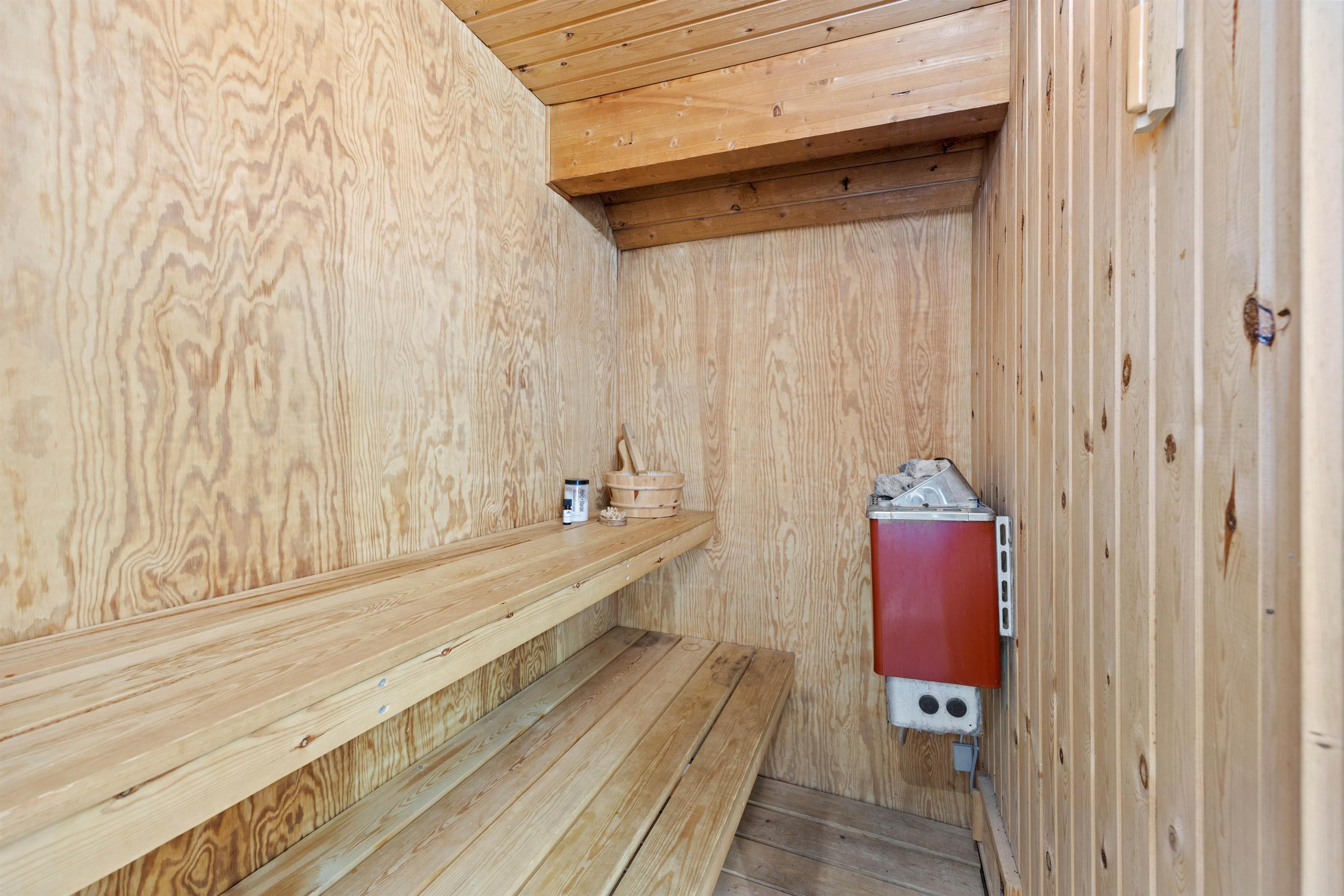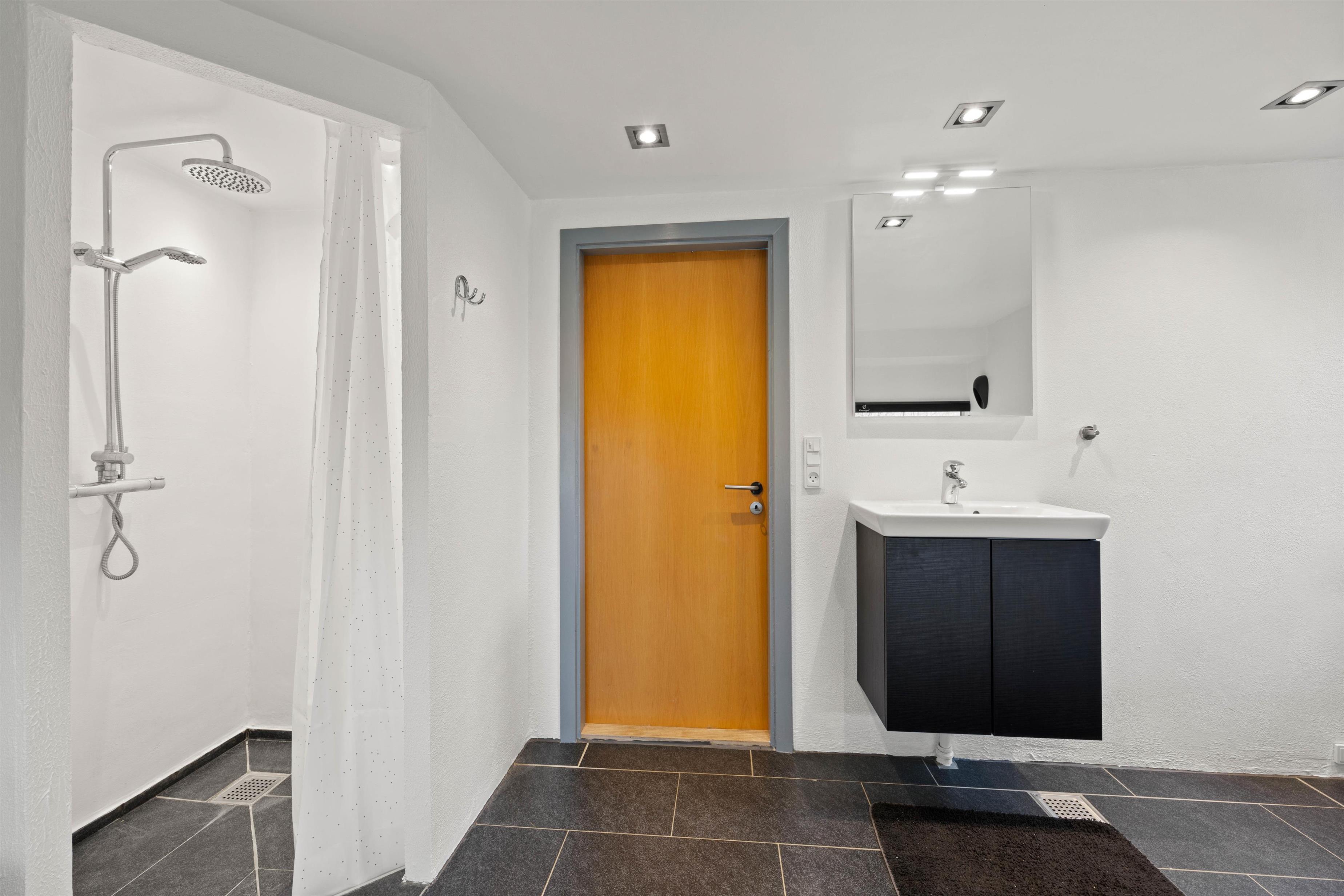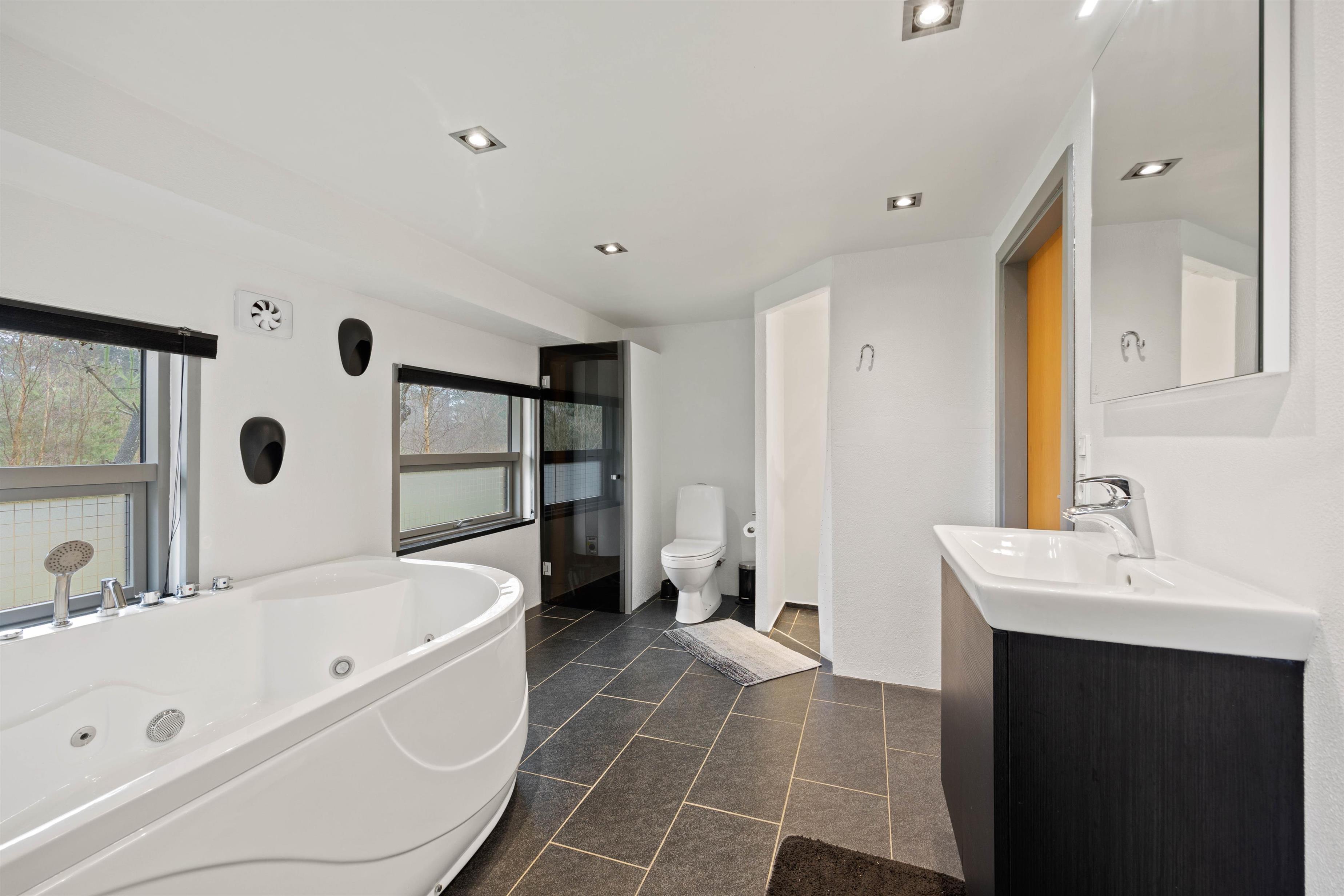 Udover alrummet byder stueplan også på et rummeligt badeværelse, hvor spabad og sauna står klar til jer. Her er der altså god mulighed for afslapning og velvære i løbet af ferien.
