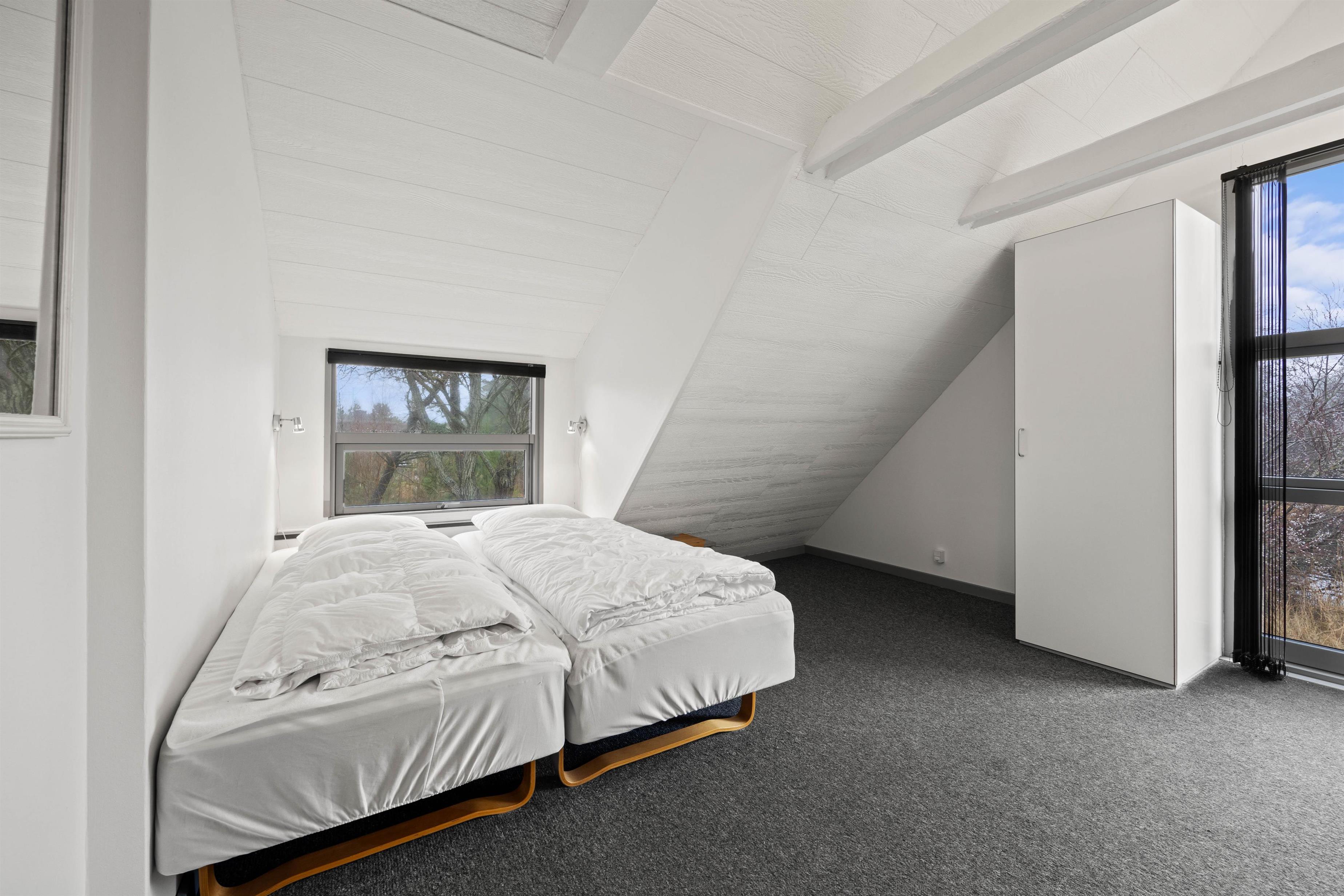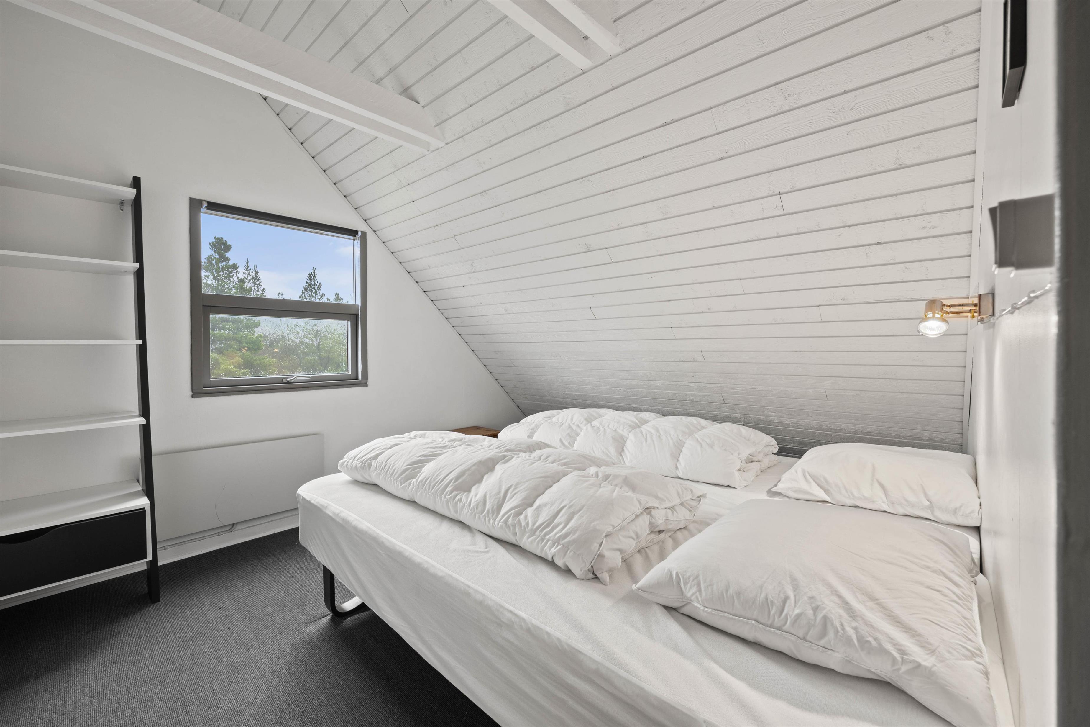 Endeligt ligger det ene af sommerhusets værelser også i stueplan. Værelset er indrettet med en komfortabel dobbeltseng til en god nats søvn.
