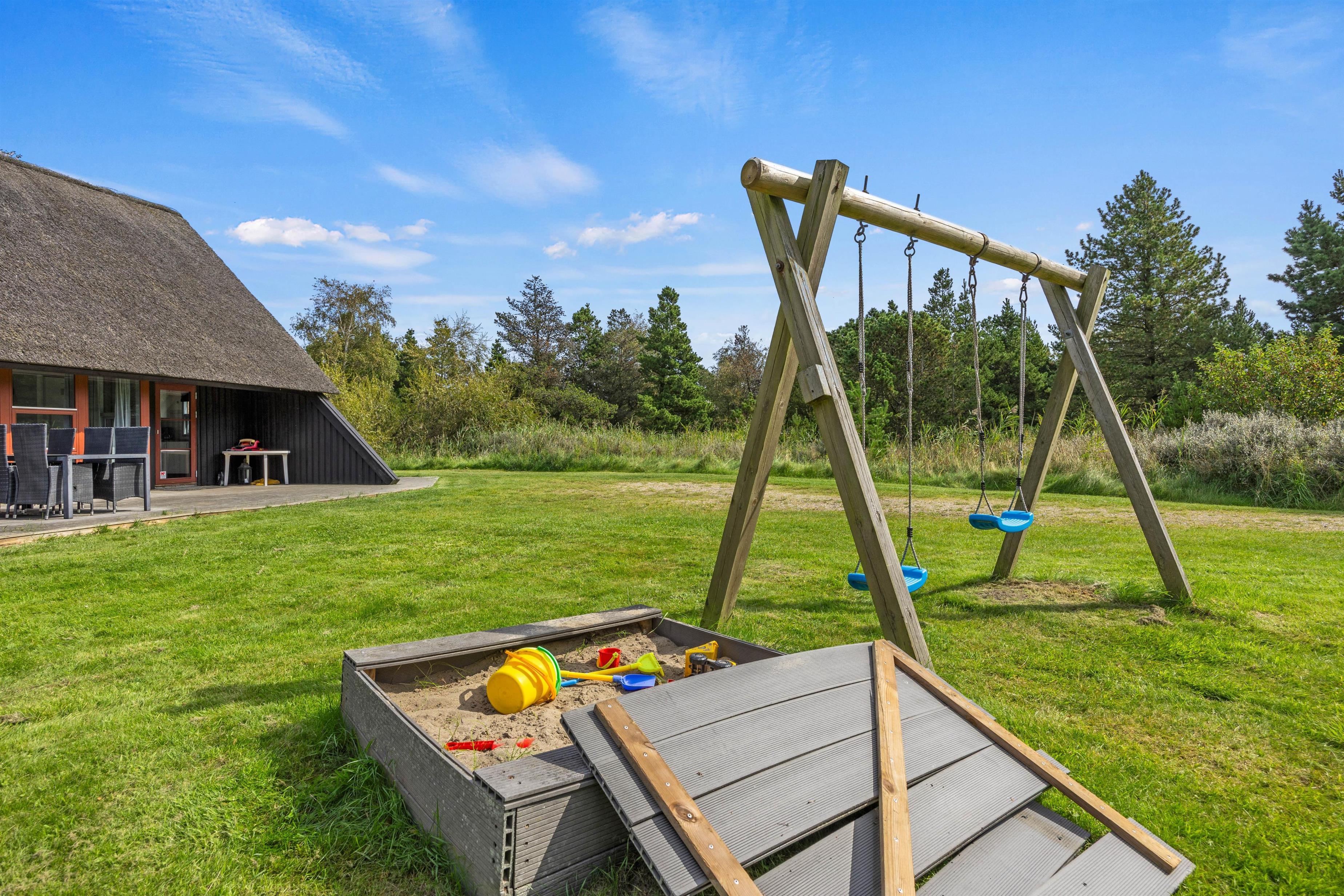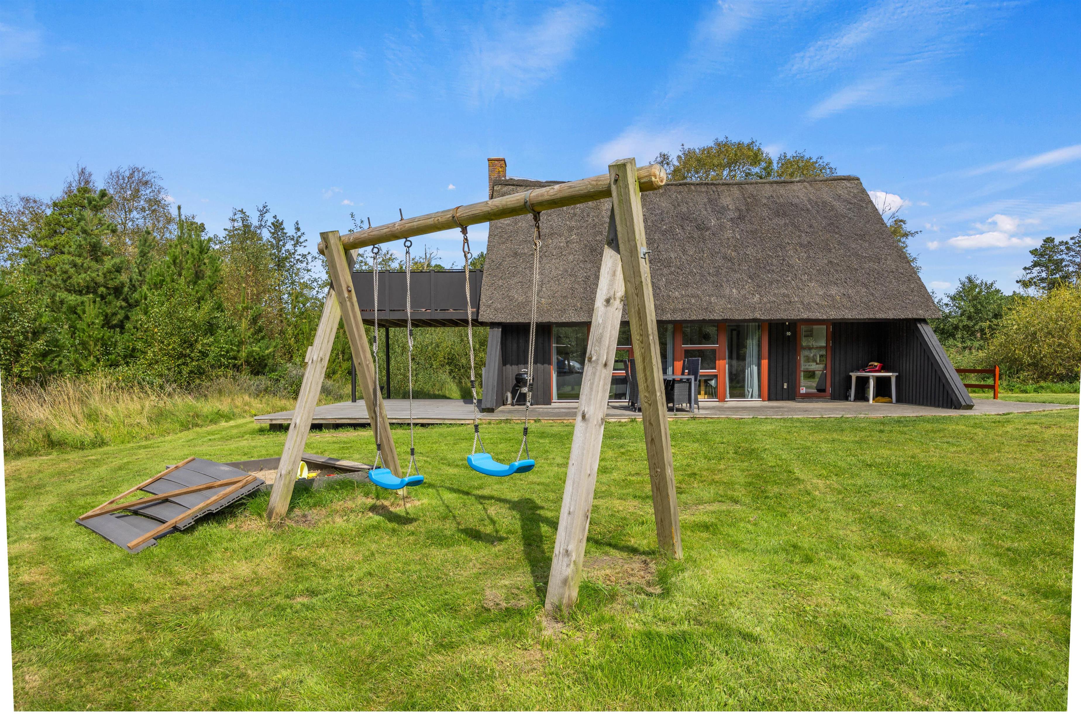 Sommerhuset ligger på en 2500 m² stor naturgrund, hvor børnene har god plads til at lege. De yngste vil uden tvivl få stor glæde af sandkassen og gyngestativet.