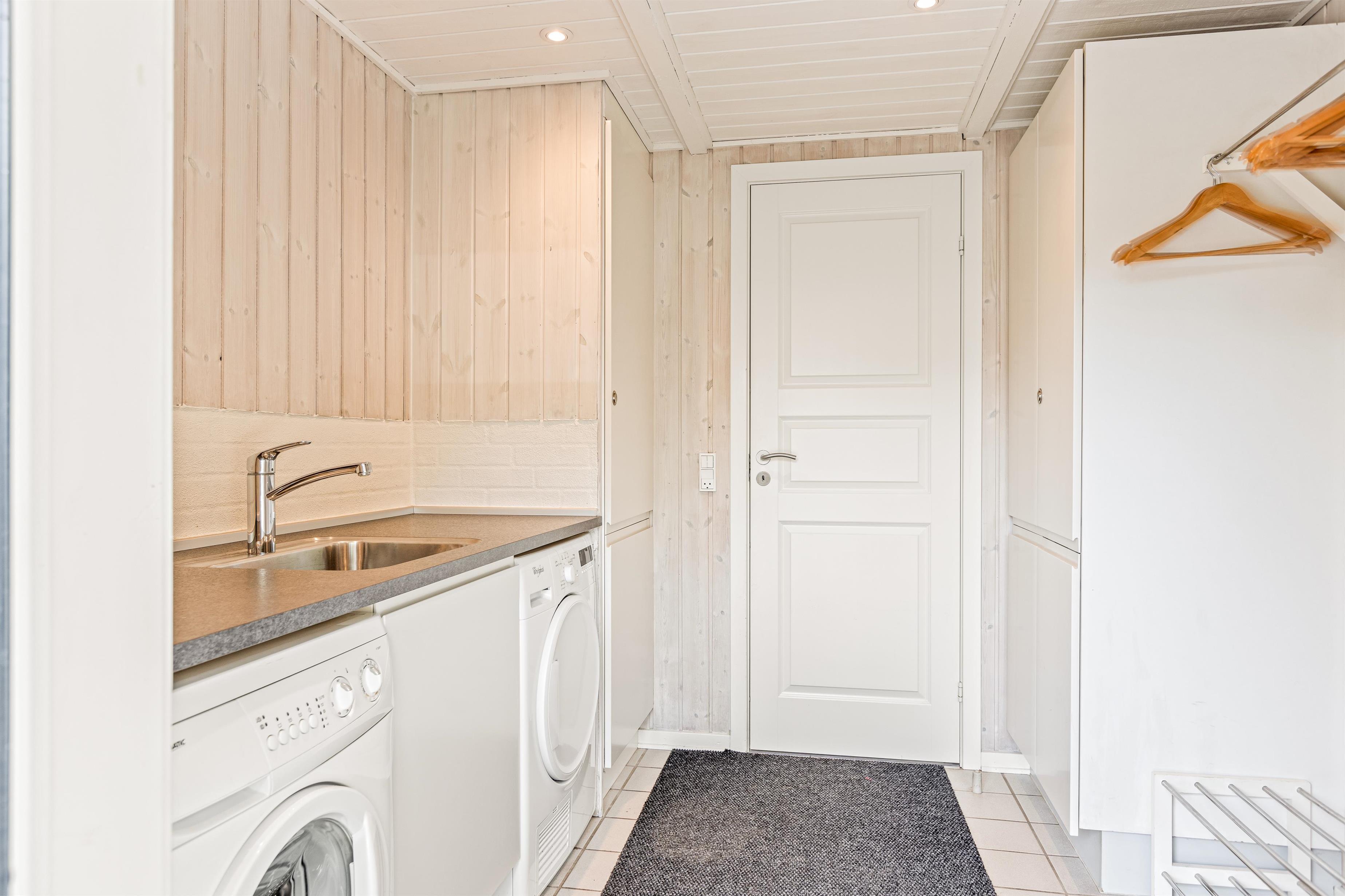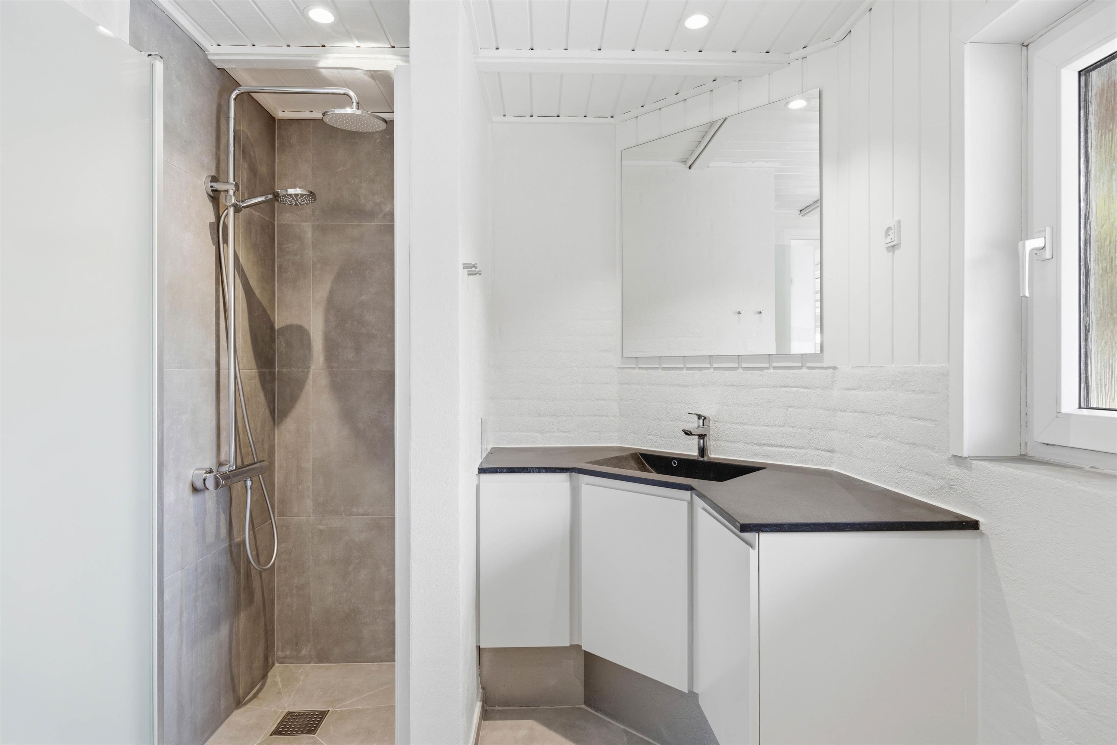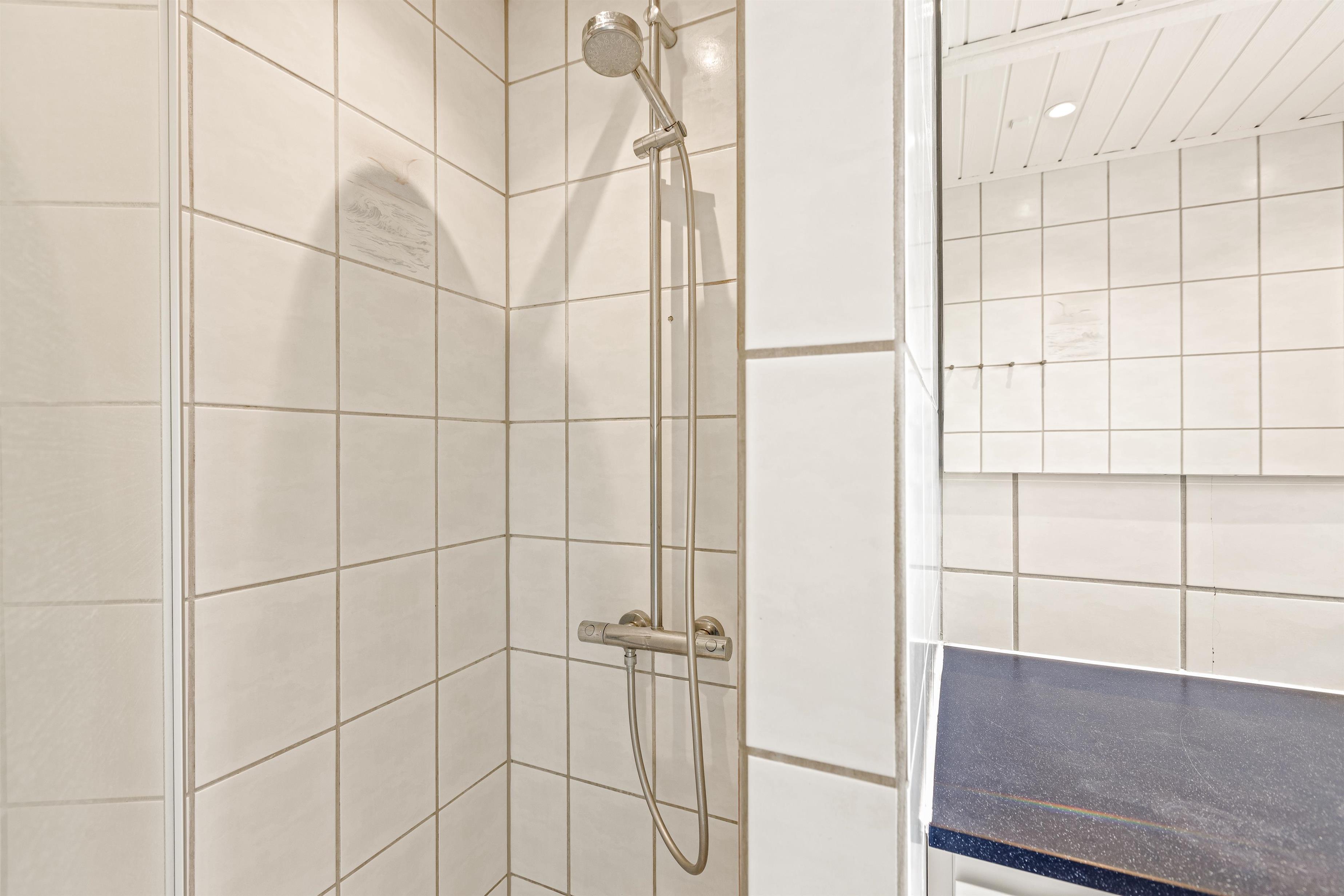 Sommerhusets andet badeværelse ligger i den anden ende af sommerhuset, hvor I også finder de 4 soveværelser. Alle soveværelser er indrettet med komfortable dobbeltsenge, og der er gulvvarme på badeværelserne. Desuden er der både vaskemaskine og tørretumbler i feriehuset.