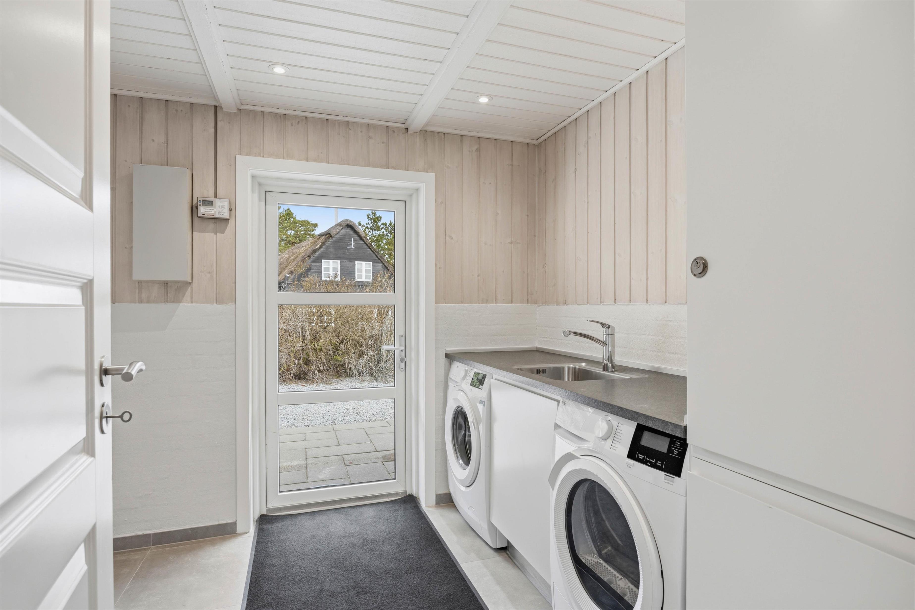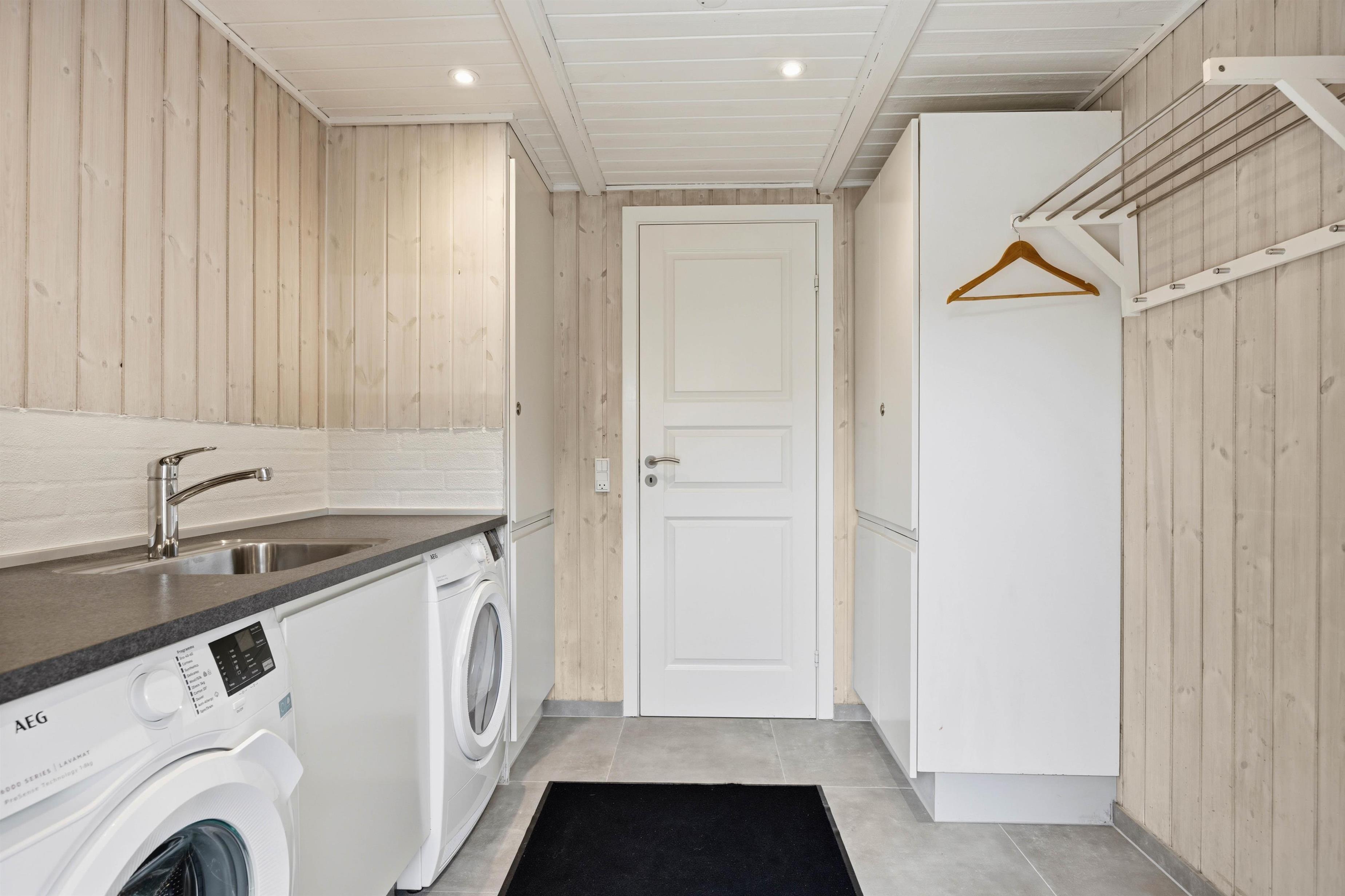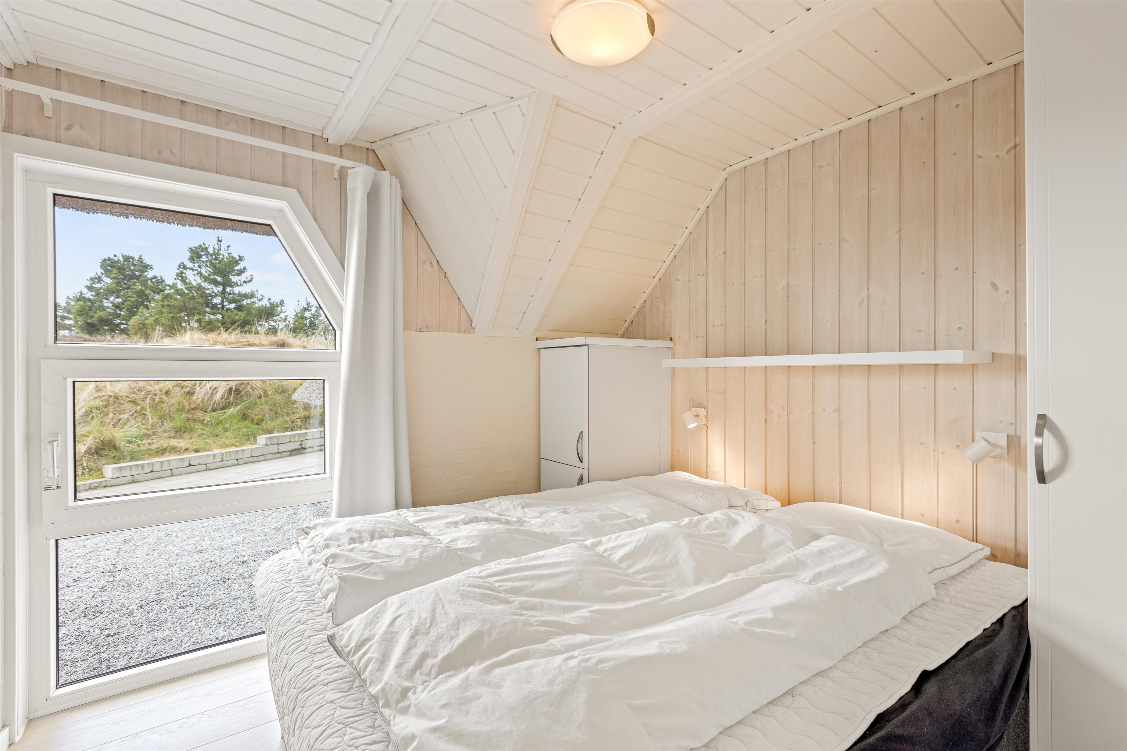 Sommerhusets andet badeværelse ligger i den anden ende af sommerhuset, hvor I også finder de 4 soveværelser. Alle soveværelser er indrettet med komfortable dobbeltsenge, og der er gulvvarme på badeværelserne. Desuden er der både vaskemaskine og tørretumbler i feriehuset.