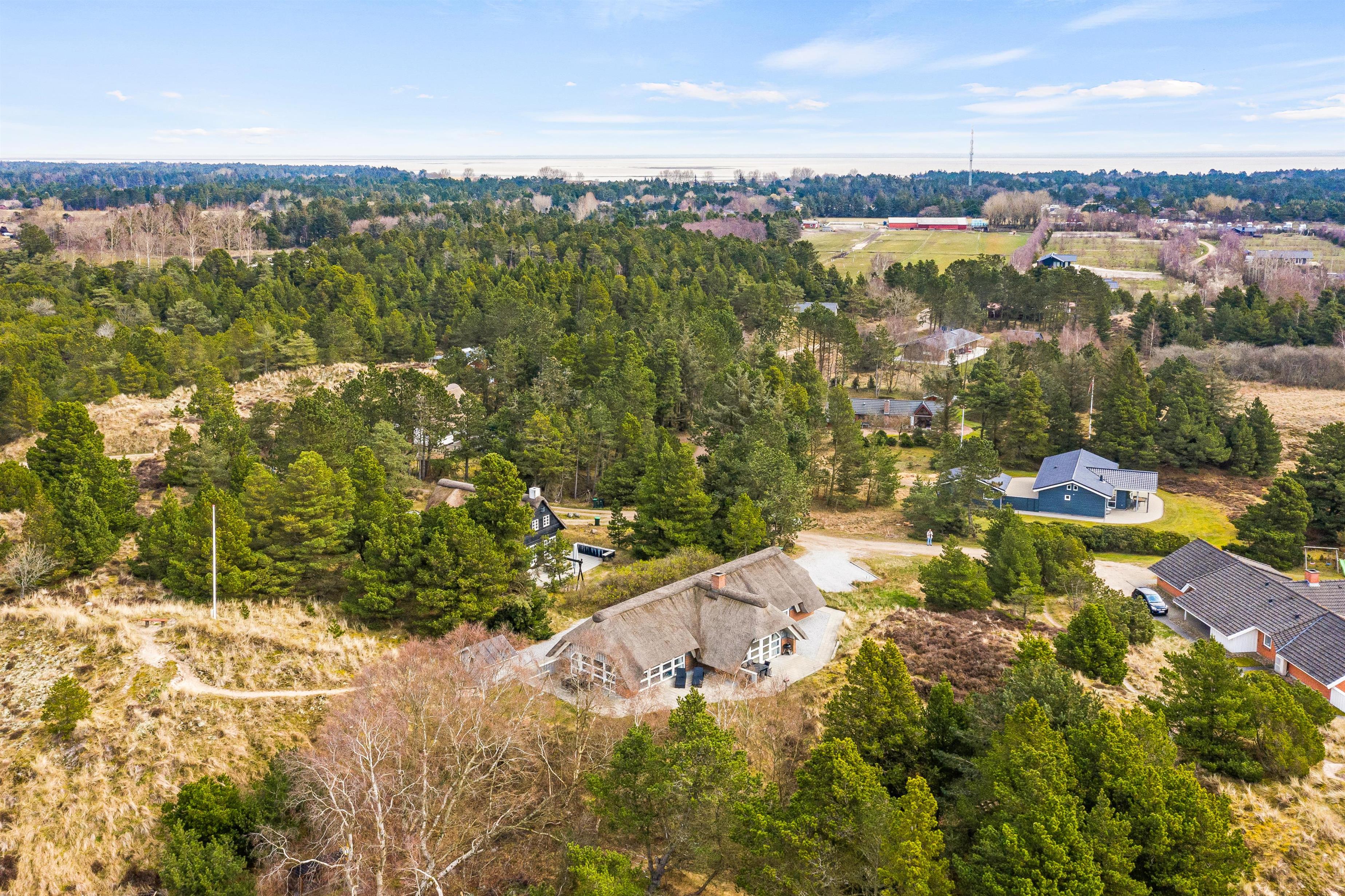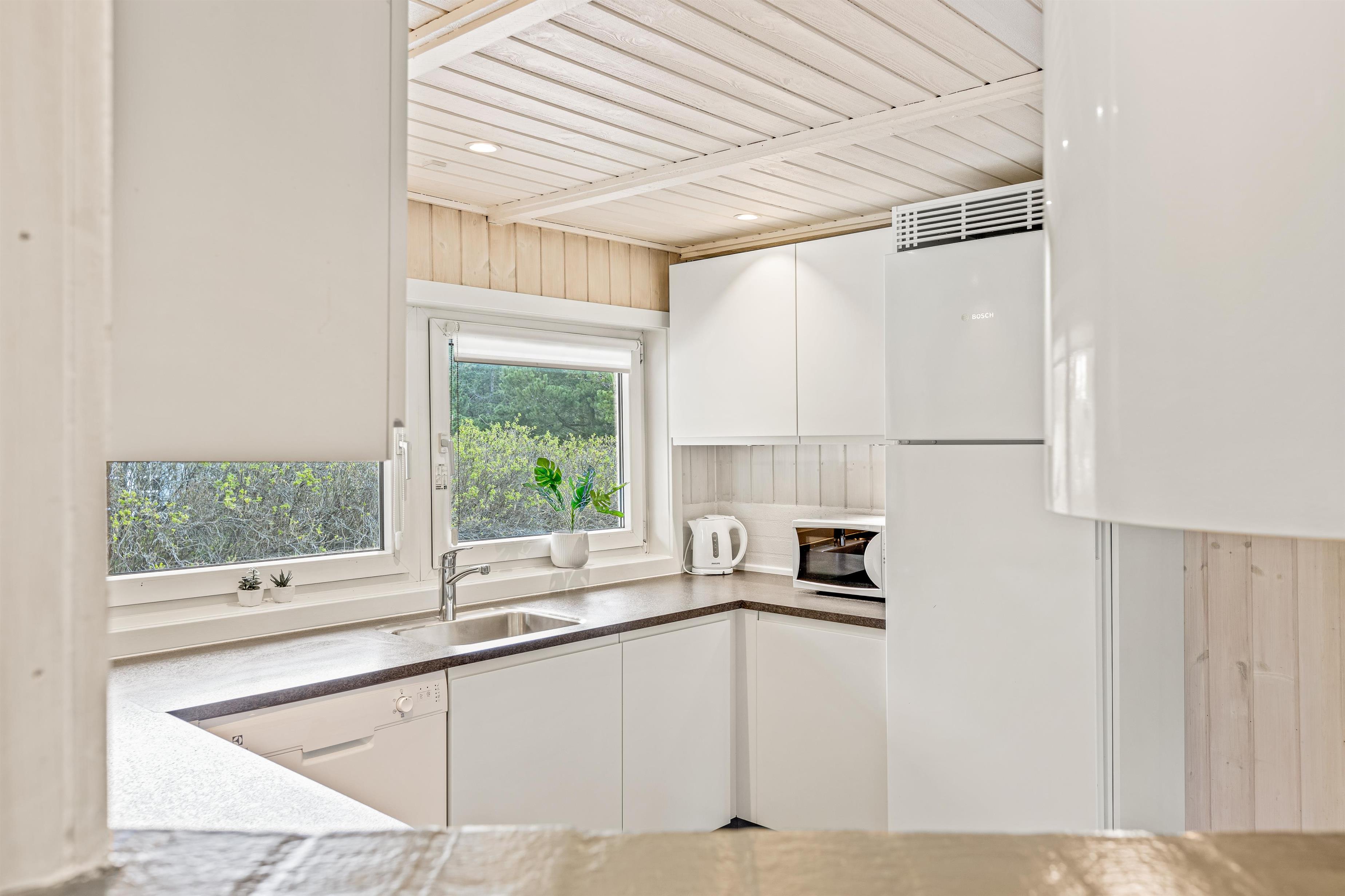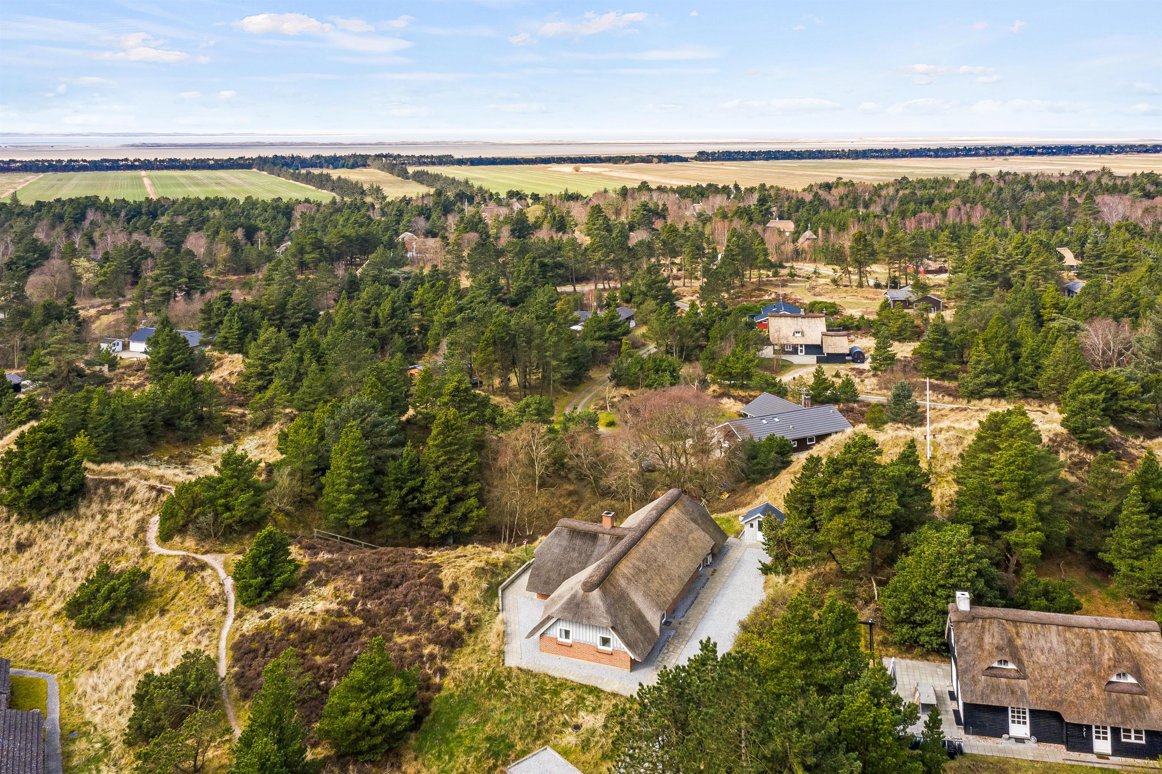 Fra opholdsrummet har I direkte udgang til den sydvendte terrasse, der indbyder til mange hyggelige timer på en solskinsdag. Mens I nyder ferien fra terrassen, kan børnene lege på naturgrunden, hvor der både er sandkasse og gyngestativ.