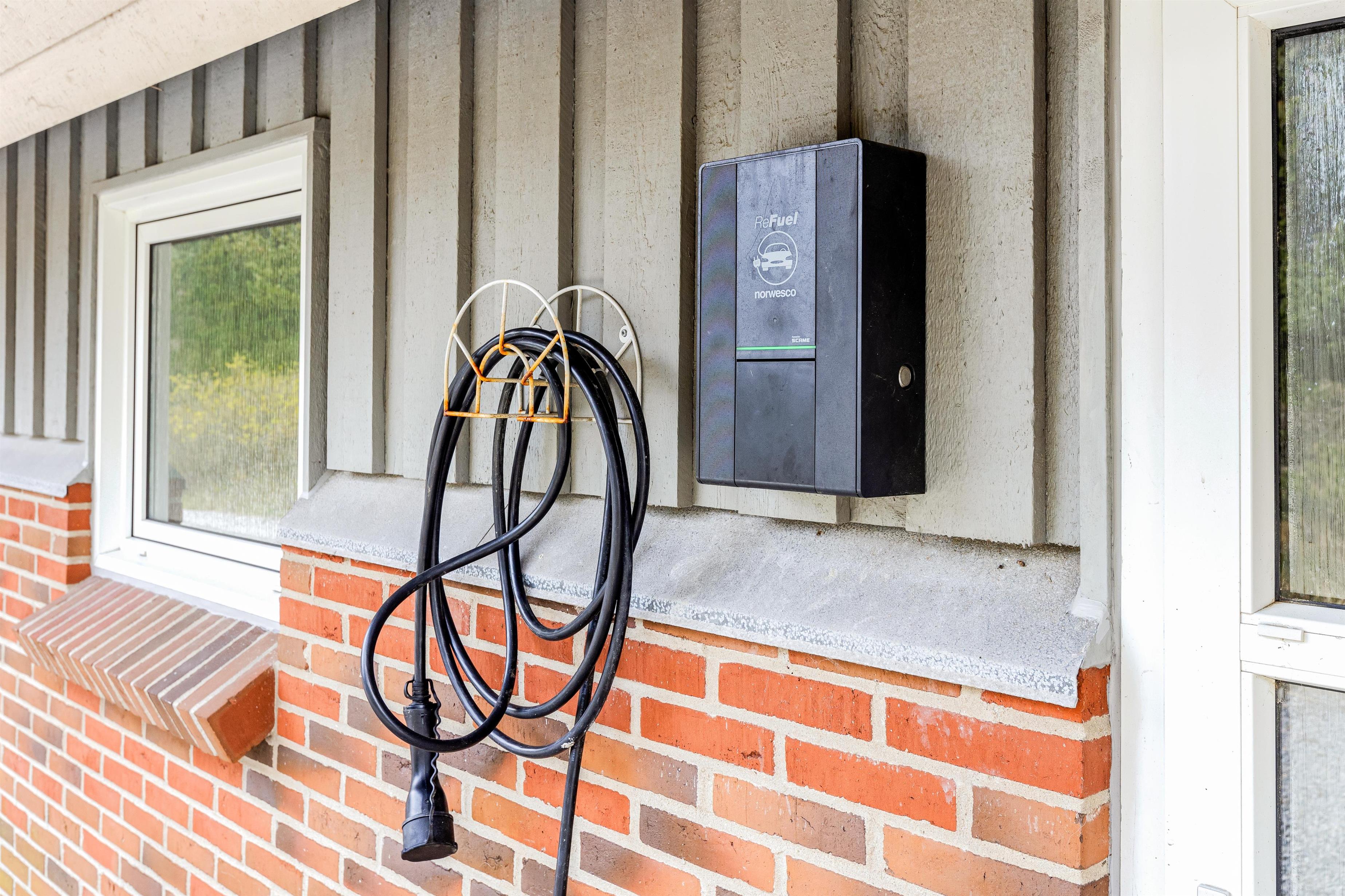 Derudover findes der ved huset en ladestation til elbiler med tilhørende Type 2-ladekabel.