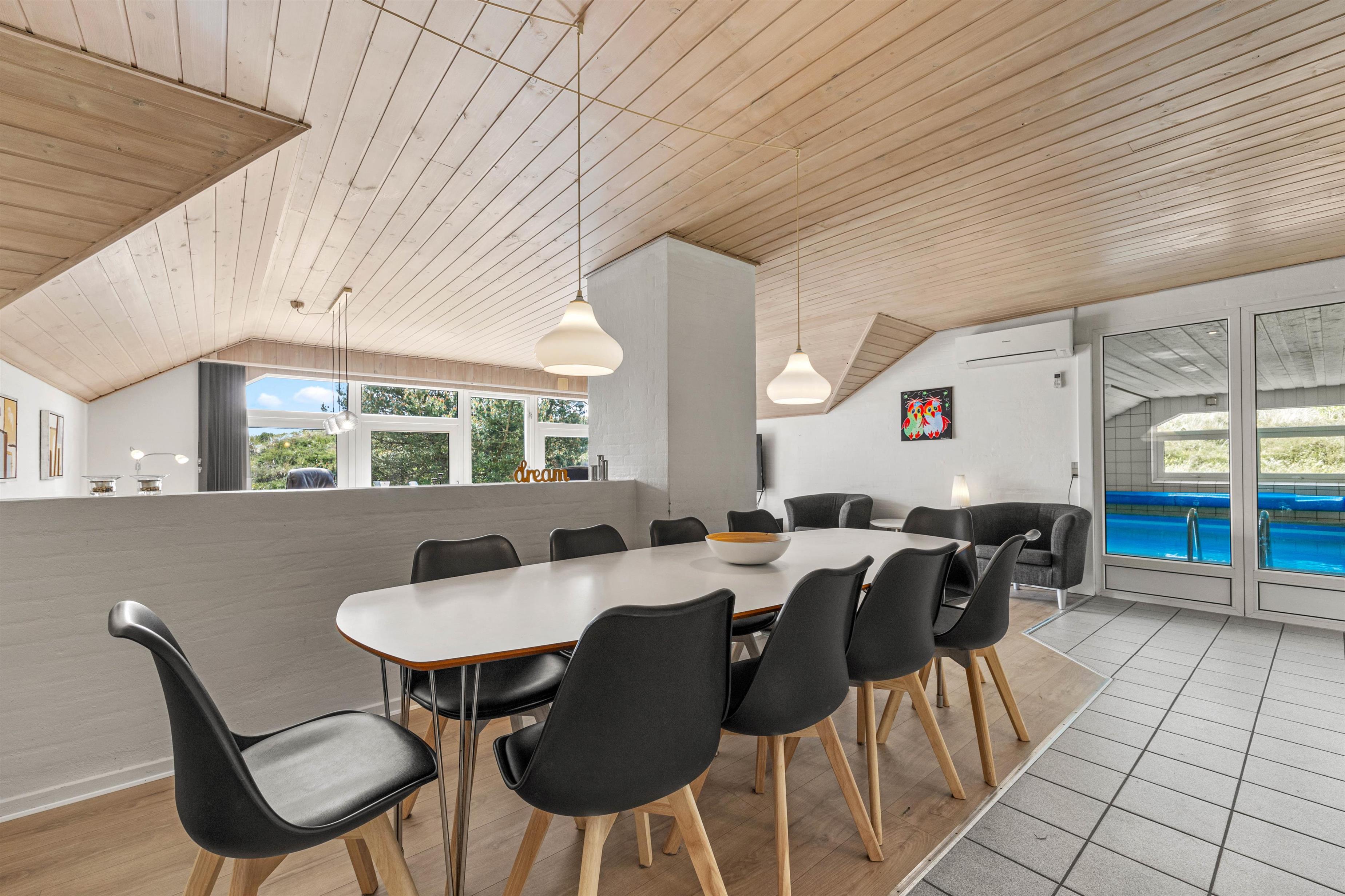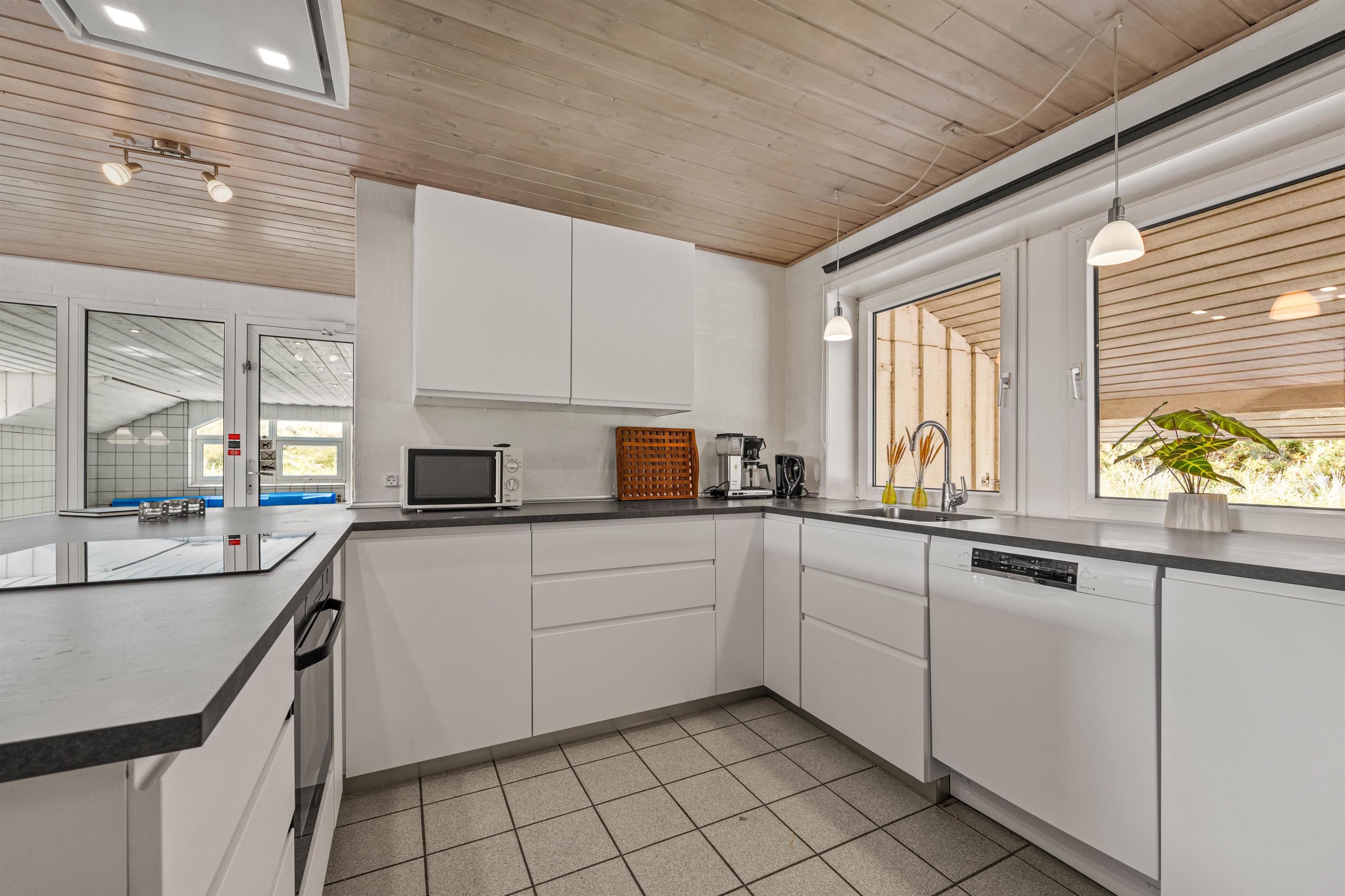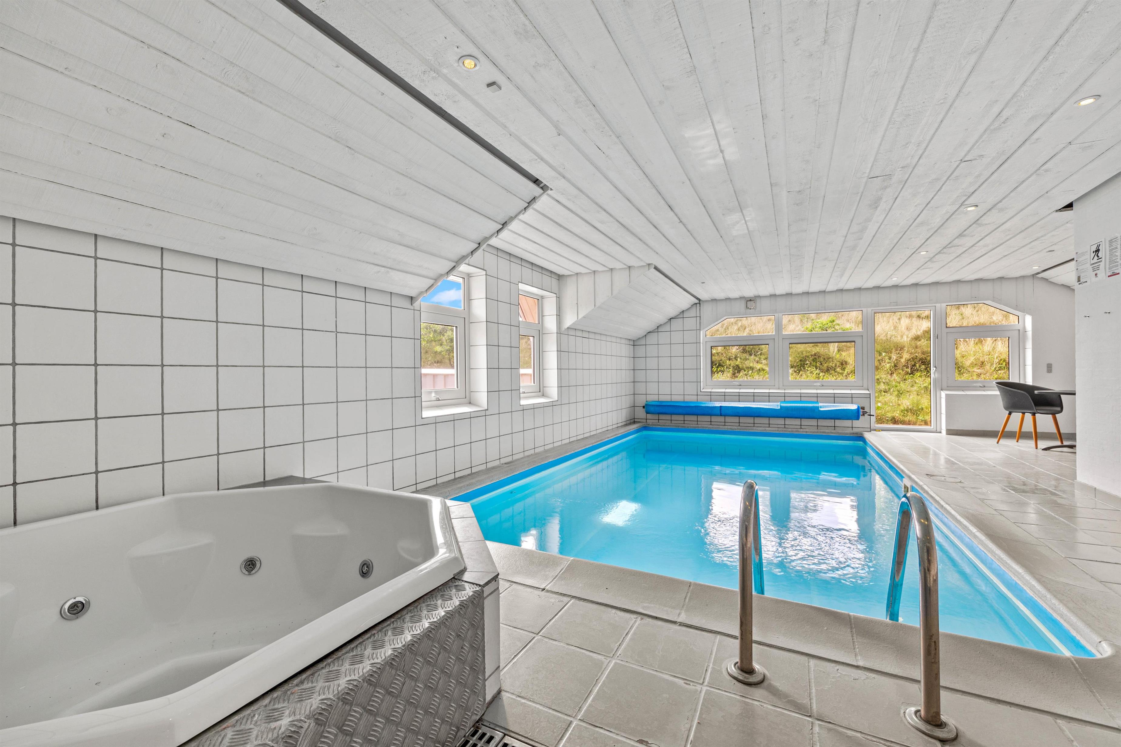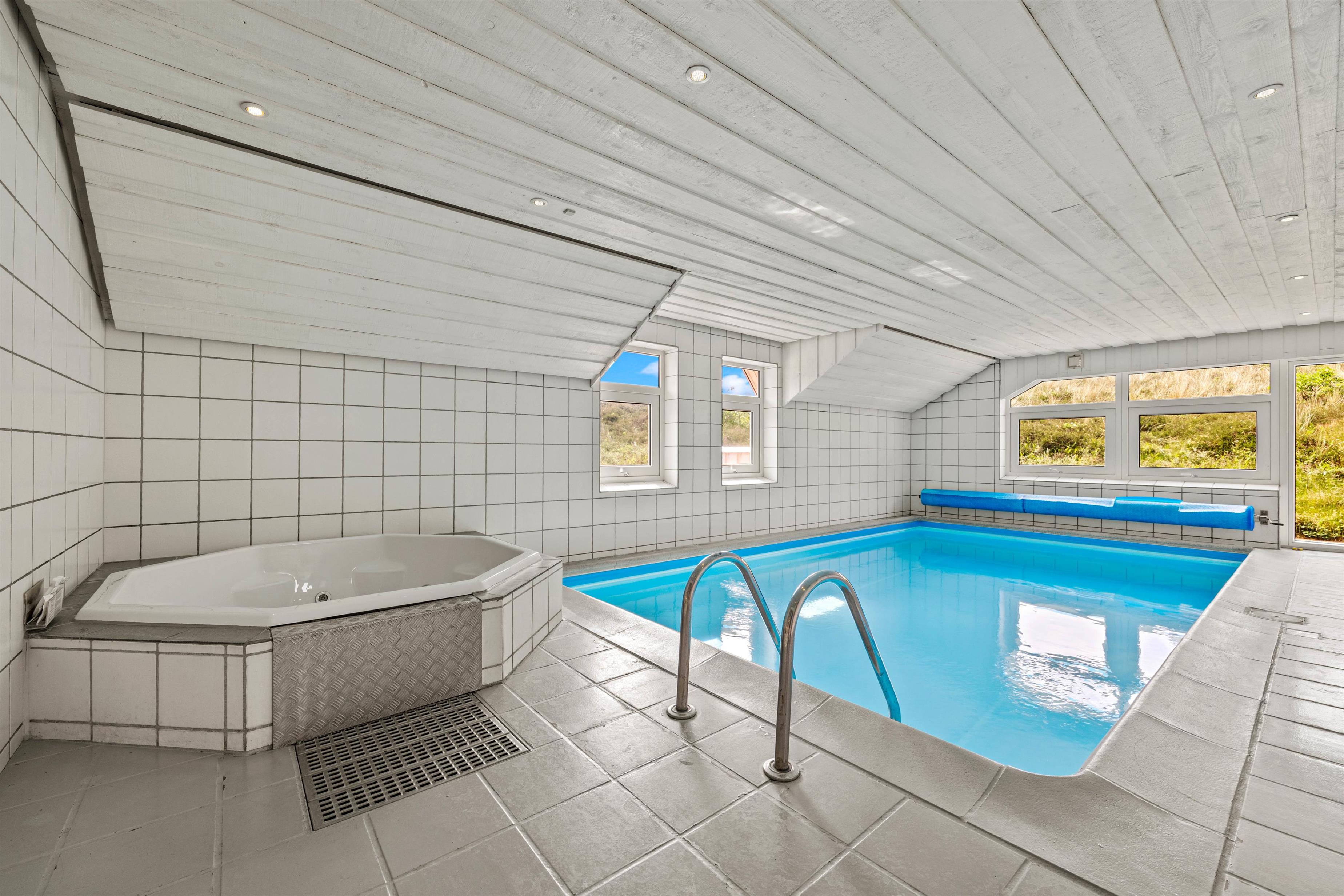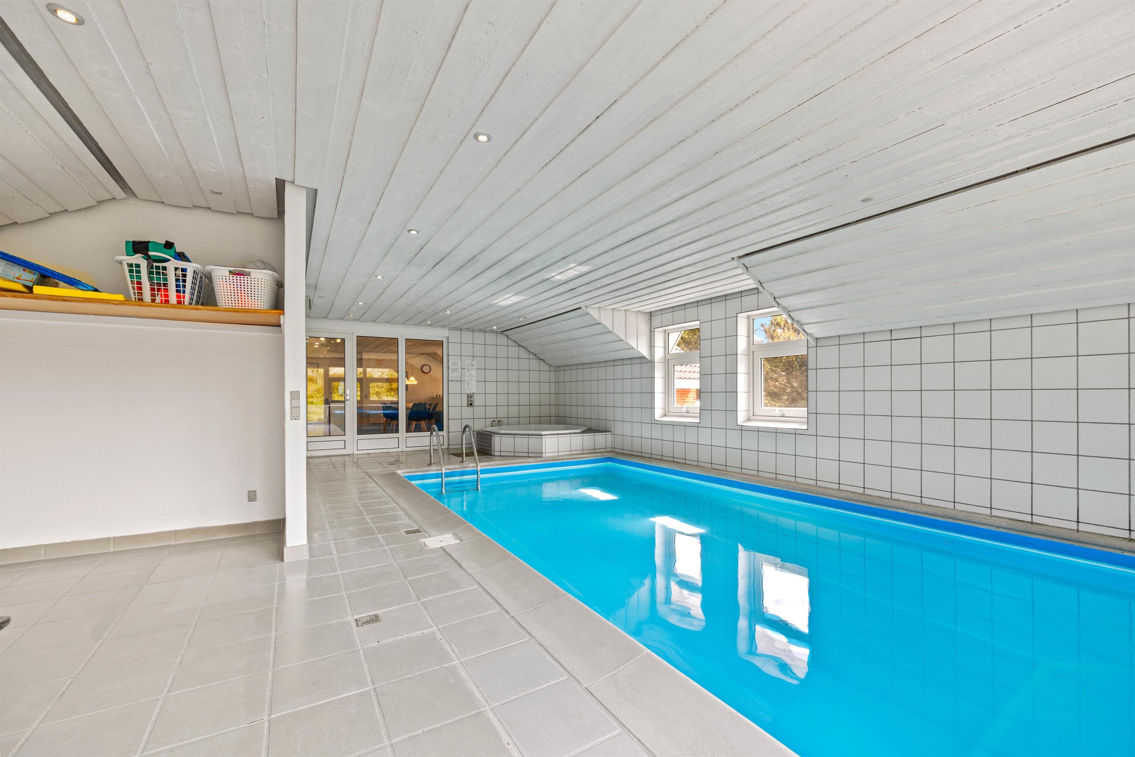Det 212 m² store og smukke feriehus byder på masser af mulighed for afslapning i wellness-området. I kan tage en dukkert i poolen med børnene og derefter slappe af i saunaen eller spaen. Bare luk øjnene og lad tankerne flyde, mens du slapper af. Spaen og saunaen er også en sand fornøjelse efter en lang gåtur på stranden, især i de kølige måneder. En privat swimmingpool i feriehuset vil være noget helt særligt for børnene, og selv på en regnvejrsdag kan de more sig her og slå sig løs. Vaskemaskine og tørretumbler sørger for, at I kan opfriske håndklæderne hver dag.
