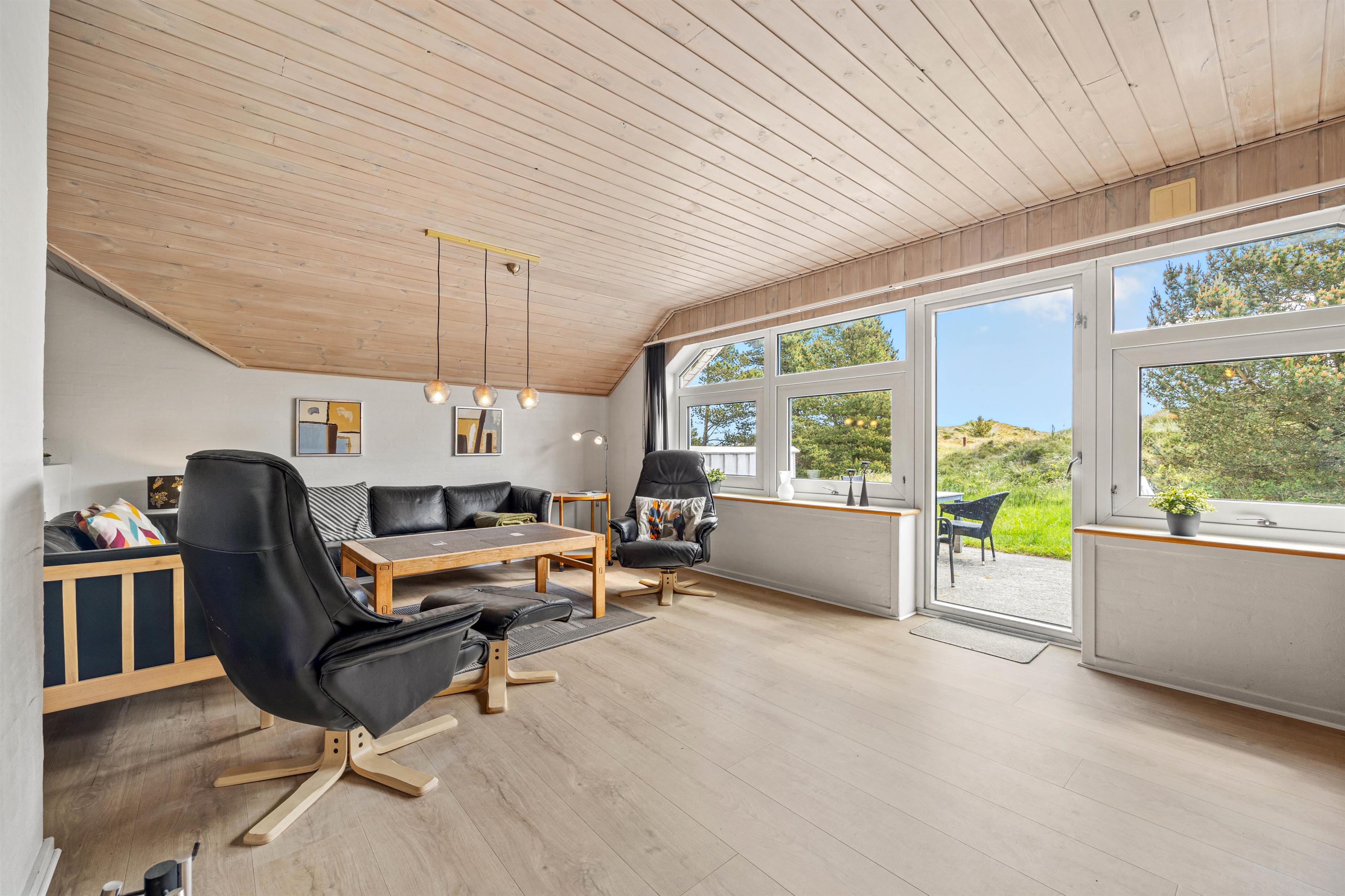 Der er skønne terrasseområder rundt om næsten hele feriehuset. Her kan man rykke rundt med solen, og nyde solskinstimerne i fulde drag, eller man kan trække sig tilbage i skyggen. Der er også et lille overdækket område uden for hoveddøren, som er perfekt til dagens første kop kaffe. I dette feriehus er der tænkt på de små gæster. De kan gå på opdagelse på den 2700m² store naturgrund, og der er gynge, rutsjebane og sandkasse til dem. Dette feriehus ligger midt i naturen, så her kan I nyde ferien i fred og ro. Der er mulighed for at oplade elbilen ved feriehuset.