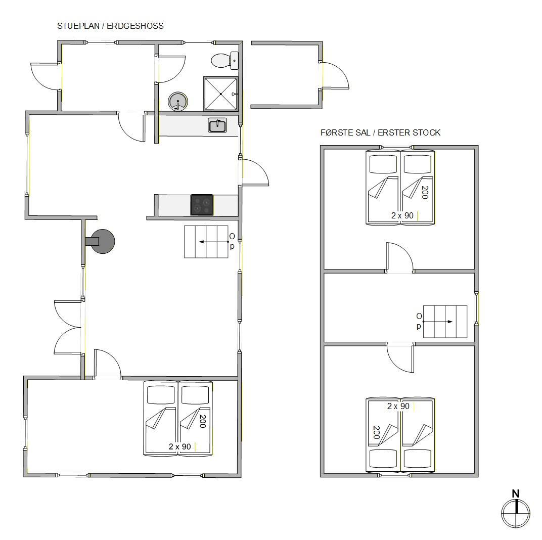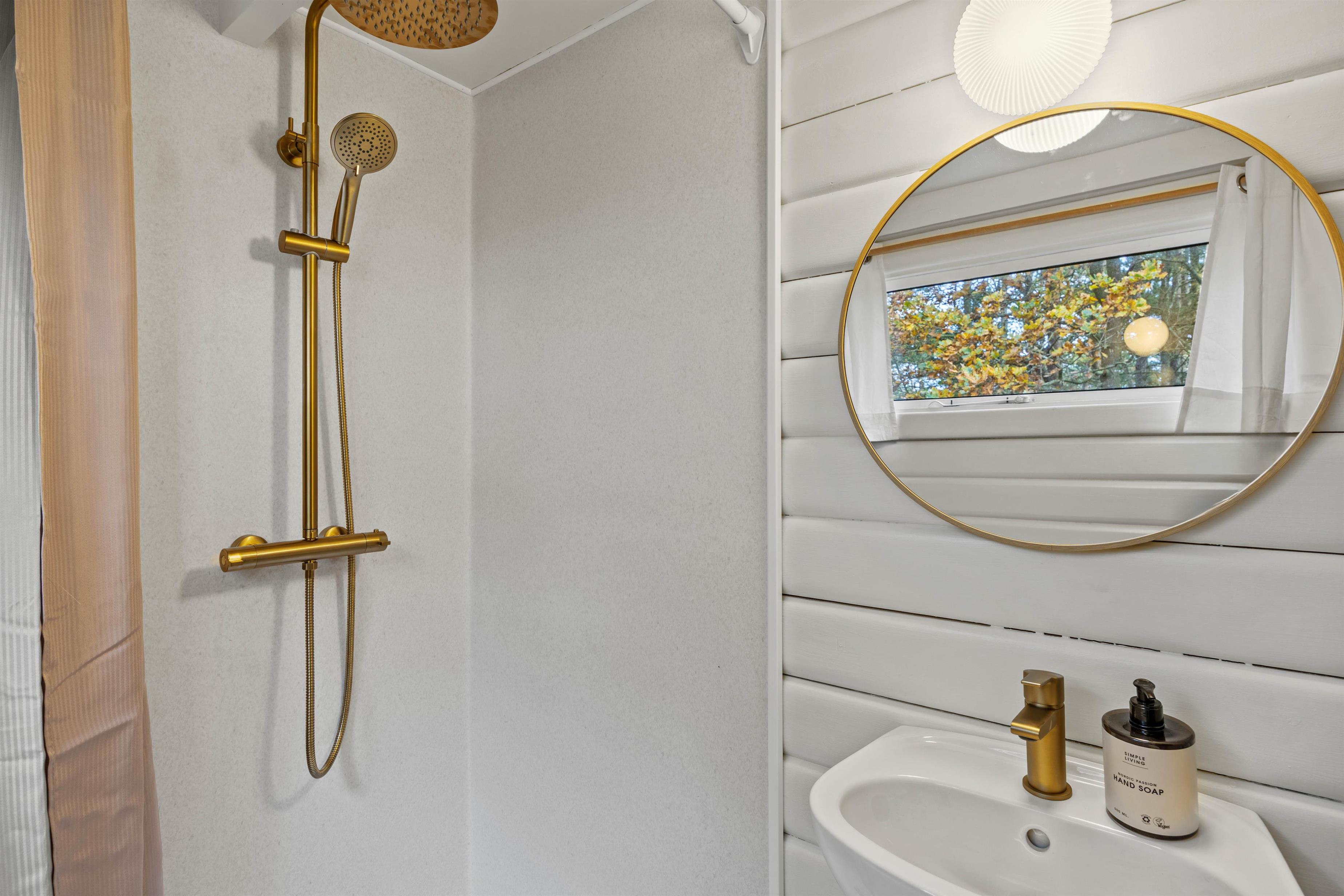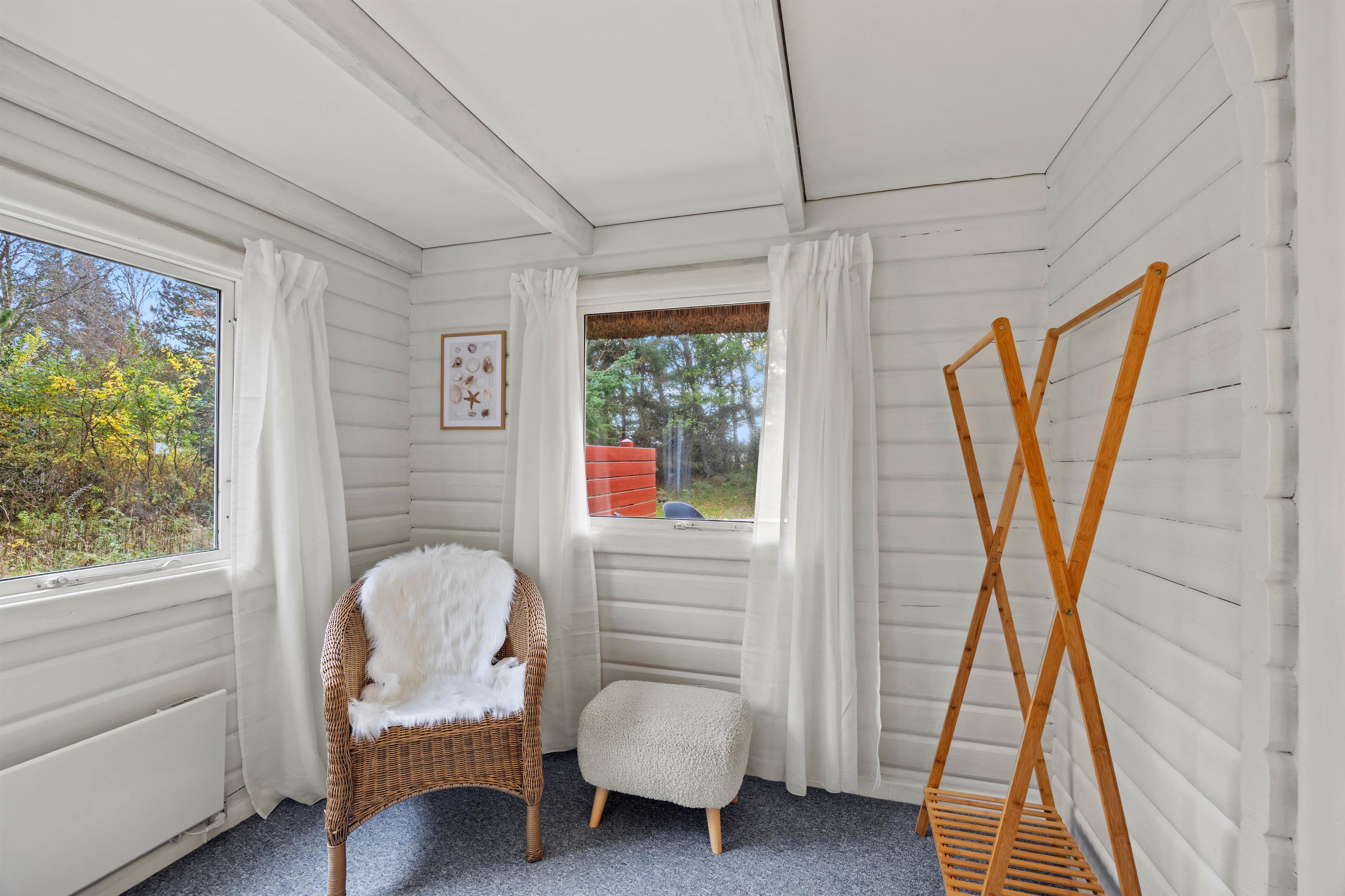 Indenfor finder I et velindrettet sommerhus, der kan rumme op til 6 personer, fordelt på 3 soverum med komfortable dobbeltsenge. Det fuldt udstyrede køkken har blandt andet en moderne opvaskemaskine, så I nemt kan håndtere dagens praktiske gøremål. På de køligere aftener kan I nyde atmosfæren skabt af brændeovnens knitren og lune jer ved hjælp af en effektiv luft til luft varmepumpe.