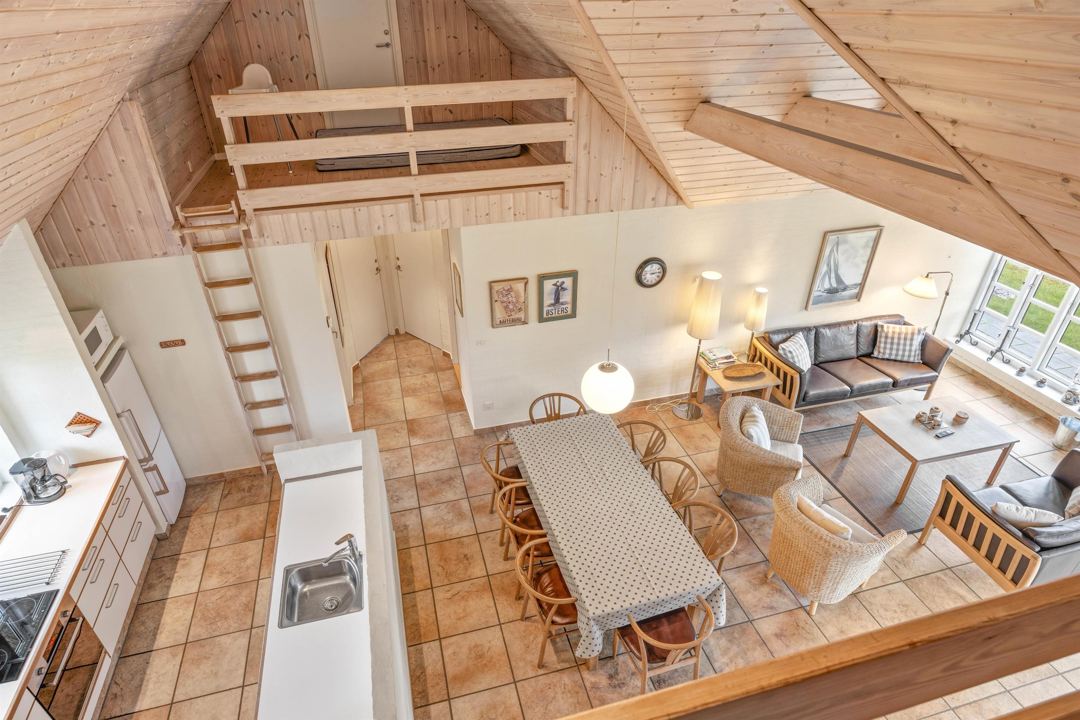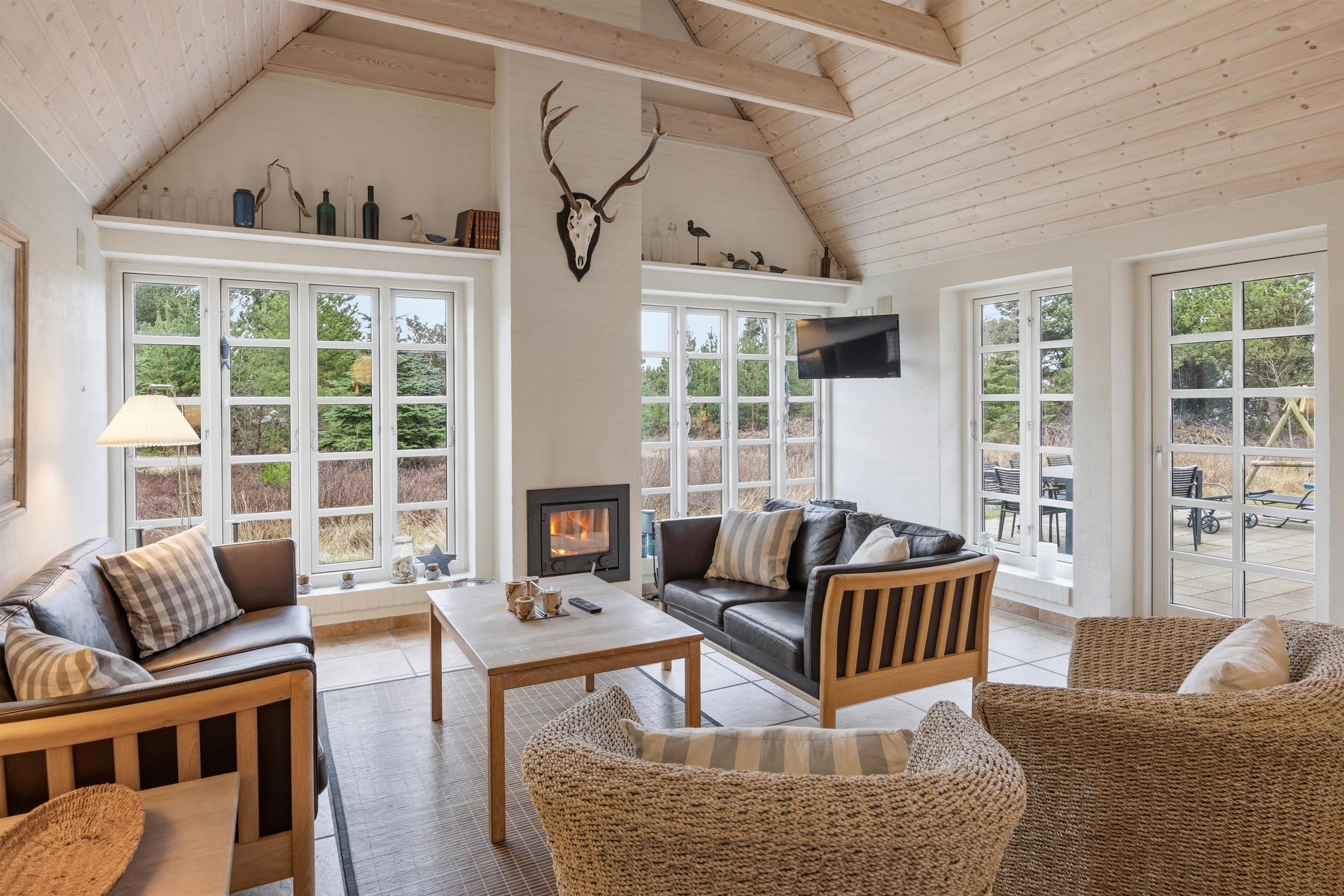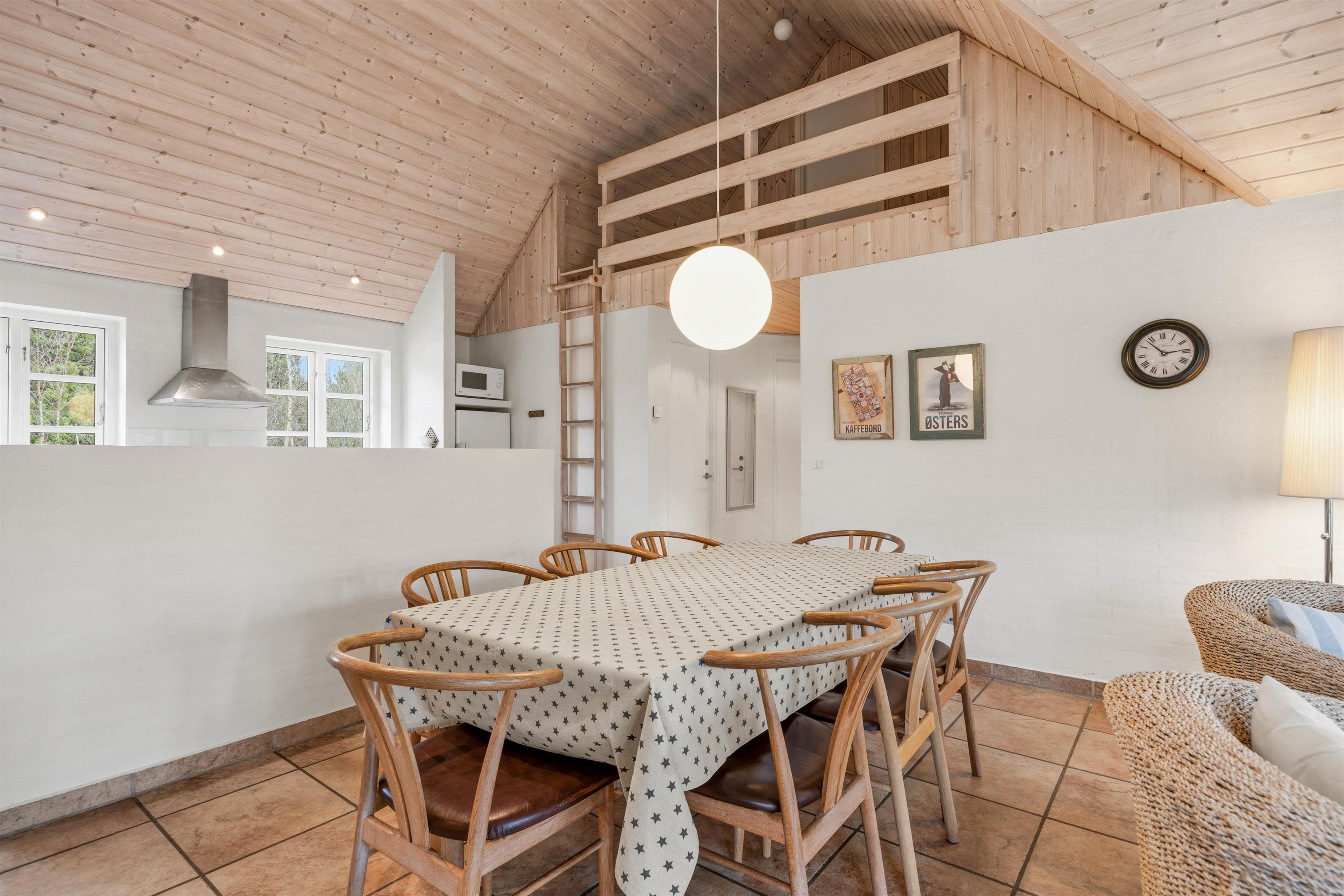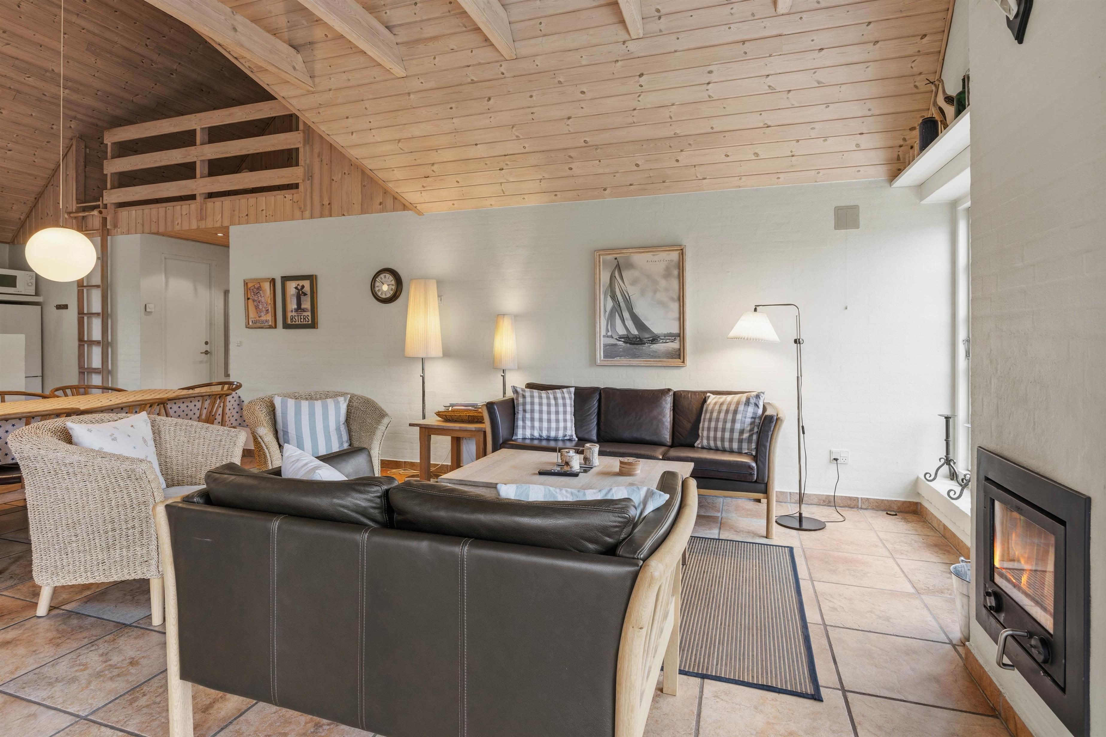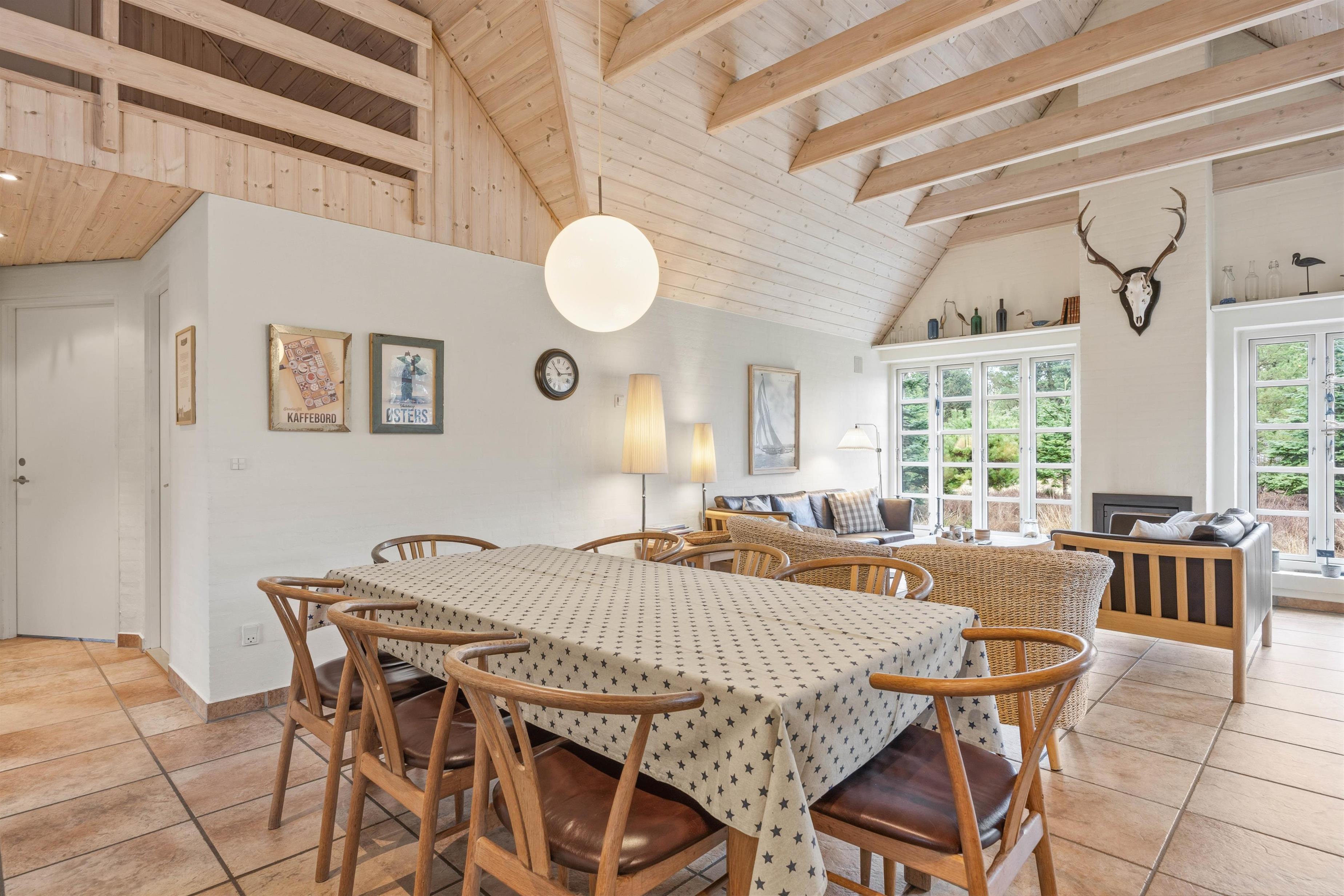 På 143 m² boligareal finder du et åbent køkken- og opholdsområde med brændeovn – perfekt til hyggelige aftener og fælles madlavning. Fire soveværelser med gode senge samt ekstra sovepladser på hemsen giver plads til op til 10 personer. Flisegulve i både opholdsrum og soveværelser giver et pænt og praktisk udtryk. Hunde er ikke tilladt, hvilket gør huset særligt velegnet for allergikere.