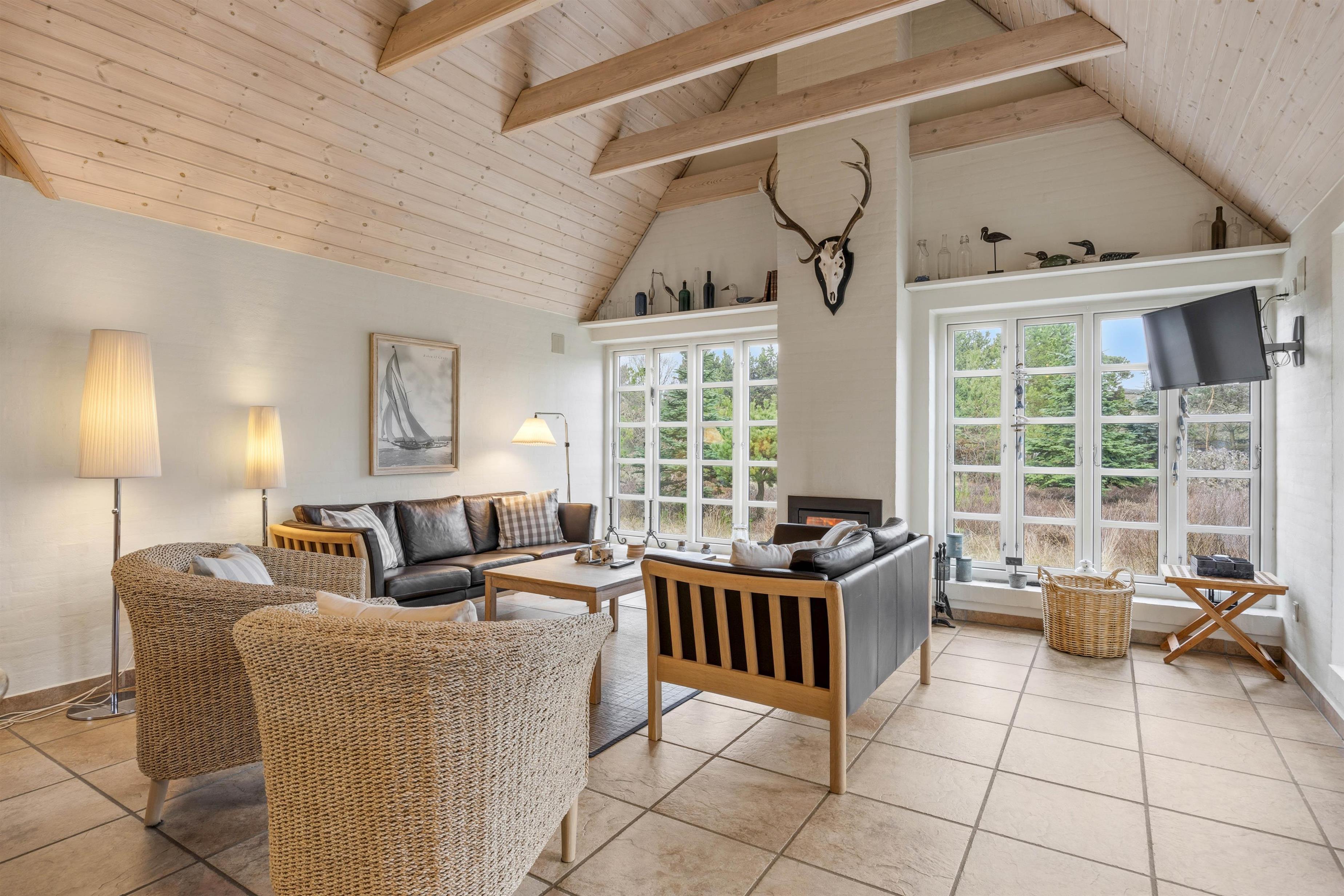 Din feriedrøm: Stråtækt sommerhus i Langdal på Rømø til op til 10 persone. Velkommen til dit fristed på Rømø – et smukt stråtækt sommerhus, omgivet af træer, græsplæne og øens vidtstrakte landskab. Store vinduespartier åbner op mod naturen, mens det åbne loft til kip skaber en lys og rummelig atmosfære.