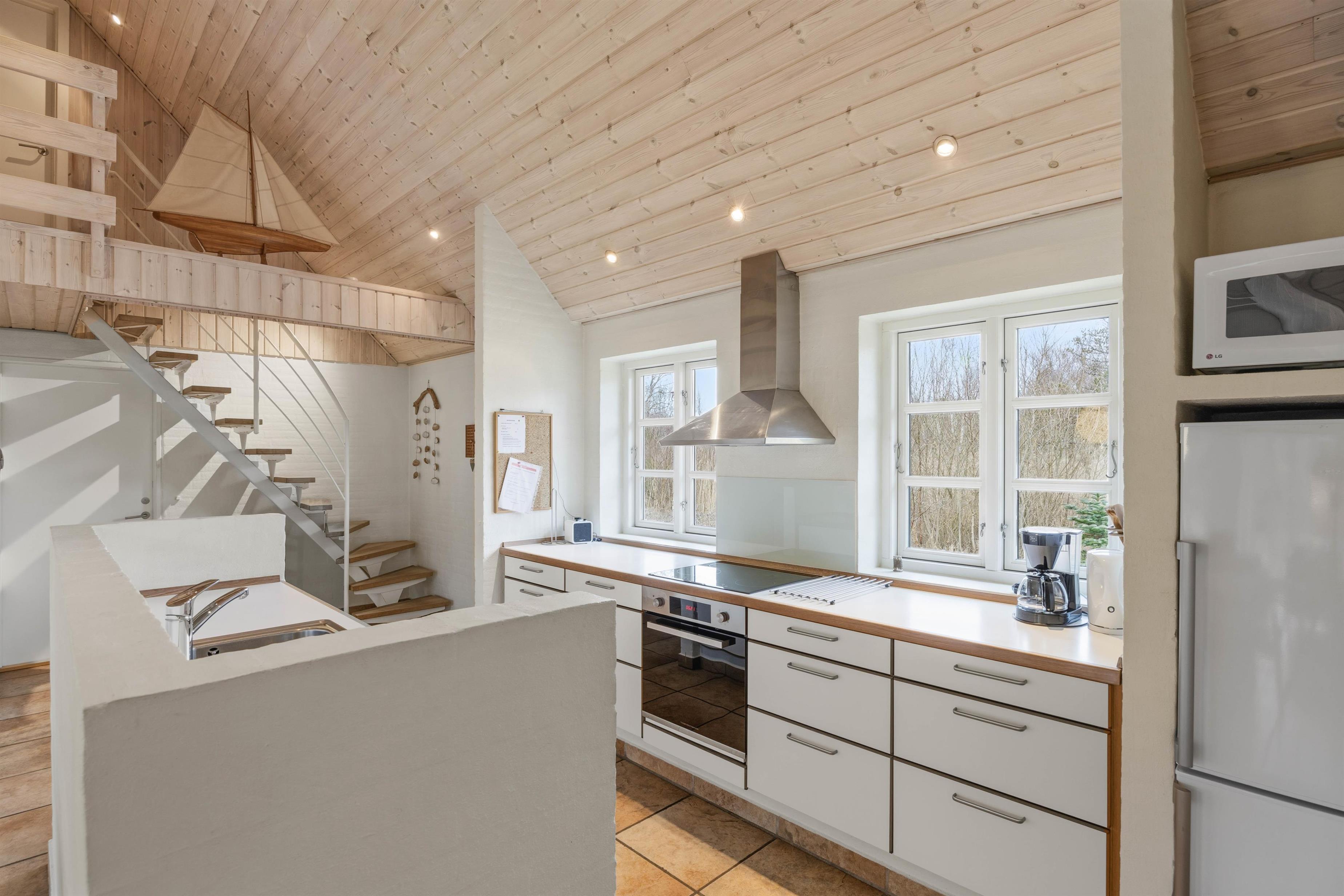 Det veludstyrede køkken samt vaskemaskine, tørretumbler og internet gør opholdet nemt og bekvemt – også ved længere ophold.