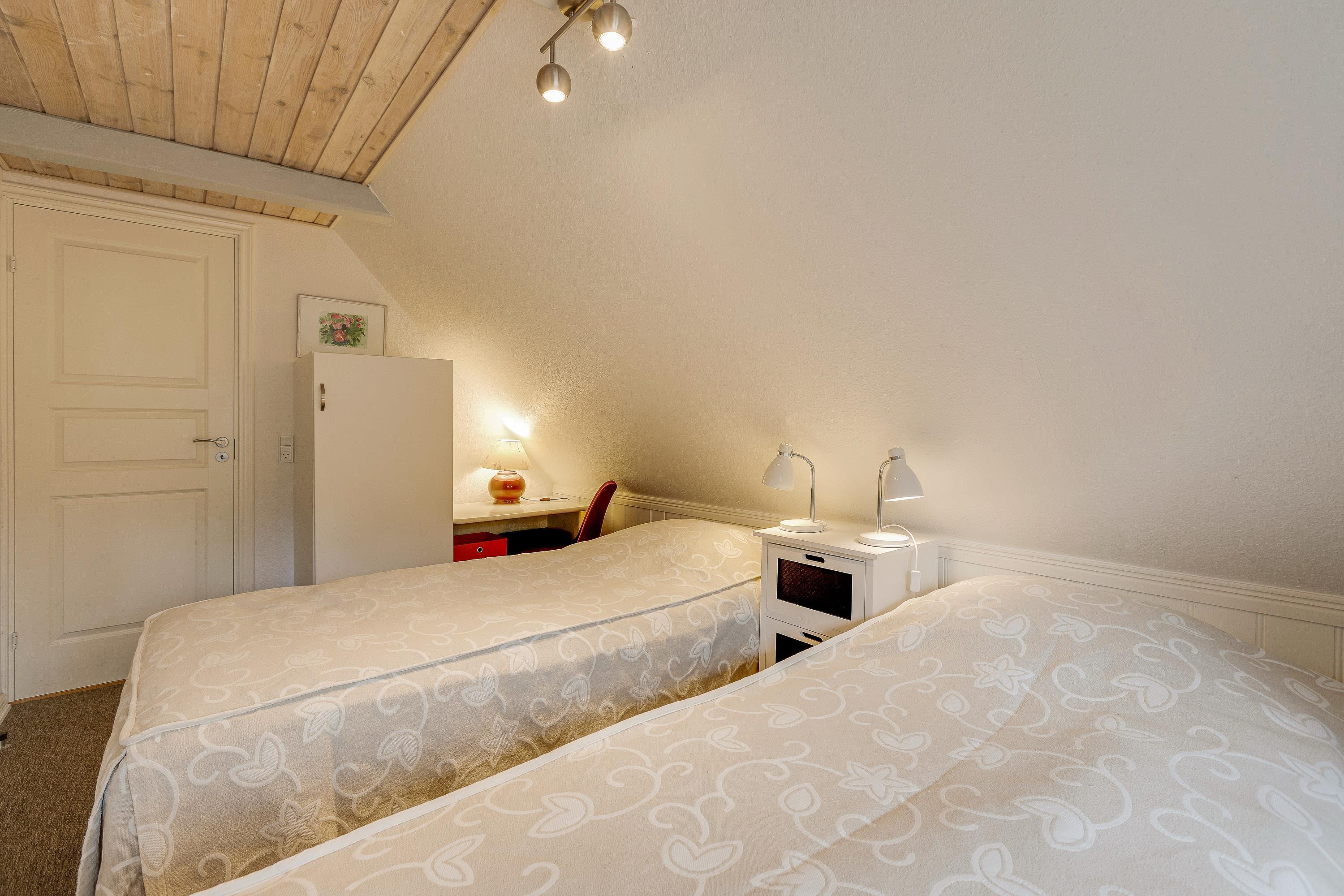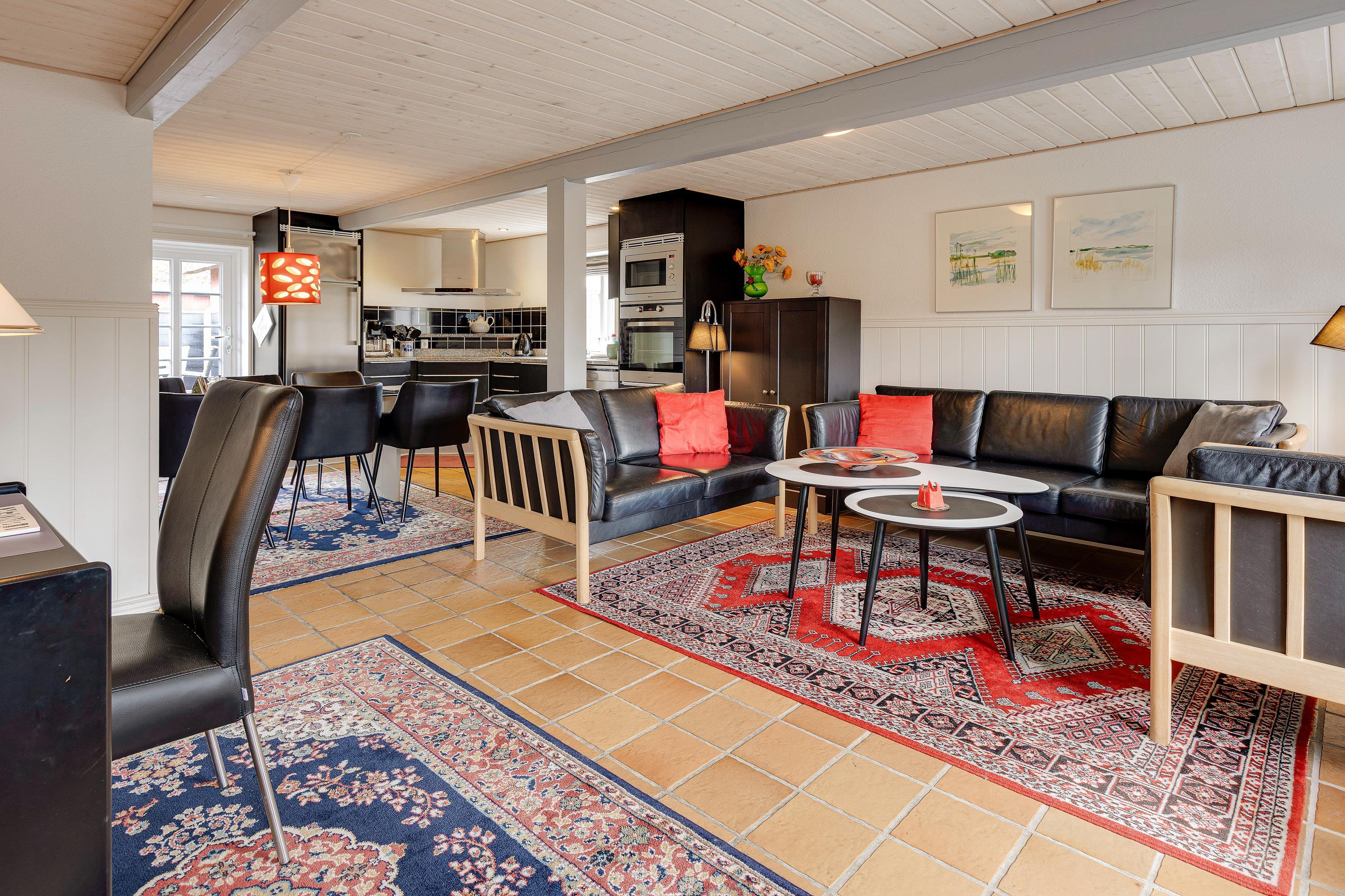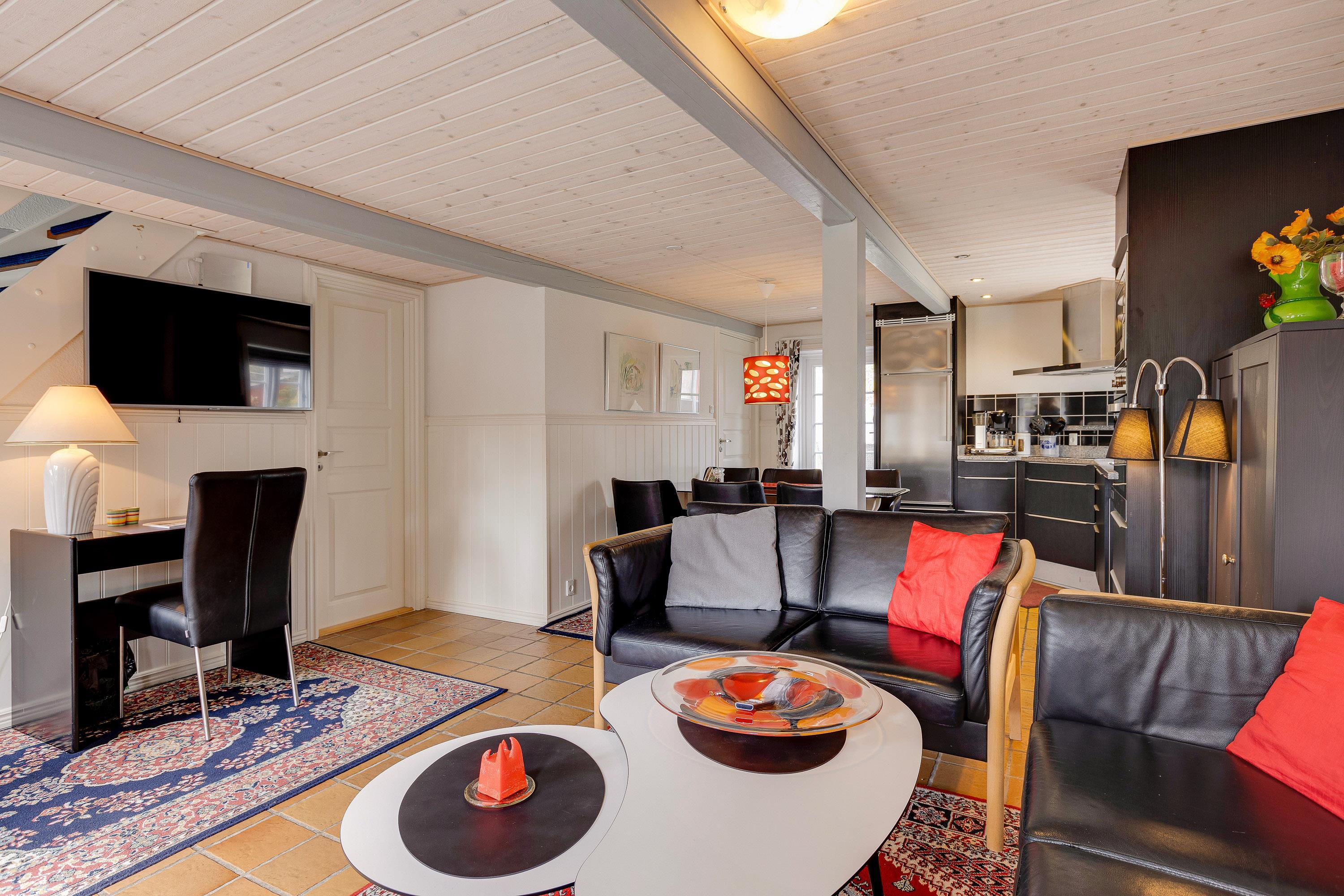 I den praktisk indrettede ferielejlighed kan I nyde en afslappende ferie med op til 6 personer og jeres hund. Der er 3 soveværelser, som er indrettet med i alt 2 dobbeltsenge og 2 enkeltsenge. Der findes et badeværelse med gulvvarme og et ekstra gæstetoilet, som er særligt praktisk, så der ikke opstår kø fra morgenstunden.