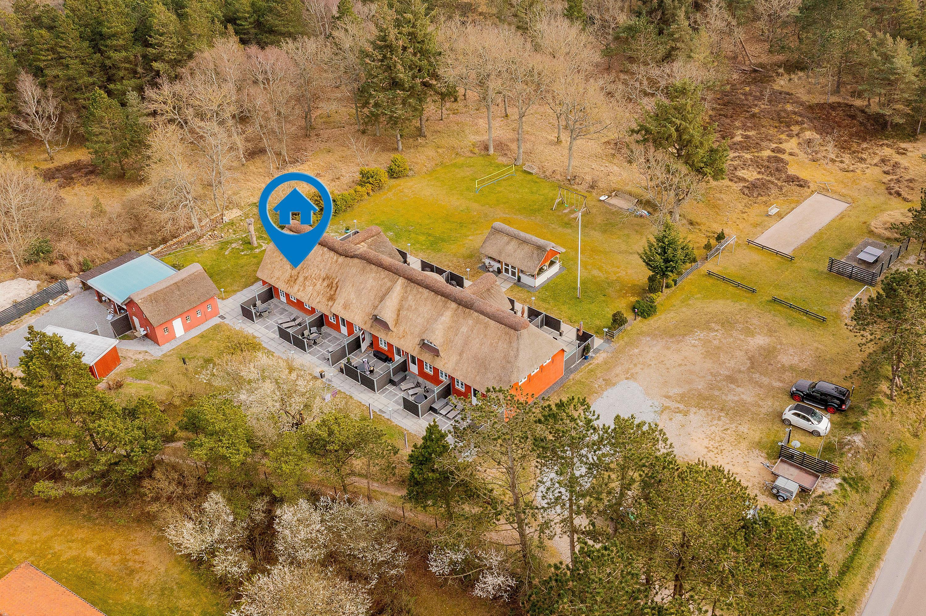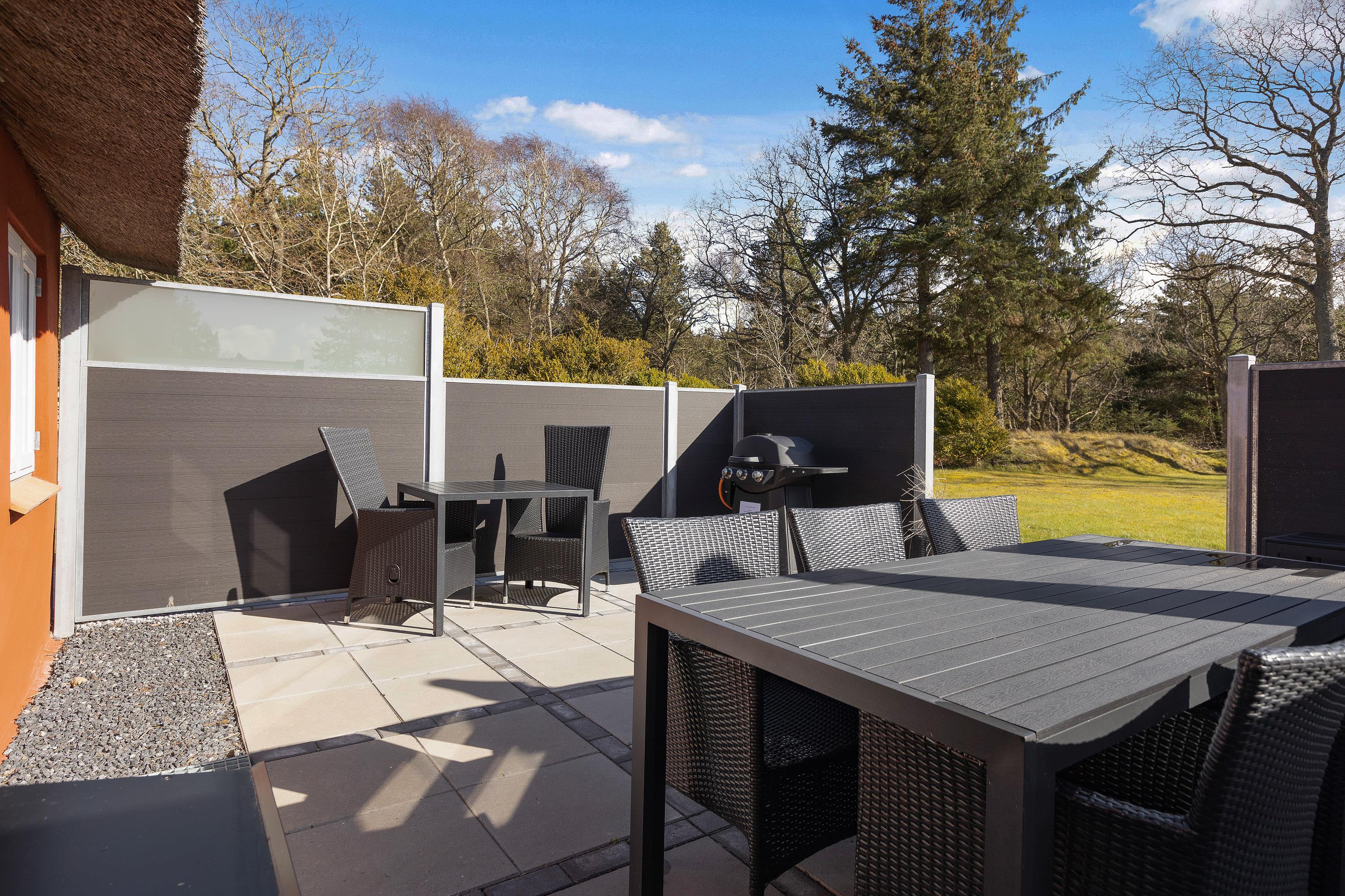 Når solen skinner på himlen, kan du snuppe din yndlingsbog og finde et hyggeligt sted på den delvist afskærmede terrasse. Komfortable havemøbler er her tilgængelige, og på den store grund er der mulighed for både afslapning og aktiviteter.